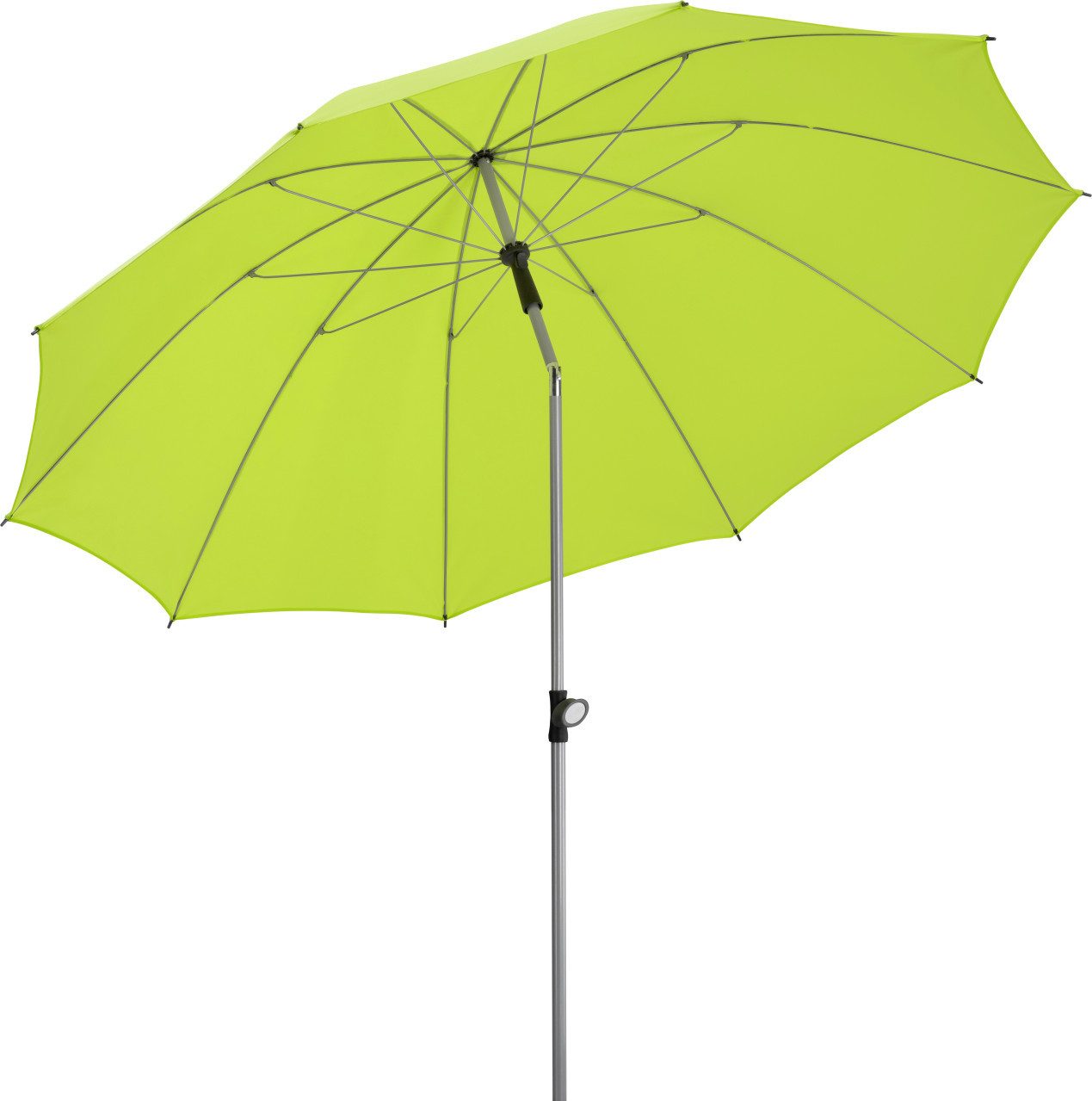 Produktdetails: UV-Schutz 50 + | Aufspannung durch stabilen Seilzug | Schirmhöhe: 231 cm | Material Sonnenschirmbespannung: 100 % Polyester | Schirmmast: Stahl pulverbeschichtet silbergrau | Maße Schirmmast: Ø 22/25 mm | Maße aufgespannter Schirm: Ø 220 cm | Metall-Knicker mit Druckknopf zur Neigung des Schirmdachs | Schirmform: rund | Farbe: apfelgrün | verrottungsfest, wasserabstoßend imprägniert, mit Volant, mit Bandeinfassung, Drehfeststeller zur Höhenverstellung des Schirms | Gewicht: 3,2 kg | Empfohlenes Mindestgewicht Schirmständer: 30 kg | Lieferumfang: Schirm (Ständer separat erhältlich) |