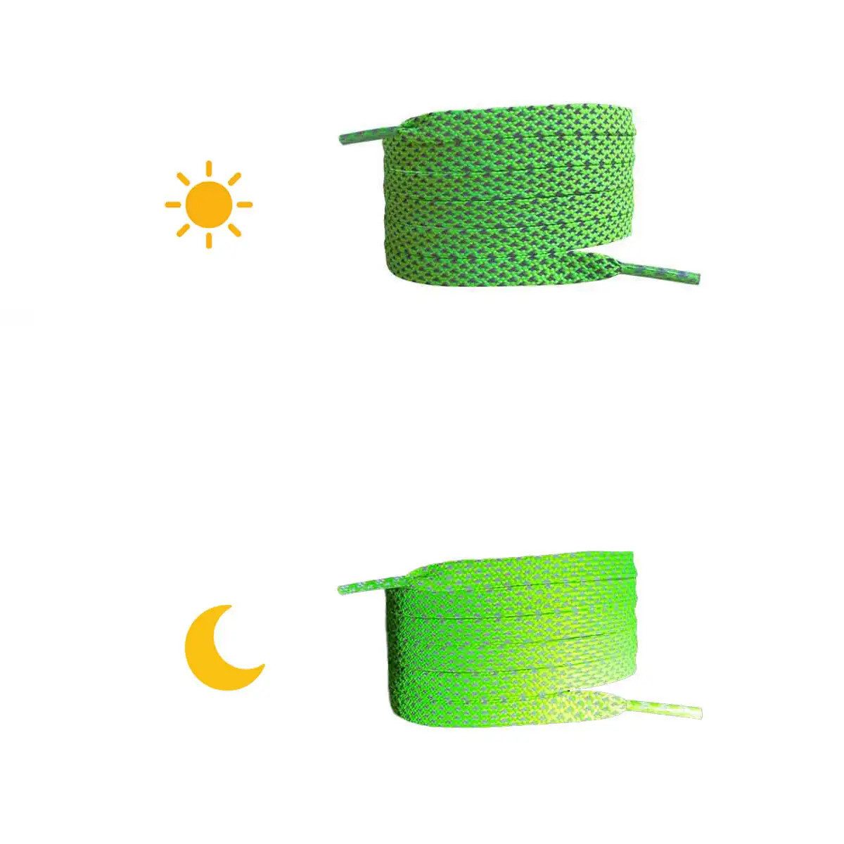 Diese flachen reflektierenden Schnürsenkel verbessern deine Sichtbarkeit bei Dunkelheit – ideal für Jogging, Spaziergänge, Trekking oder Outdoor-Aktivitäten in der Dämmerung oder Nacht. Die Oberfläche ist mit stark reflektierenden Glasperlen beschichtet, die Licht direkt zur Quelle zurückwerfen – z. B. zu Fahrzeugscheinwerfern. So wirst du früher gesehen und erhöhst deine Sicherheit im Straßenverkehr. Mit 10 mm Breite sind die Schnürsenkel besonders stabil und fallen optisch auf. Erhältlich in verschiedenen Farben – für besseren Schutz und individuellen Style. Geliefert wird 1 Paar (2 Schnürsenkel). Wie sie funktionieren: Die stark reflektierenden Glasperlen, mit denen die Oberfläche der Schnürsenkel beschichtet ist, reflektieren Licht direkt zurück zur Lichtquelle, wie beispielsweise den Scheinwerfern eines Autos. Dies sorgt für eine deutlich bessere Sichtbarkeit in dunklen Umgebungen.