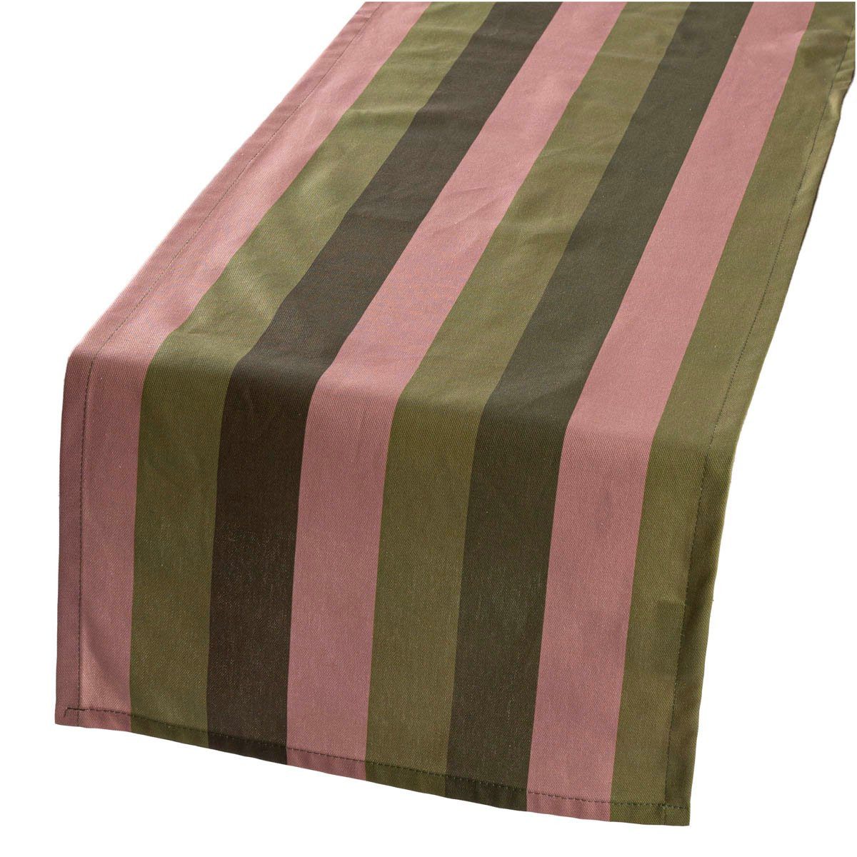 Streifen Digitalprint: Das moderne Streifen-Dessin kommt im Digitaldruck besonders farbintensiv und klar zur Geltung und setzt stylische Akzente auf deinem Tisch. Die besondere Farbkombi von Rosa, Braun und Grün verleiht dem Tischläufer seinen einzigartigen Charme