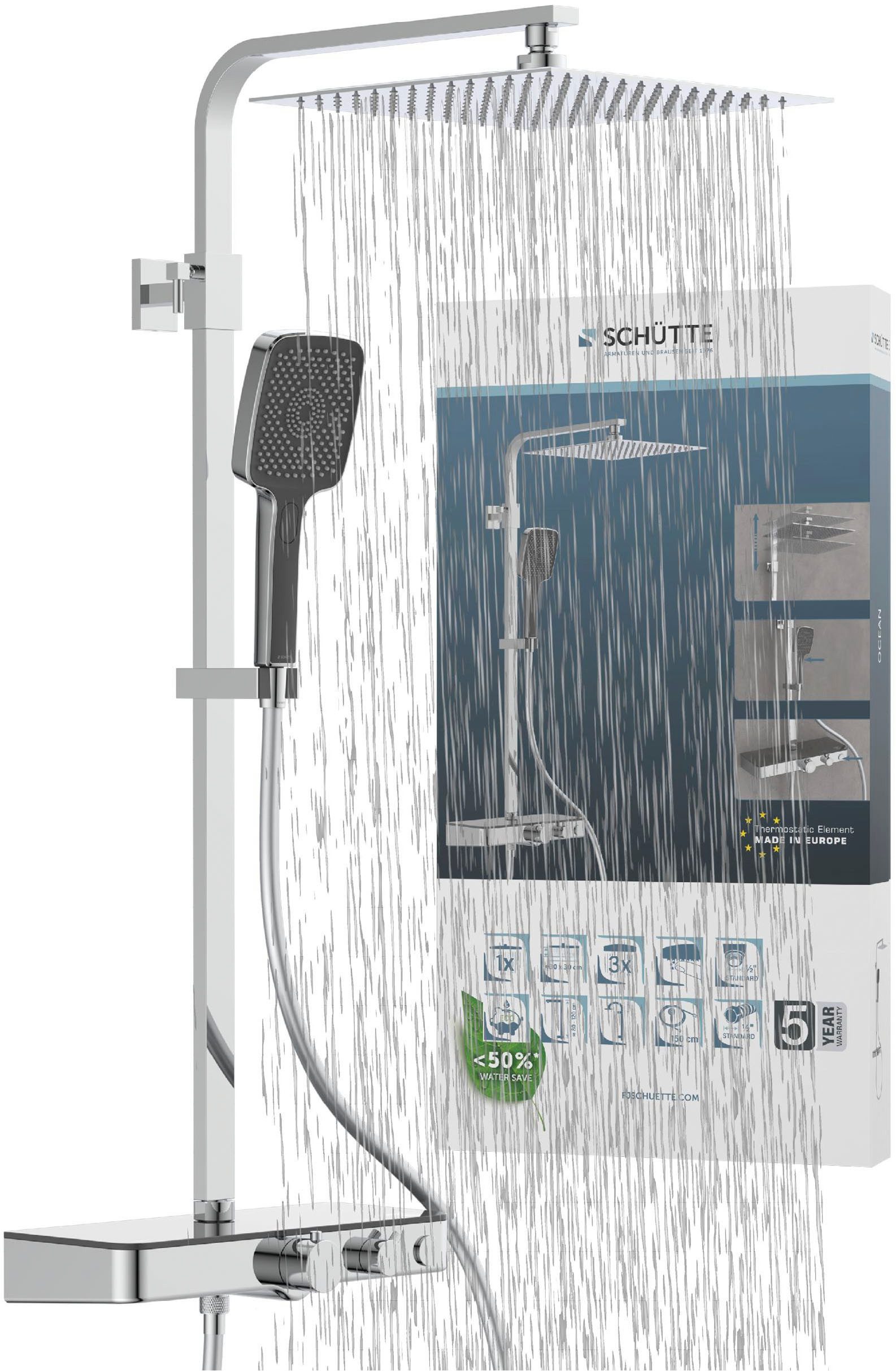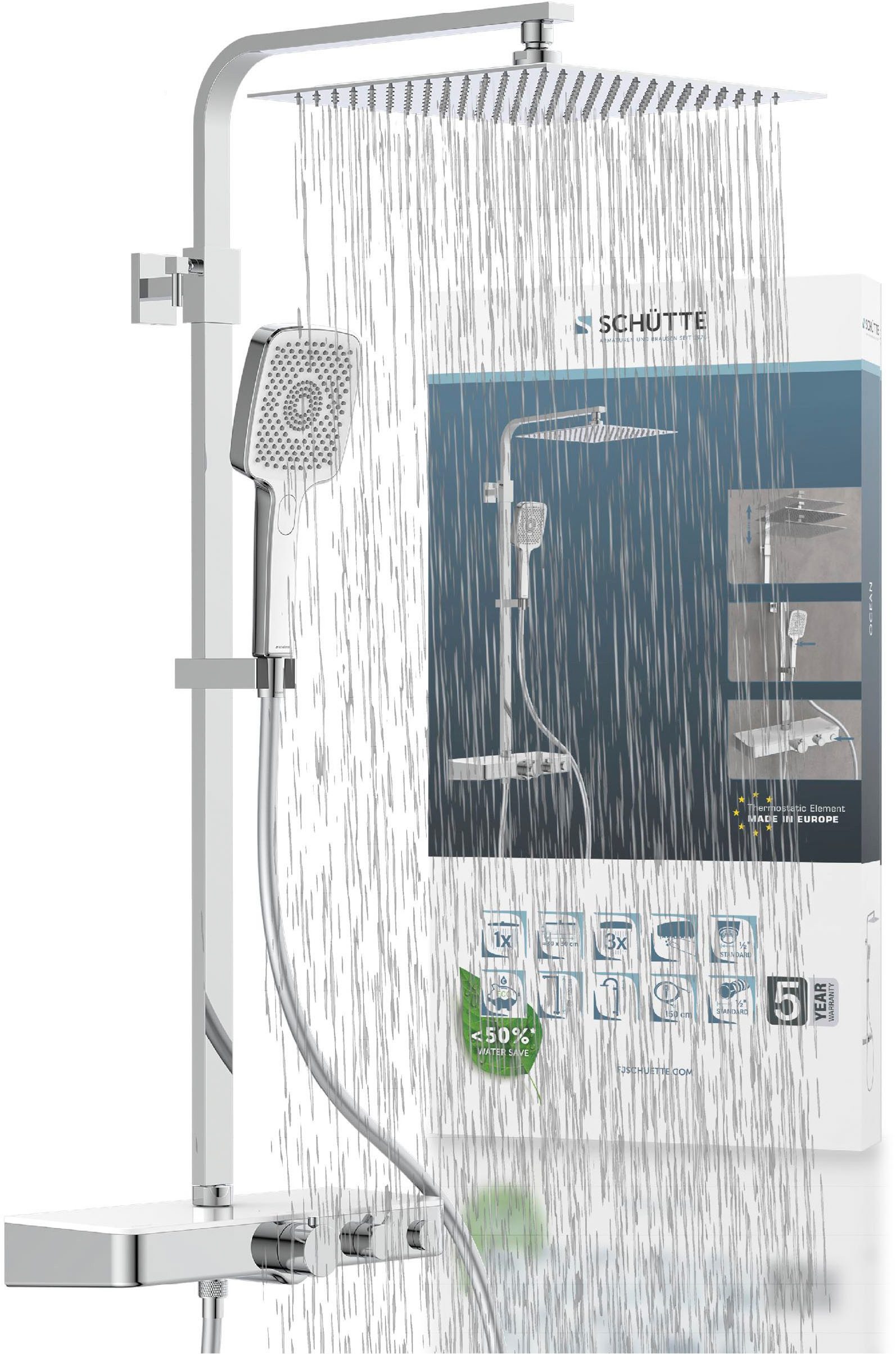 Die Duschsäule mit eleganter Duschablage aus Sicherheitsglas bietet Stauraum für Duschutensilien, so ist alles schnell zur Hand. Besonders praktisch für Duschen mit geringem Platzangebot.