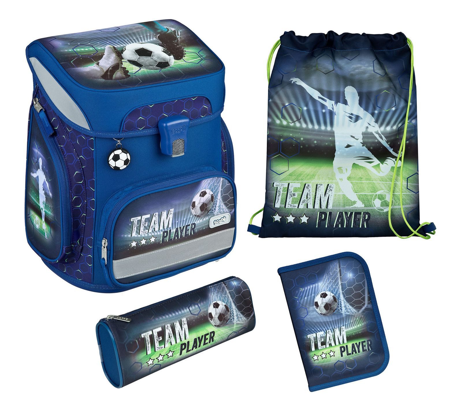 Das perfekte Set für einen unvergesslichen Schulanfang bekommen Sie mit diesem Herzstück von Scooli. Dieses EasyFit Schulranzen-Set 5-teilig ist aus strapazierfähigem und wasserabweisendem Material kreiert. Dieser Artikel zeichnet sich durch ein verspieltes und kindgerechtes Design aus. Auch an Sicherheit und Rückenschonung wurde gedacht. Die reflektierenden Bereiche sorgen für mehr Sicherheit im Straßenverkehr und das ergonomische Tragesystem unterstützt die Gesundheit Ihres Kindes. Zudem ist dieses Modell als leichtes bekannt. Ein separat kaufbarer Hüftgurt kann auf der Rückseite befestigt werden und verstärkt nochmals den Tragekomfort. des Впередen überzeugen bei diesem EasyFit Schulranzen-Set 5-teilig Kleinigkeiten, wie das Fach auf der Vorderseite in das die Brotdose von Scooli perfekt hinein passt aber auch die Auslaufösen, damit Flüssigkeit ablaufen kann. Der Schlüsselanhänger ist abnehmbar und Teils des Sets. Mit diesem tollen Schulranzen, dem gefüllten Federmäppchen, dem praktischen Schlampermäppchen, dem Sportbeutel und dem Schlüsselanhänger wird Ihr Grundschulkind hervorragend für die nächsten vier Jahre ausgestattet sein.