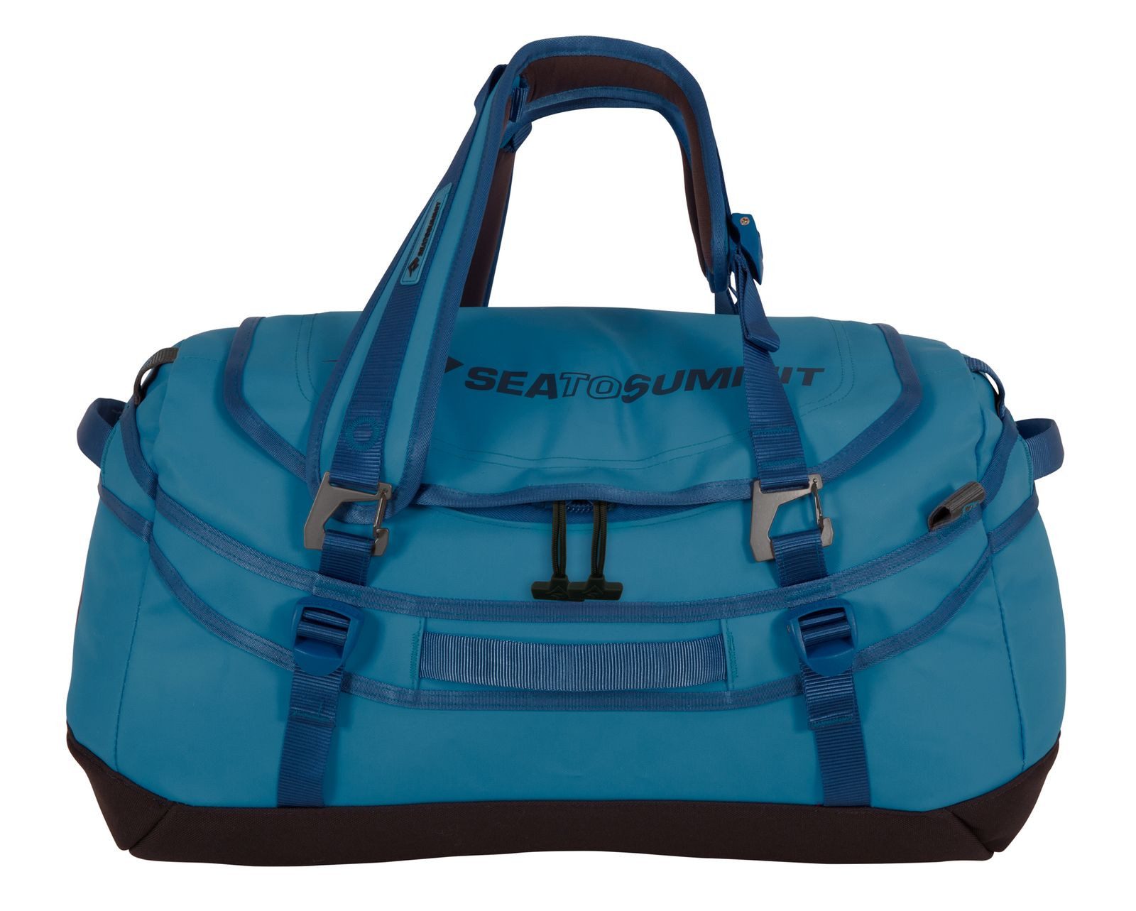 Sporttasche und Rucksack in einem? - Kein Problem bei Sea To Summit! Die Henkel können durch die Karabinerhaken schnell an einer anderen Stelle der Tasche befestigt werden und schon haben Sie eine alternative Trageoption. Das wasserabweisende Material und der verdeckte Two-Way-Zipper bieten zudem hohe Funktionalität. Auch an einem großen Haupfach wurde bei der Sea To Summit Duffle Bag 45L nicht gespart. Rundum absolut gelungen!