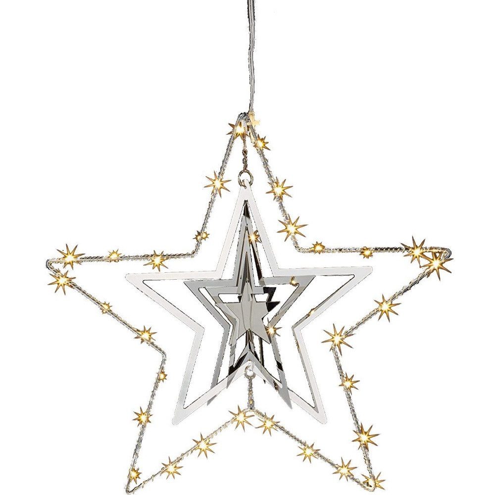 1062 3D Hänger Stern "Mirror" 30er warmweiß 3xAA Batterie 6/18h Timer 30x30cm