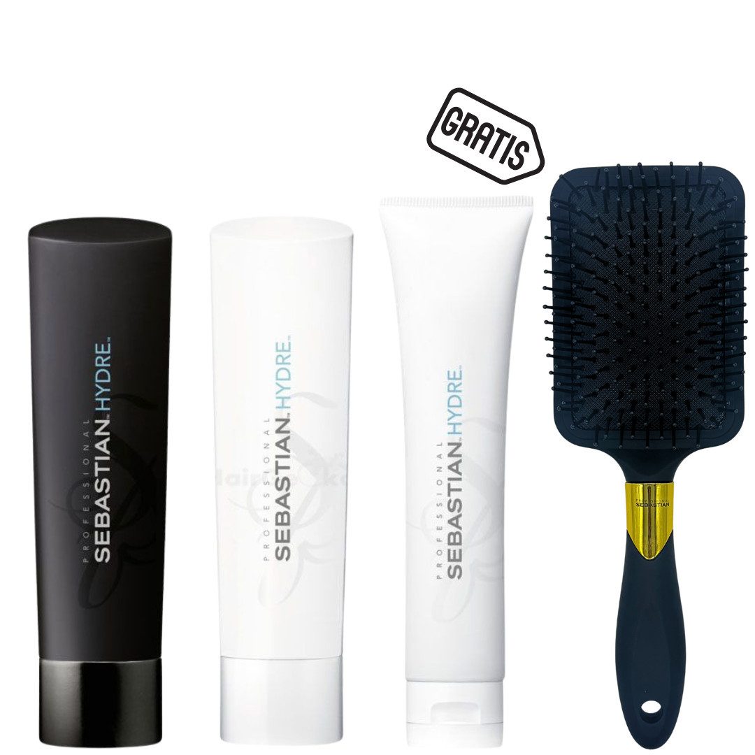 Feuchtigkeit & Pflege für trockenes, strapaziertes Haar Das Sebastian Hydre Set ist die Rettung für trockenes, sprödes und strapaziertes Haar. Mit seiner feuchtigkeitsspendenden Formel bringt es intensive Pflege und seidige Geschmeidigkeit zurück in dein Haar. Ideal für beanspruchte Довжинаn und Spitzen, die nach neuer Vitalität verlangen. Das Set reinigt sanft, spendet tiefenwirksame Feuchtigkeit und pflegt das Haar, ohne es zu beschweren. Dein Haar wird nicht nur spürbar weicher, sondern erhält auch einen gesunden, strahlenden Glanz. Set-Inhalt: Hydre Shampoo 250 ml Hydre Conditioner 250 ml Hydre Treatment 150 ml Gratis: Sebastian Professional Paddle Brush Ideal für trockenes, krauses oder chemisch behandeltes Haar. Dein Vorteil: Spare gegenüber dem Einzelkauf und erhalte zusätzlich die Profi-Bürste gratis dazu!