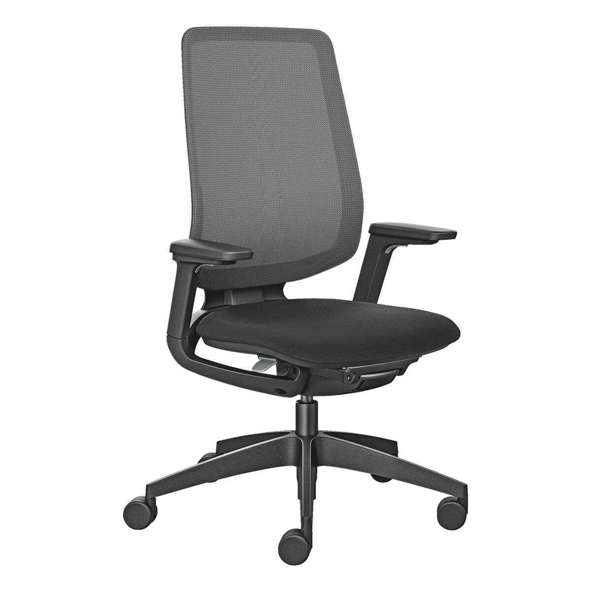 Bürostuhl »se:flex« mit Netz-Rückenlehne schwarz, hochflexibler Bürostuhl für Büros mit Wechselarbeitsplätzen, Ausstattung: Rückenlehne mit Membranbespannung / Sitzpolster, Sitzbreite/-tiefe: 49 / 39,5 - 46,5 cm, Sitzhöhe verstellbar über Gasfeder, Sitzhöhe: 400 - 520 mm, mit Armlehnen, Verstellbarkeit: höhenverstellbar (100 mm) / tiefenverstellbar (40 mm) / Armauflagen schwenkbar (innen / außen), mit Lordosenhöhenverstellung, max. Belastbarkeit: 130 kg, Fußkreuz mit 5 Rollen, Rollendurchmesser: 65 mm, Rollentyp: weiche Rollen für harte Böden, Material Fußkreuz: Kunststoff, Material Polster: Formschaum (Polyurethan) / Stoff, Material Rückenlehne: Netz, Material Armlehnen: Kunststoff, Farbe Gestell: schwarz, Farbe Sitzfläche / Rückenlehne: schwarz, Inhalt pro Pack: 1 Bürostuhl
