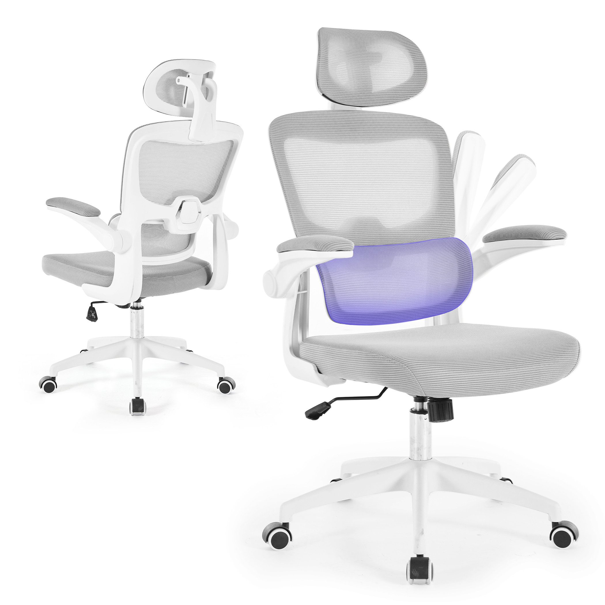 Atmungsaktive Rückenlehne: Der Bürostuhl verfügt über ein Flügel-Design mit atmungsaktiver Rückenlehne. Das atmungsaktive Netzgewebe fördert die Luftzirkulation, reduziert das unangenehme Gefühl von Wärme am Rücken und verhindert das Schwitzen oder Unbehagen. Dieser Bürostuhl ist nicht nur für den Sommer geeignet, sondern bietet besonders im Büroalltag ganzjährige Komfort.