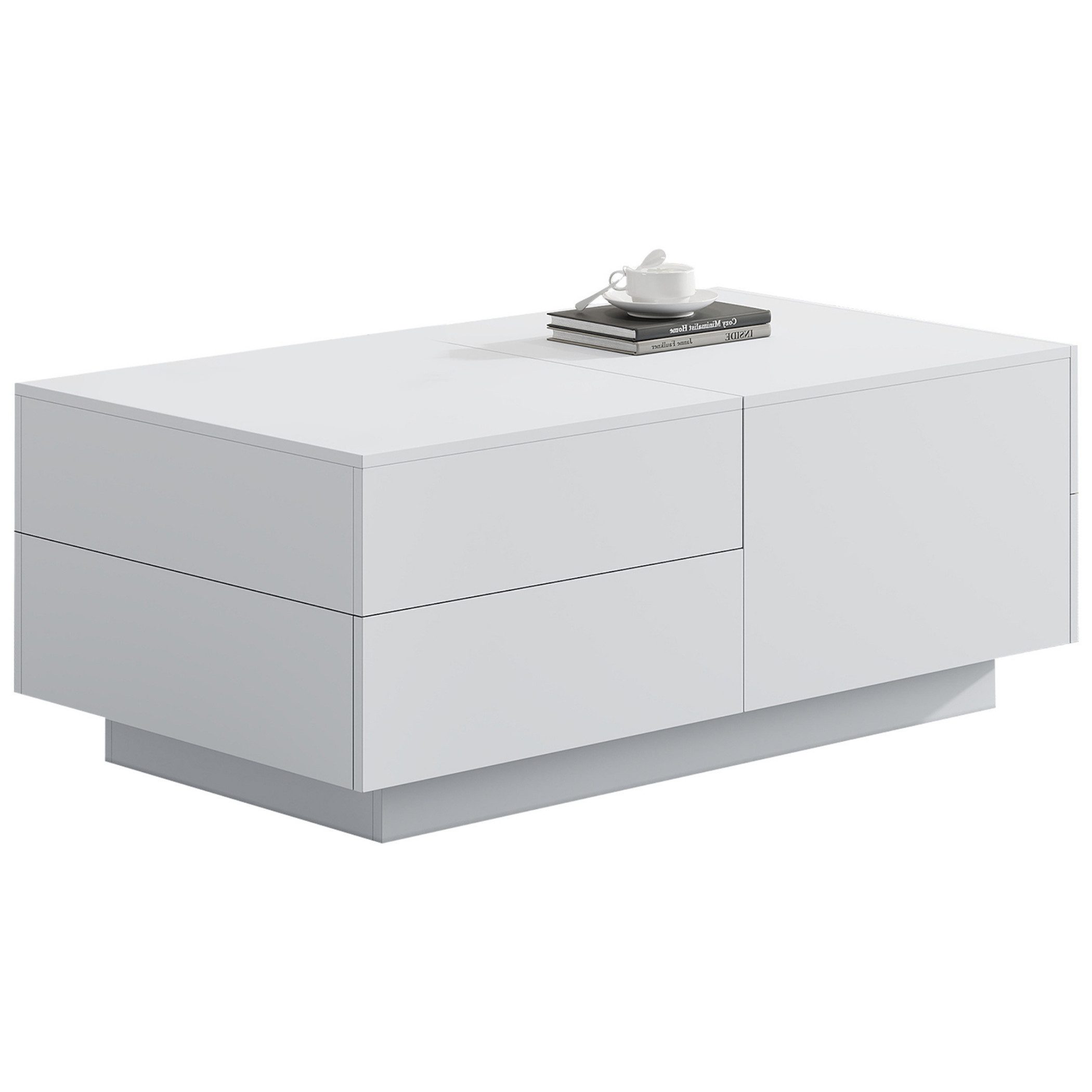 Dieser moderne, mattweiße Couchtisch vereint funktionale Vielseitigkeit und elegantes Design. Mit seiner ausziehbaren Arbeitsplatte, die sich bequem auf einer stabilen Laufschiene erweitern lässt, bietet er im Handumdrehen mehr Arbeits- oder Ablagefläche, ohne dabei an Stil zu verlieren. Unter dem flexiblen Tischbereich befinden sich mehrere versteckte Ablagefächer, die optimal für die Aufbewahrung von Alltagsgegenständen wie Fernbedienungen, Zeitschriften oder Ladegeräten geeignet sind. Drei geräumige Schubladen mit sanften Laufschienen ergänzen den Tisch, bieten zusätzlichen Stauraum und tragen so zur praktischen Nutzung bei. Besonders hervorzuheben ist die robuste Konstruktion ohne Beine: Die großzügige Bodenfläche des Tisches sorgt für außergewöhnliche Stabilität und Halt, wodurch der Tisch zu einem langlebigen und sicheren Möbelstück wird.