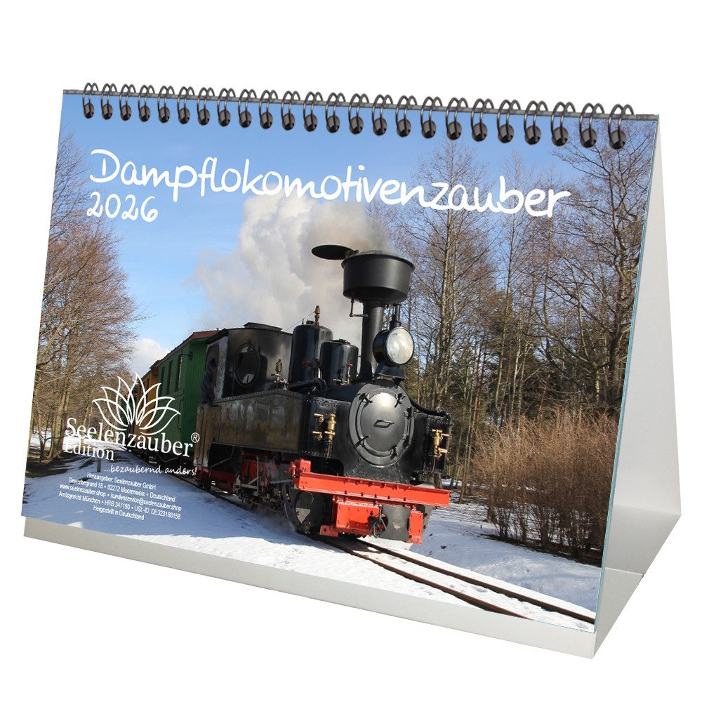 Seelenzauber Tischkalender Dampflokomotivenzauber DIN A5 Tischkalender für 2026 Eisenbahn