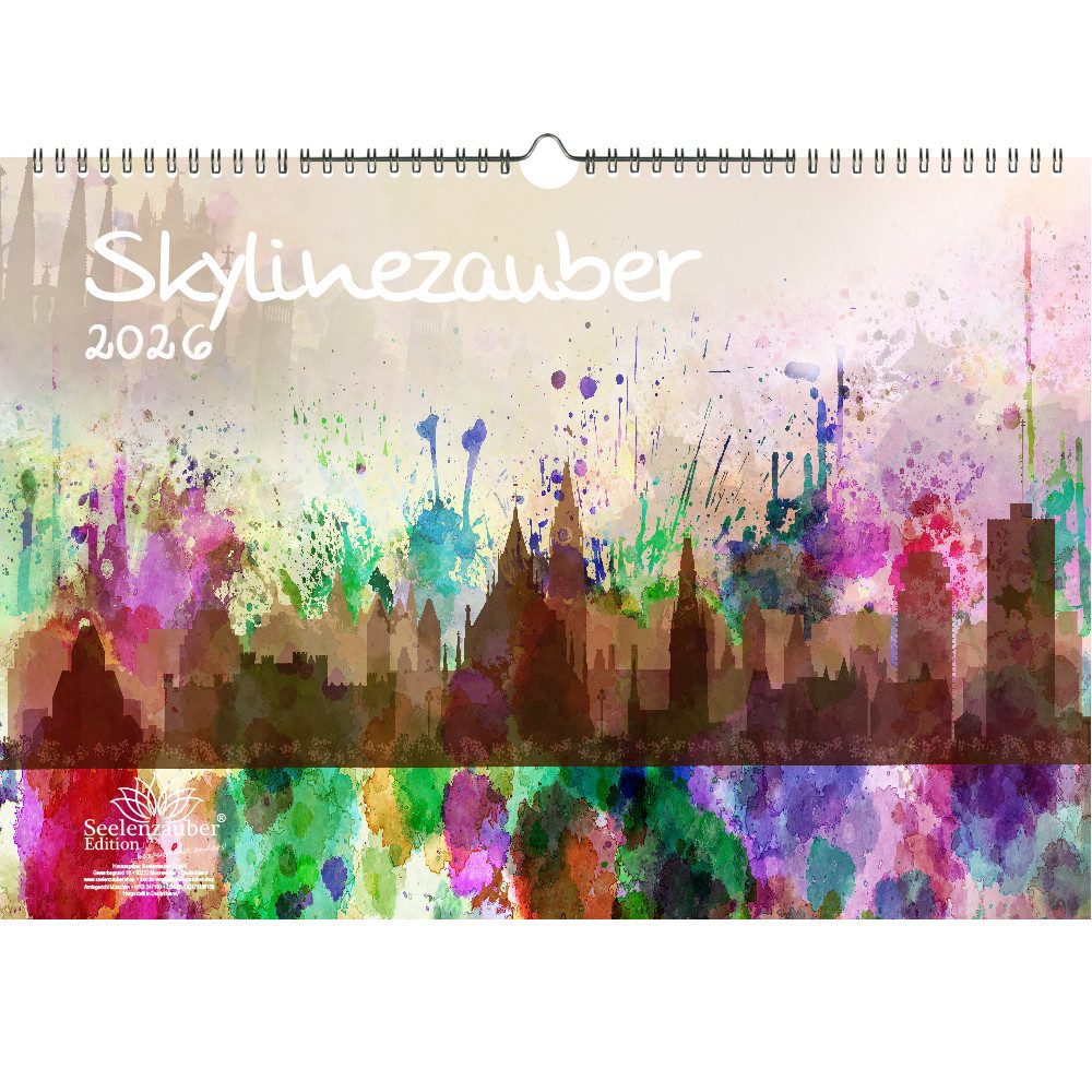 Seelenzauber Wandkalender Skylinezauber DIN A3 Kalender für 2026 Städte Skylines in Aquarell