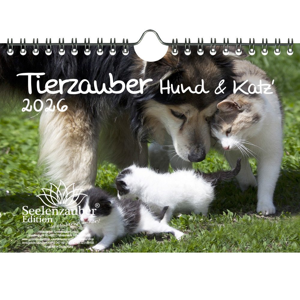 Seelenzauber Wandkalender Tierzauber Hund und Katz DIN A5 Kalender für 2026 - Seelenzauber