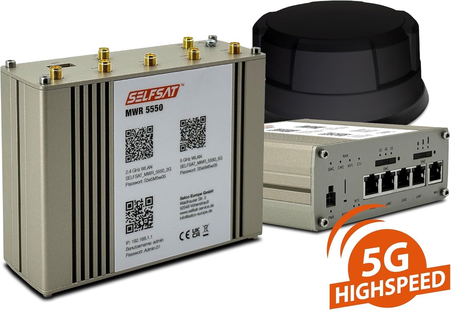 SELFSAT MWR 5550 mit Panorama Antenne schwarz (4 x 5G/4G, 2 x WLAN, 1 x GPS, 1 m Kabel)