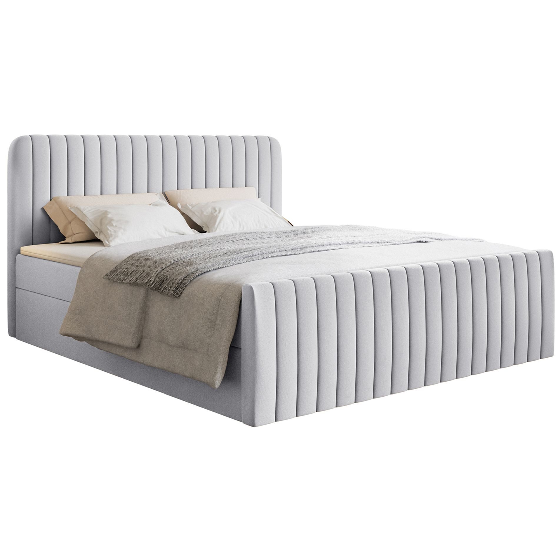 Lieferumfang | 1 Bett mit Matratze, Topper und Bettkästen (ohne Dekoration) |