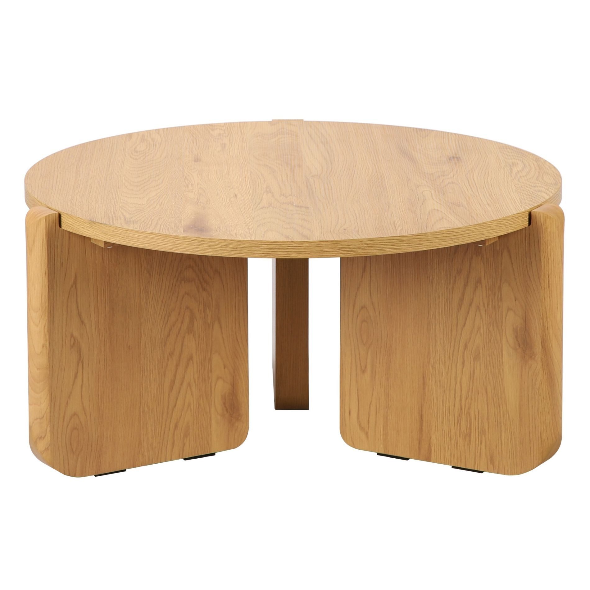 Der Wohnzimmertisch Preffines besticht durch sein Holzdekor und verleiht Ihrem Raum eine Note industrieller Ästhetik. Er ist ideal für alle, die ein funktionales Möbelstück suchen, das gleichzeitig durch seinen einzigartigen Charakter begeistert. Drei robuste Beine stützen die Tischplatte und betonen den zeitgemäßen Stil. Die präzise nachgebildete Holzstruktur macht den Tisch zu einem unverwechselbaren Highlight. Mit einer großzügigen Tischplatte von 80 cm Durchmesser bietet er Platz für Ihre Teetasse, ein Buch oder dient als auffälliges Designelement in Ihrer Einrichtung.