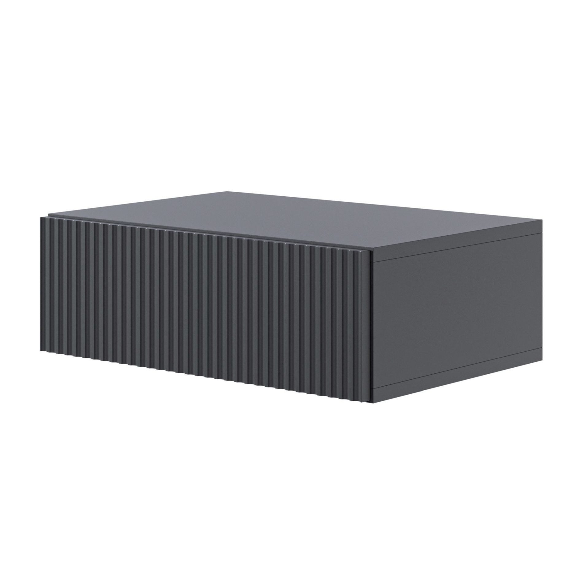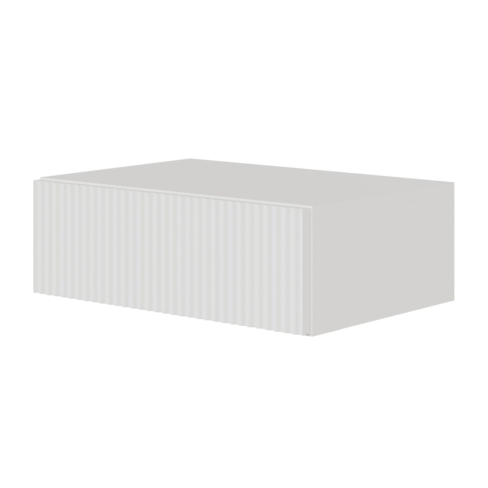 Der hängende Nachttisch Veldio kombiniert minimalistisches Design mit durchdachter Funktionalität und verleiht Ihrem Schlafzimmer eine moderne, schwebende Eleganz. Mit einer geräumigen Schublade bietet der Nachttisch ausreichend Platz für Ihre wichtigsten Gegenstände, während die geriffelte Front nicht nur stilvolle Akzente setzt, sondern auch Fingerabdrücke minimiert. Veldio ist die perfekte Wahl für alle, die modernes Interior-Design und funktionale Möbel schätzen.