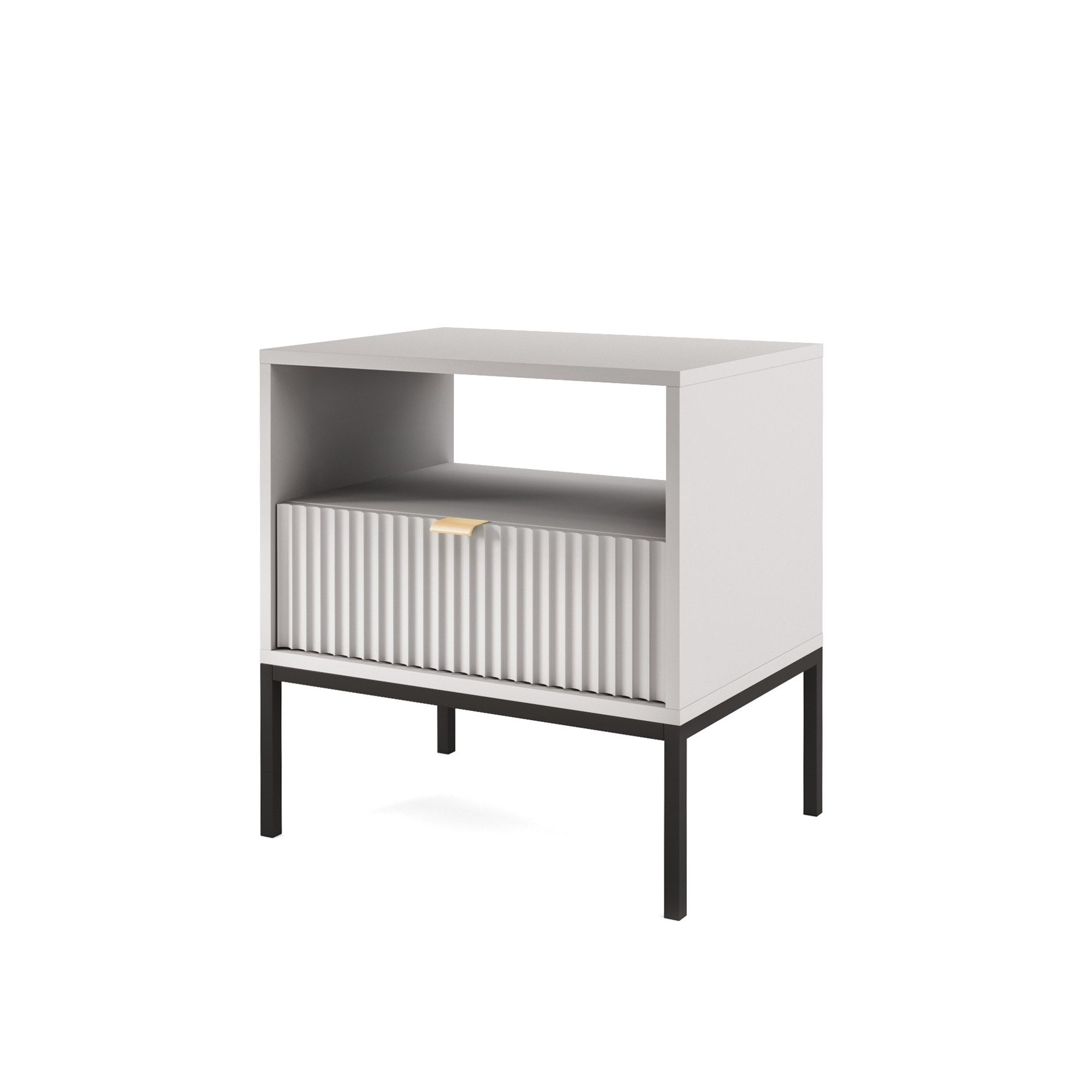 Neben seiner stilvollen Optik bietet der Nachttisch auch Funktionalität: Eine geräumige Schublade und ein offenes Fach schaffen Platz für Ihre persönlichen Gegenstände und erleichtern den Alltag.
