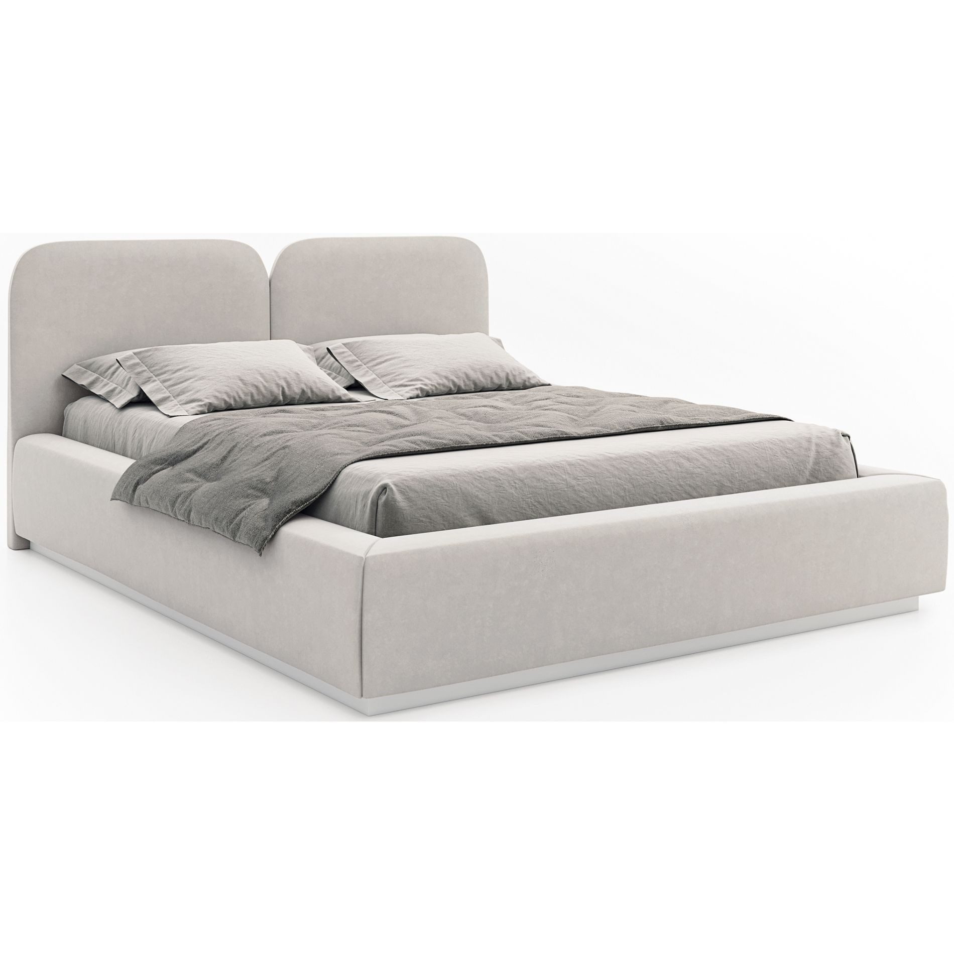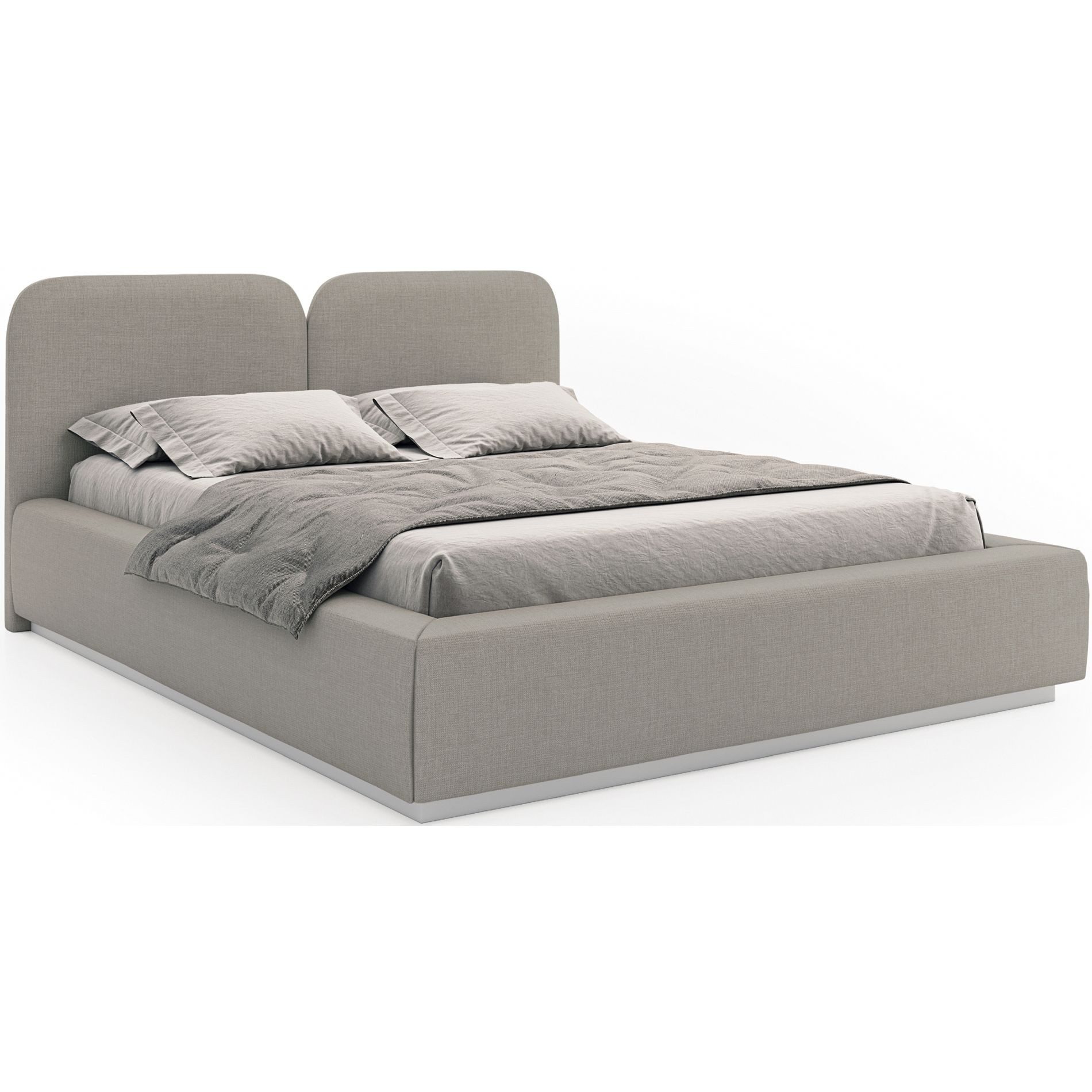 Das klare, moderne Erscheinungsbild wird durch ein geteiltes, sanft abgerundetes Kopfteil ergänzt, das für eine einladende Atmosphäre sorgt. Zwei exklusive Stoffvarianten stehen zur Auswahl: