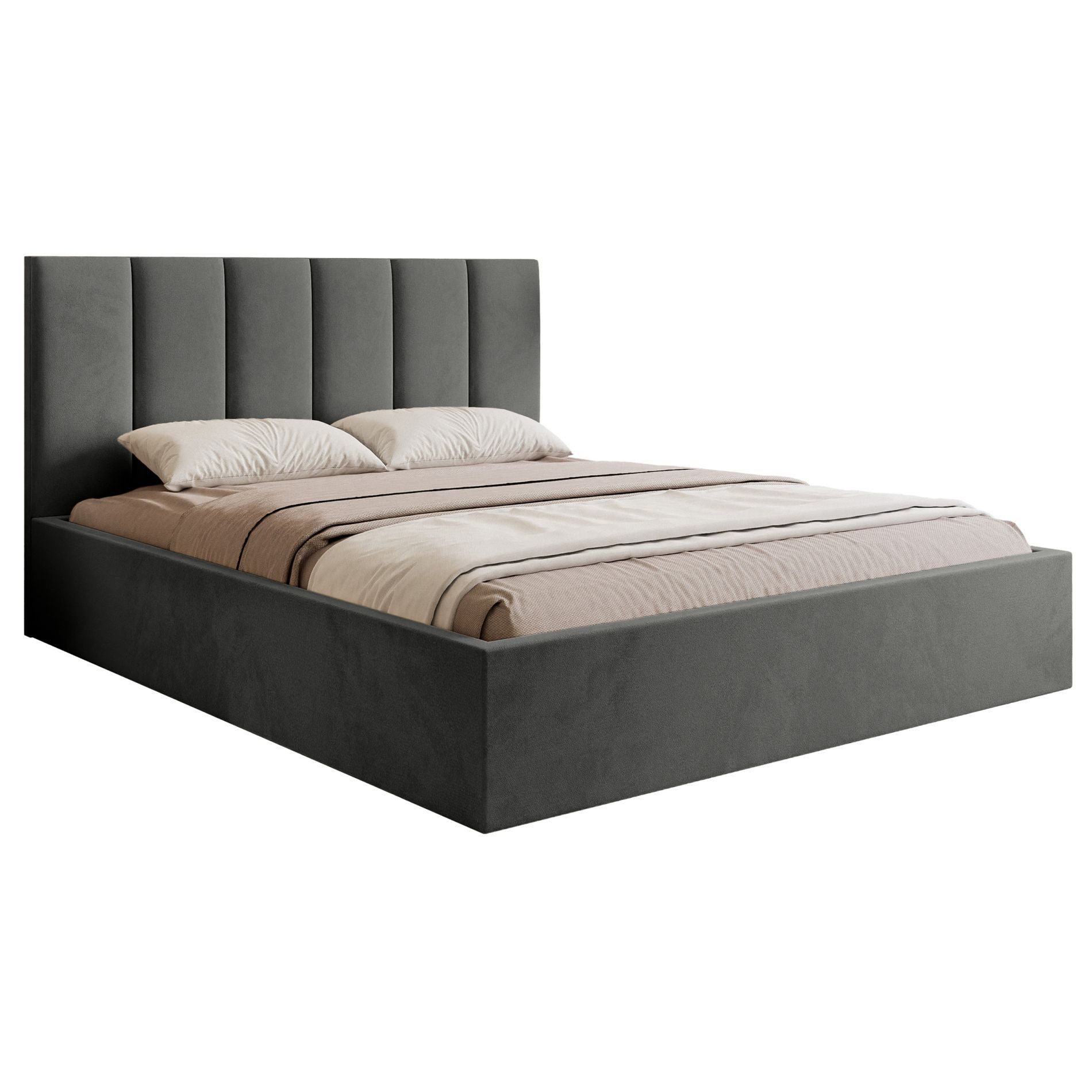 Der großzügige Bettkasten mit nach oben aufklappbarem Mechanismus bietet diskreten Stauraum für Decken, Kissen oder saisonale Textilien. Das Gestell besteht aus einer stabilen Materialkombination aus Holz, laminierter Platte, Spanplatte und Hartfaserplatte. Der Lattenrost mit Metallrahmen ist im Lieferumfang enthalten.