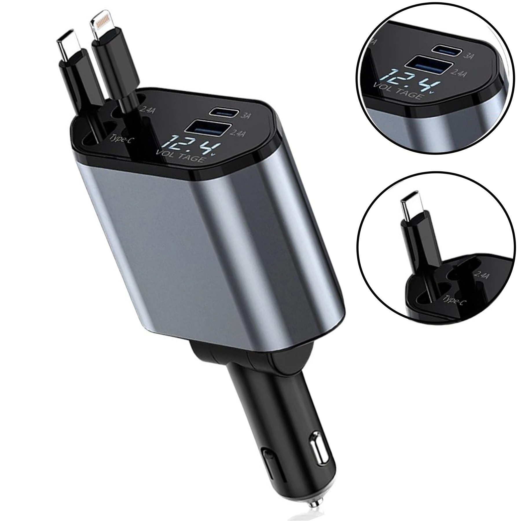 Die USB-C- und iPhone-Kabel ziehen sich bei Nichtgebrauch automatisch zurück. Das reduziert Kabelgewirr, schützt vor Abnutzung & sorgt für einen aufgeräumten Auto-Innenraum, während Geräte einsatzbereit bleiben.