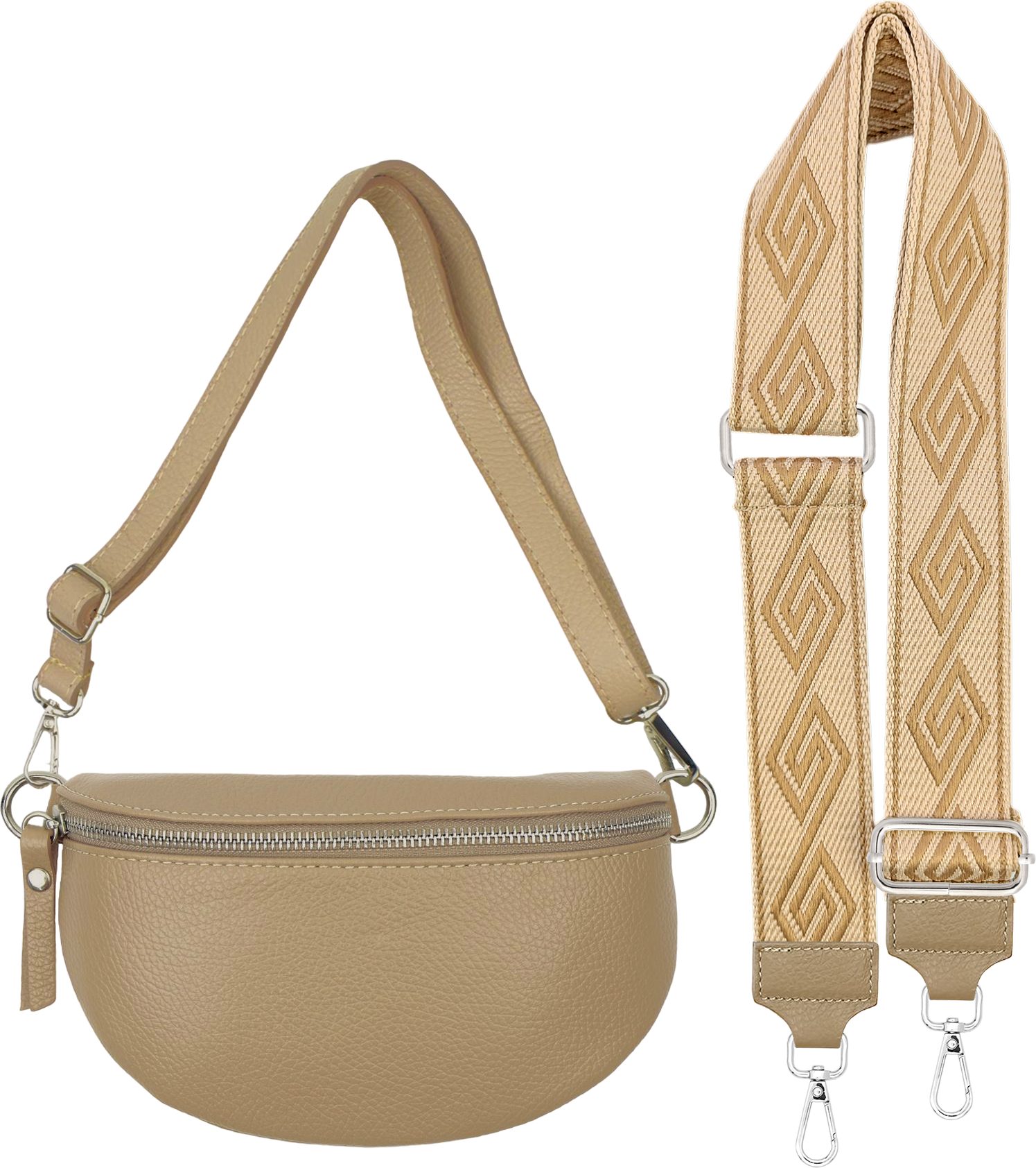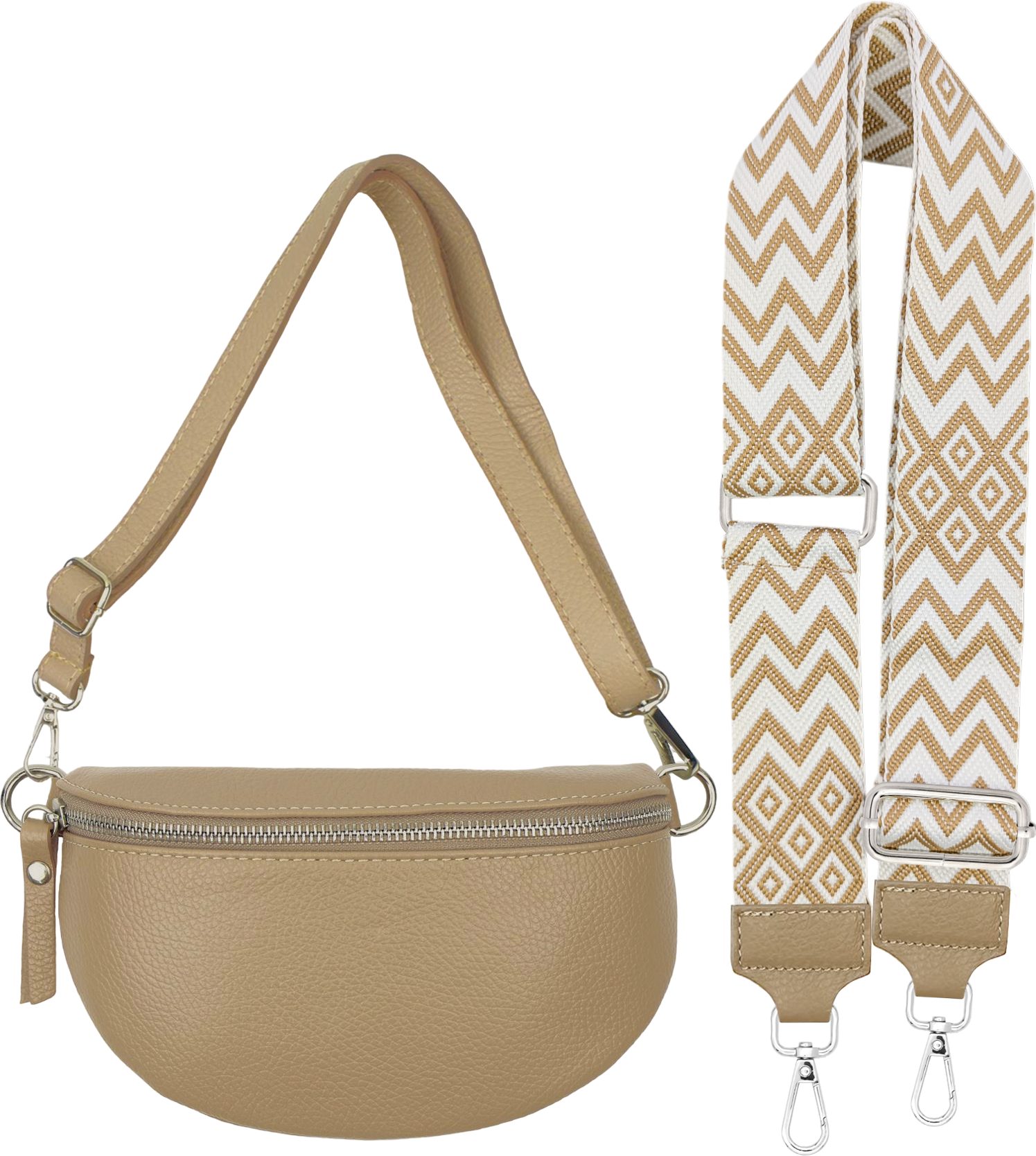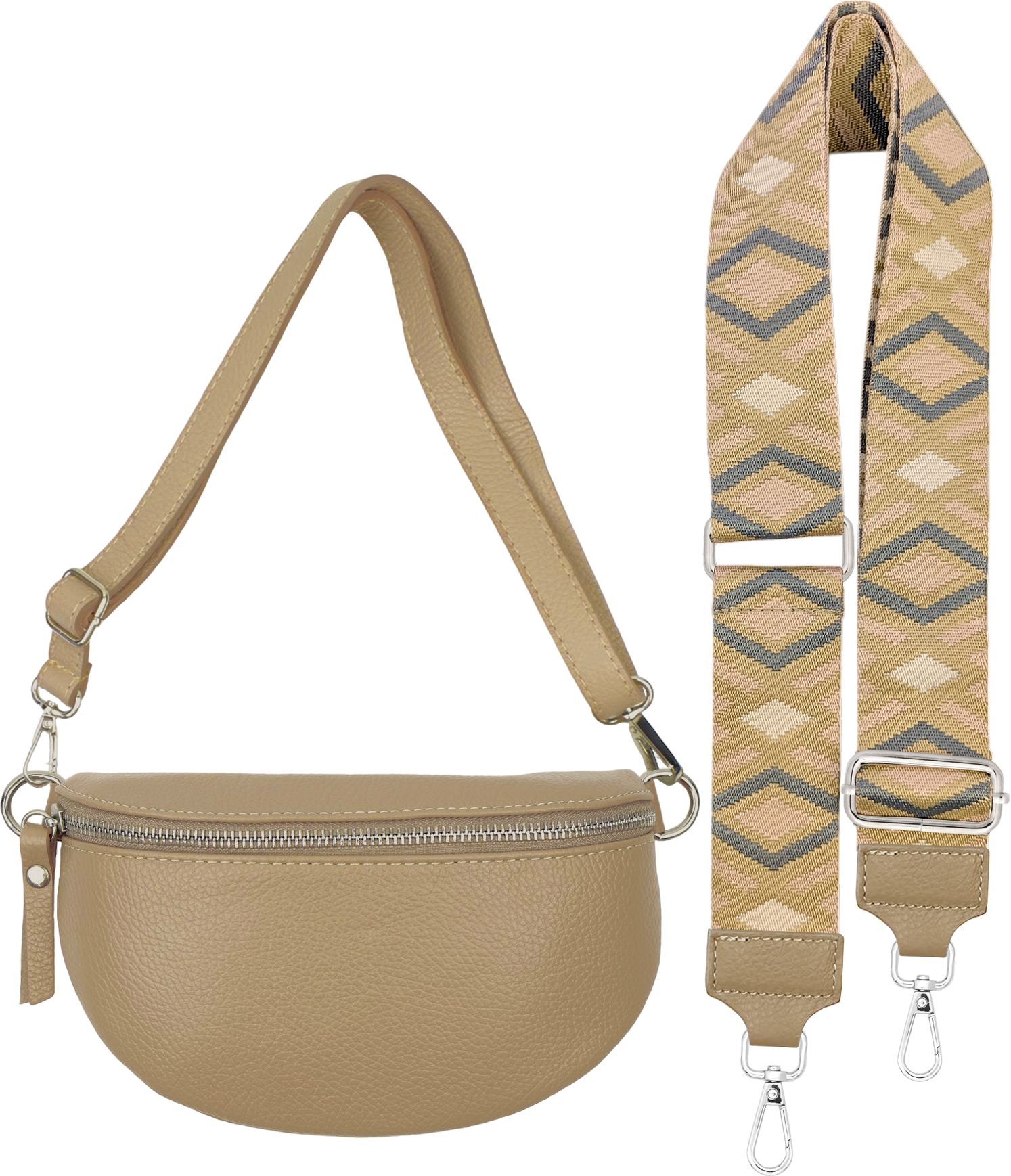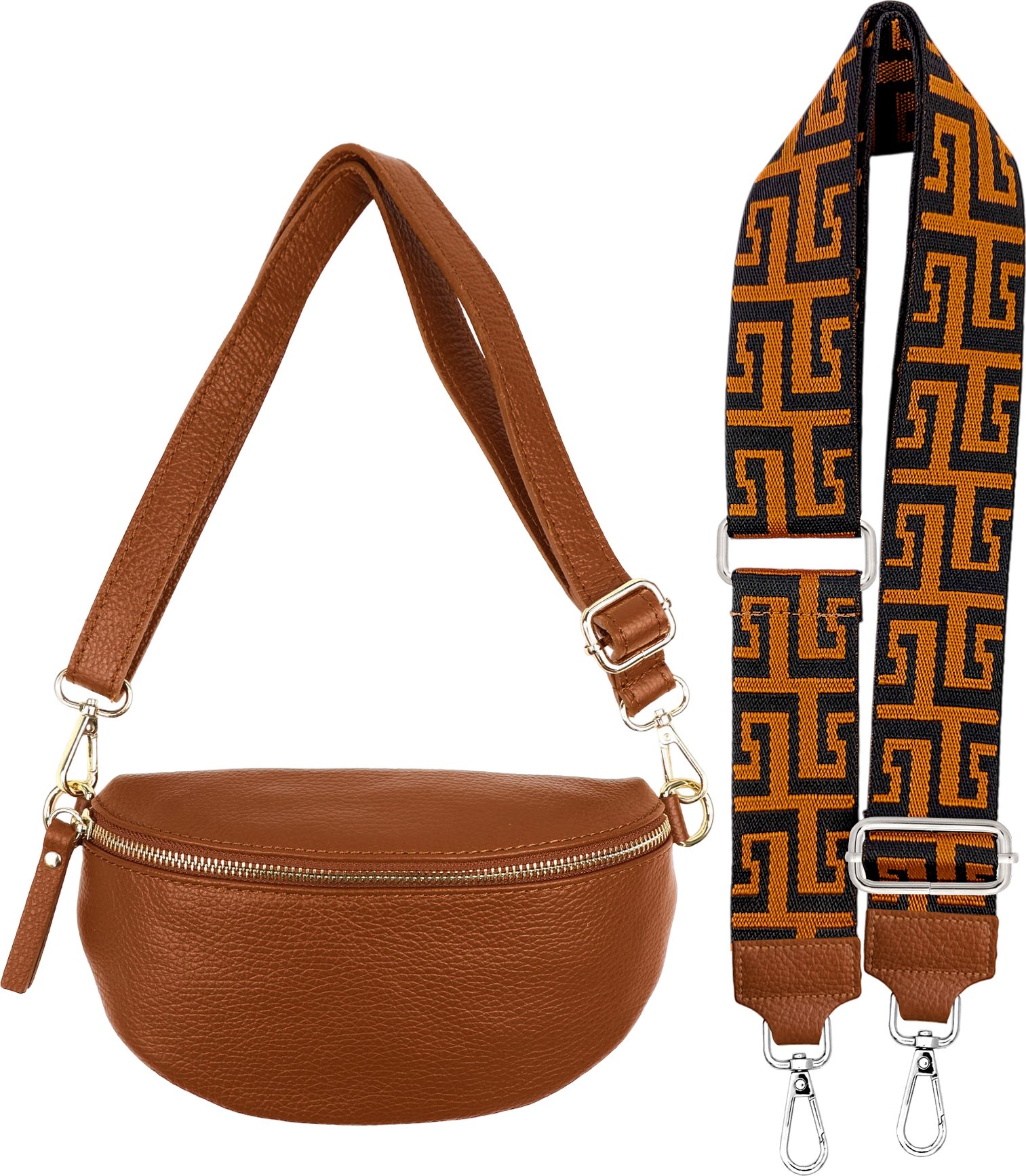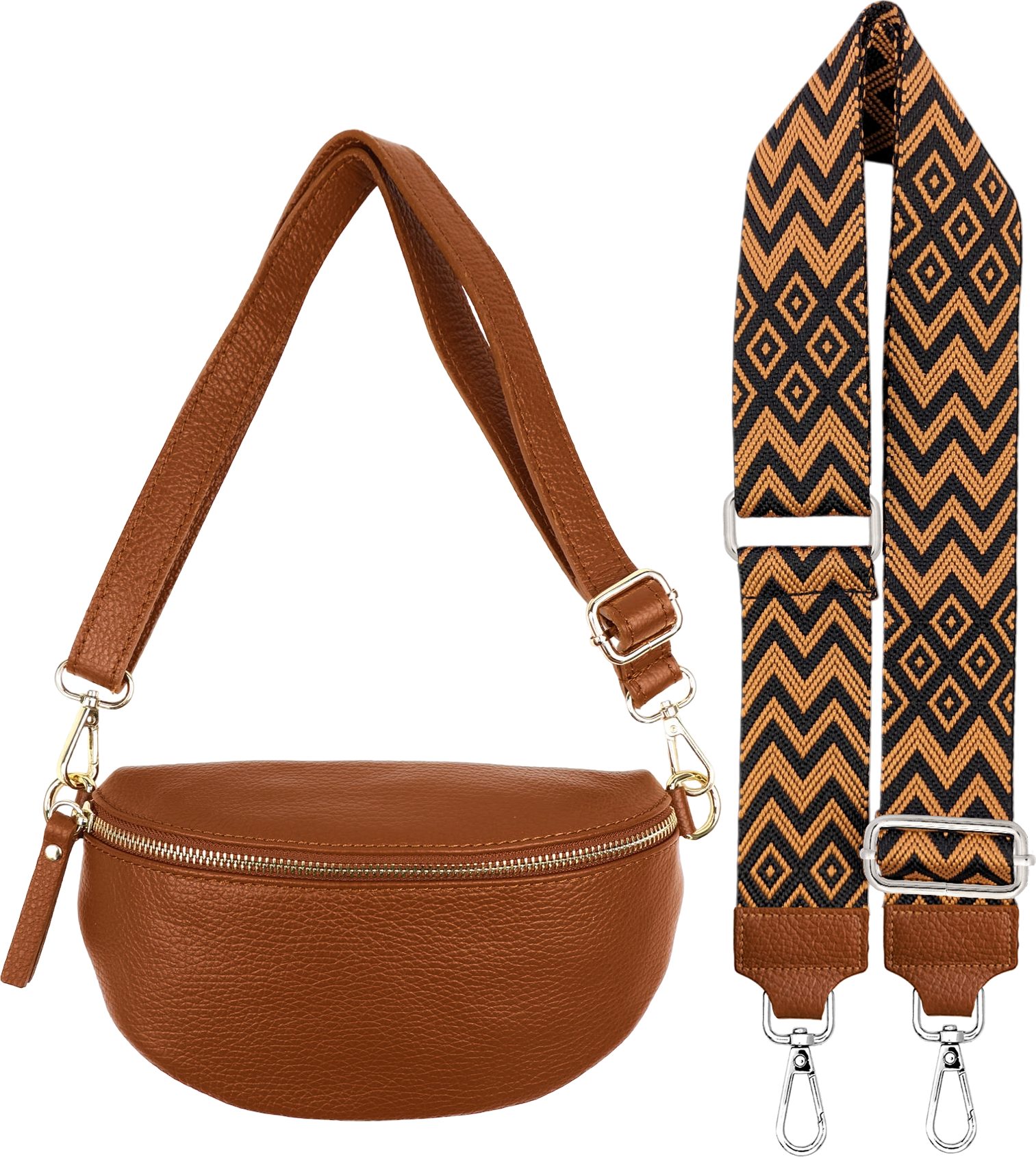 Hinweis Lieferumfang | 1 Bauchtasche mit einem verstellbaren Ledergurt. Farben und Größen können je nach Auswahl variieren. Optionaler gemusterter Schultergurt separat erhältlich. |
