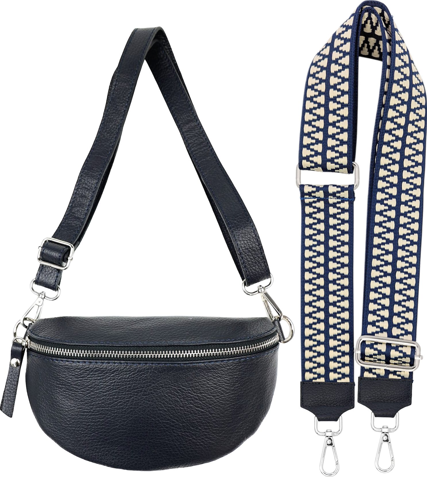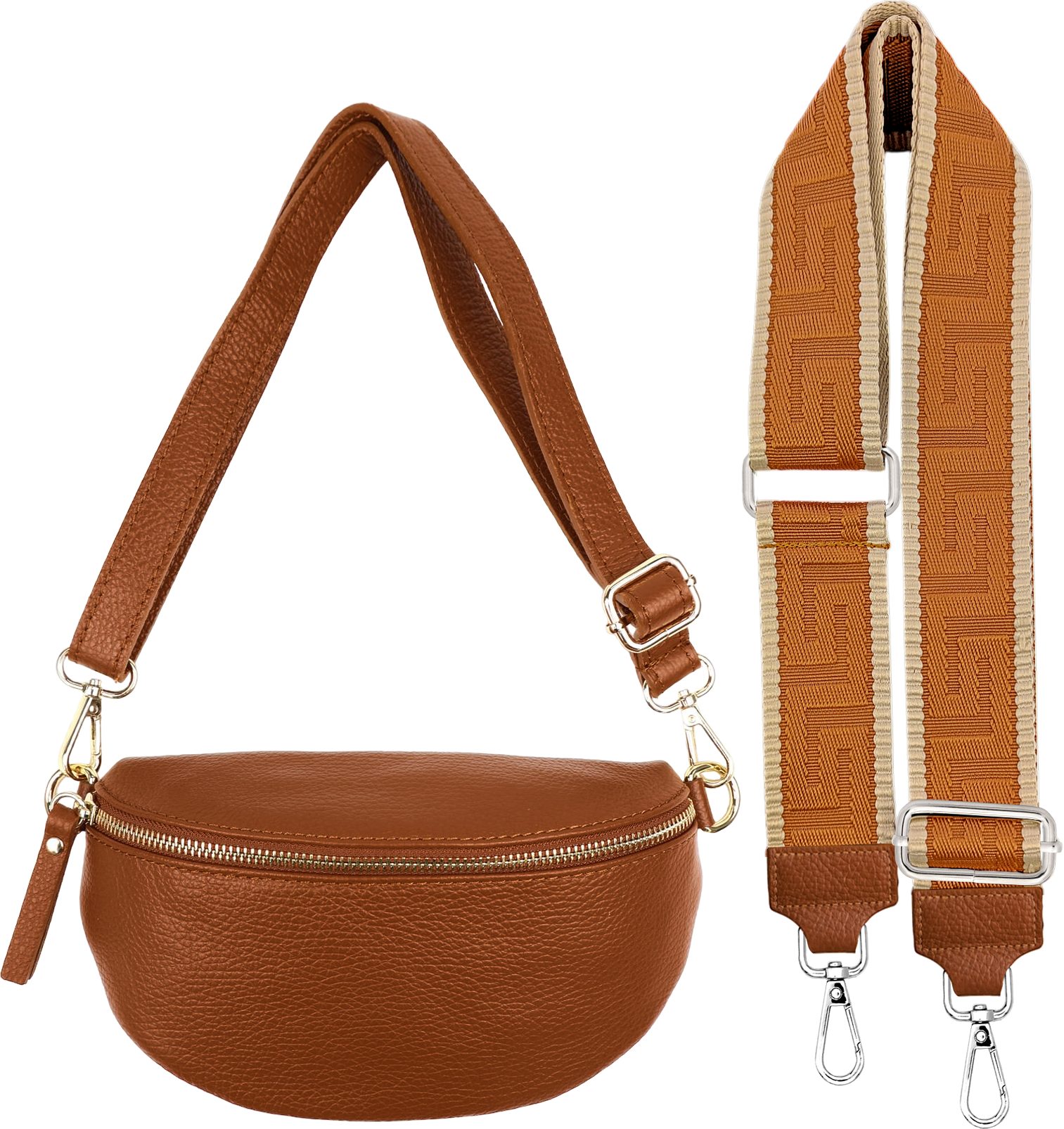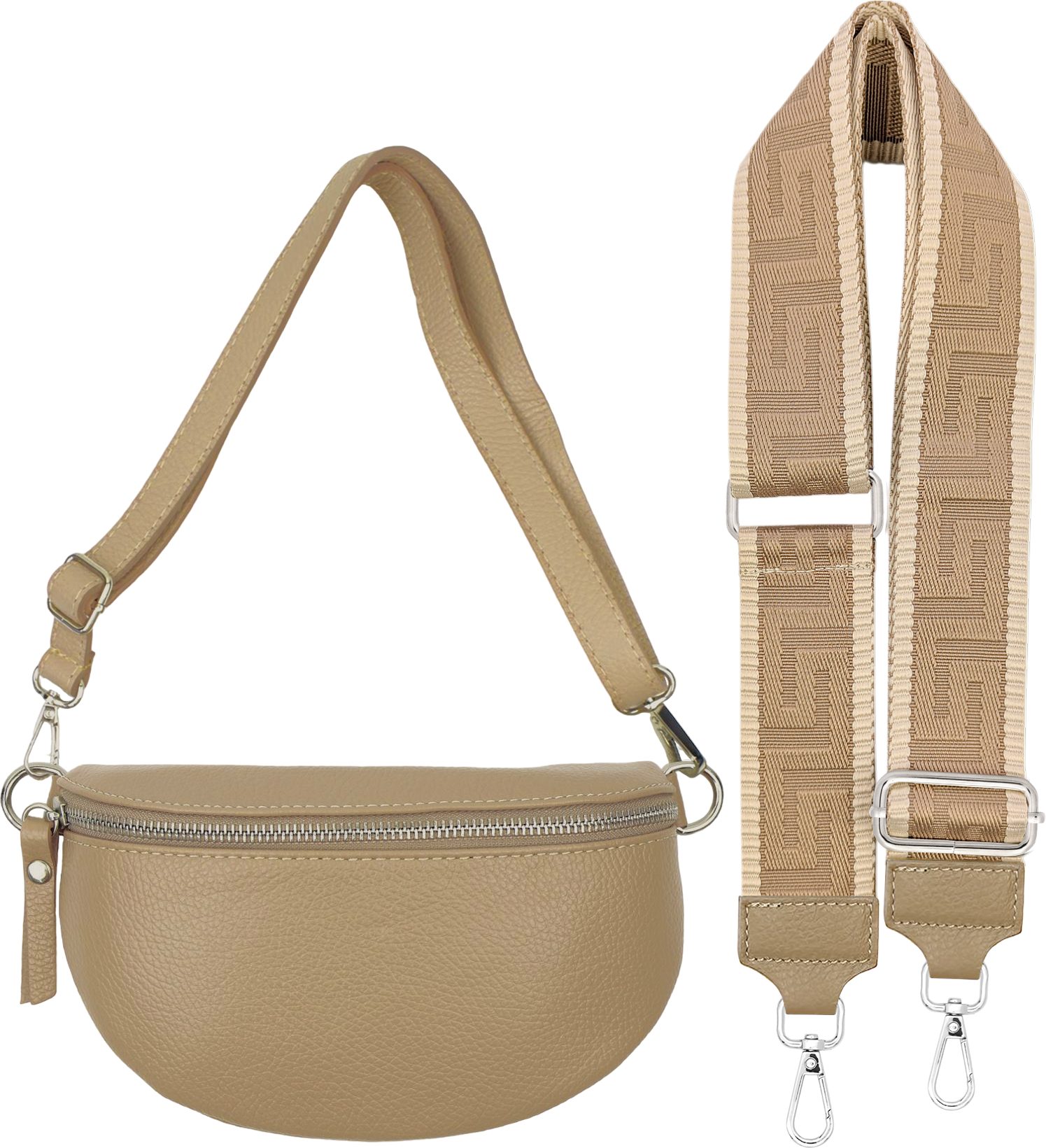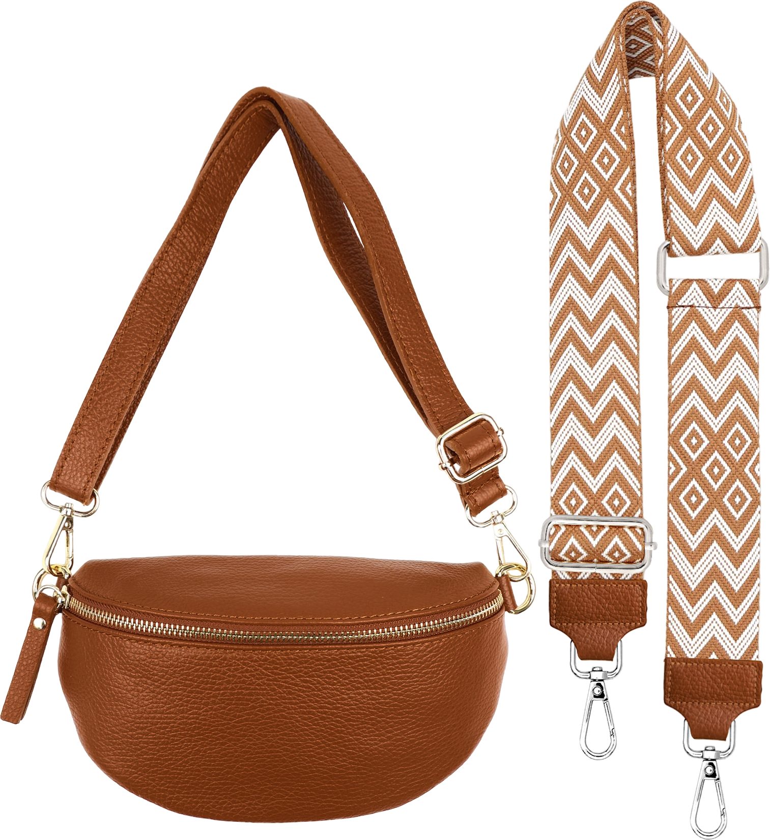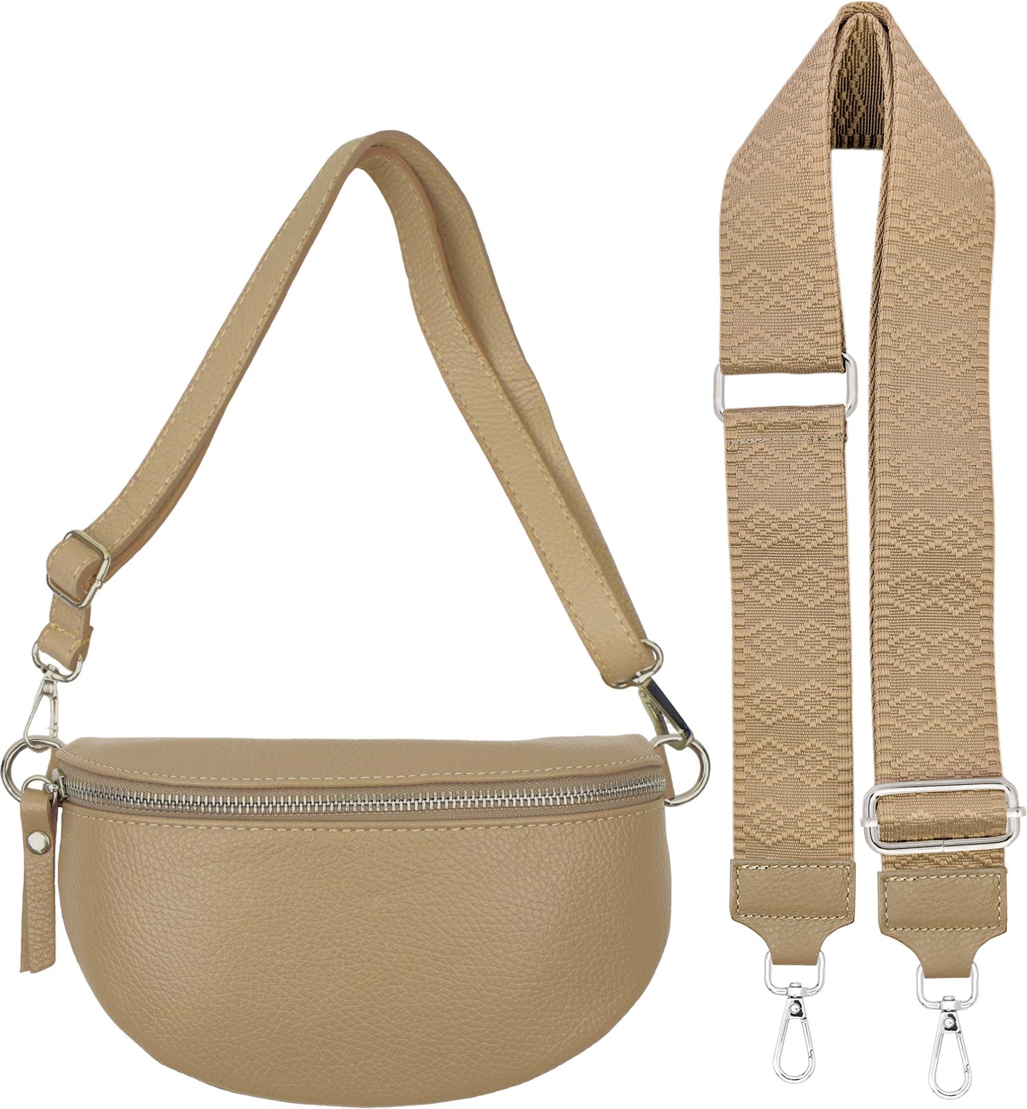 Hinweis Lieferumfang | 1 Bauchtasche mit einem verstellbaren Ledergurt. Farben und Größen können je nach Auswahl variieren. Optionaler gemusterter Schultergurt separat erhältlich. |