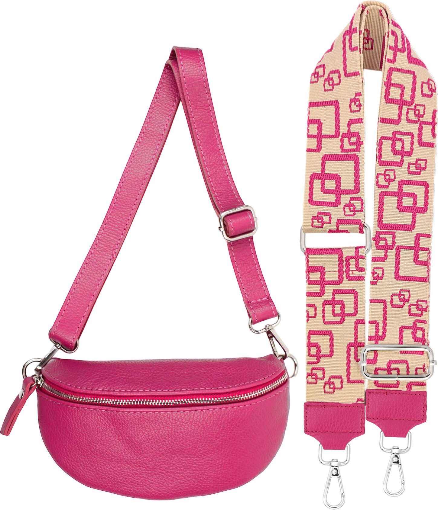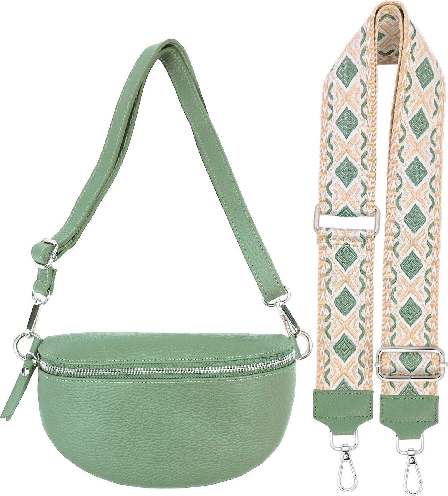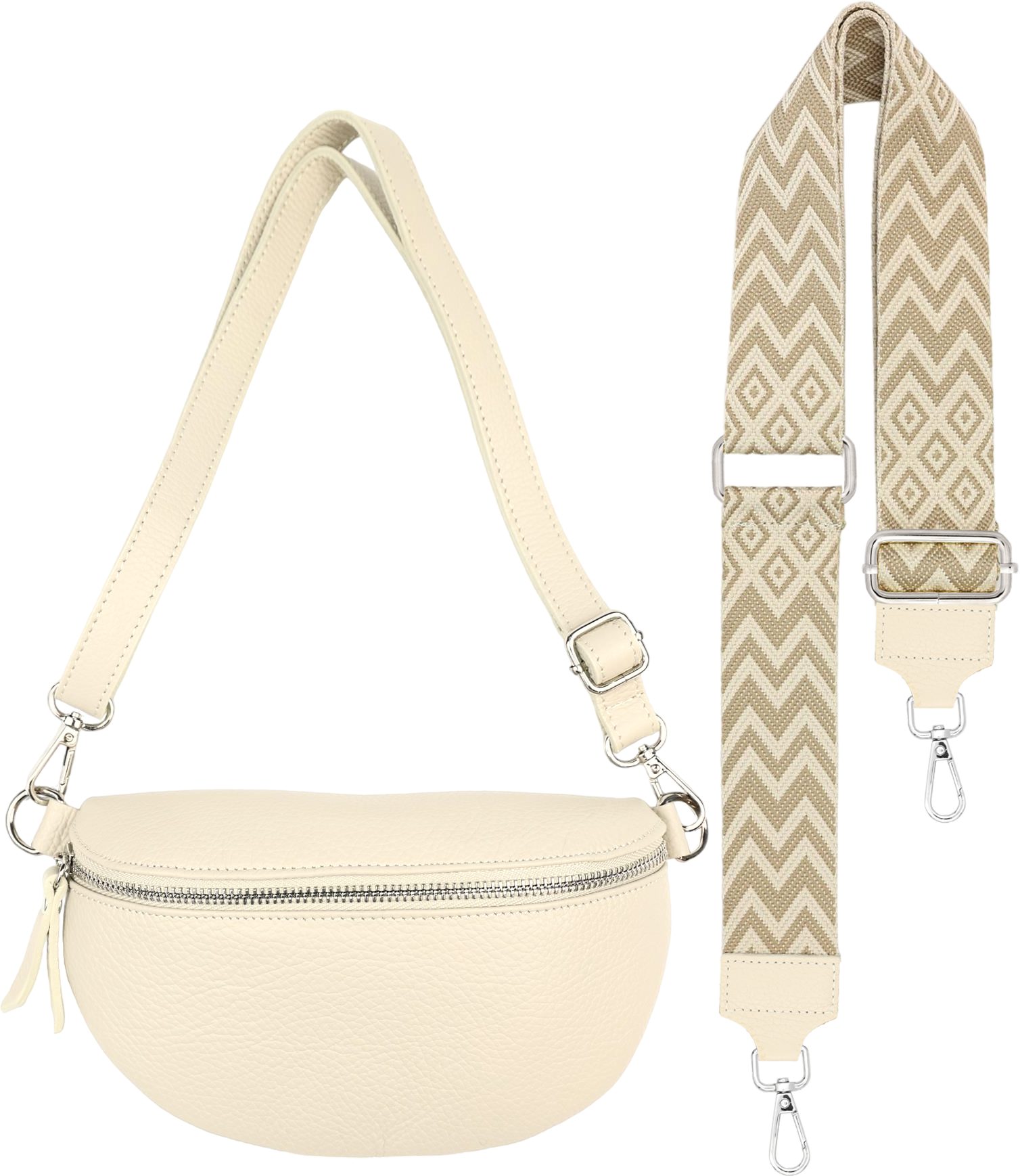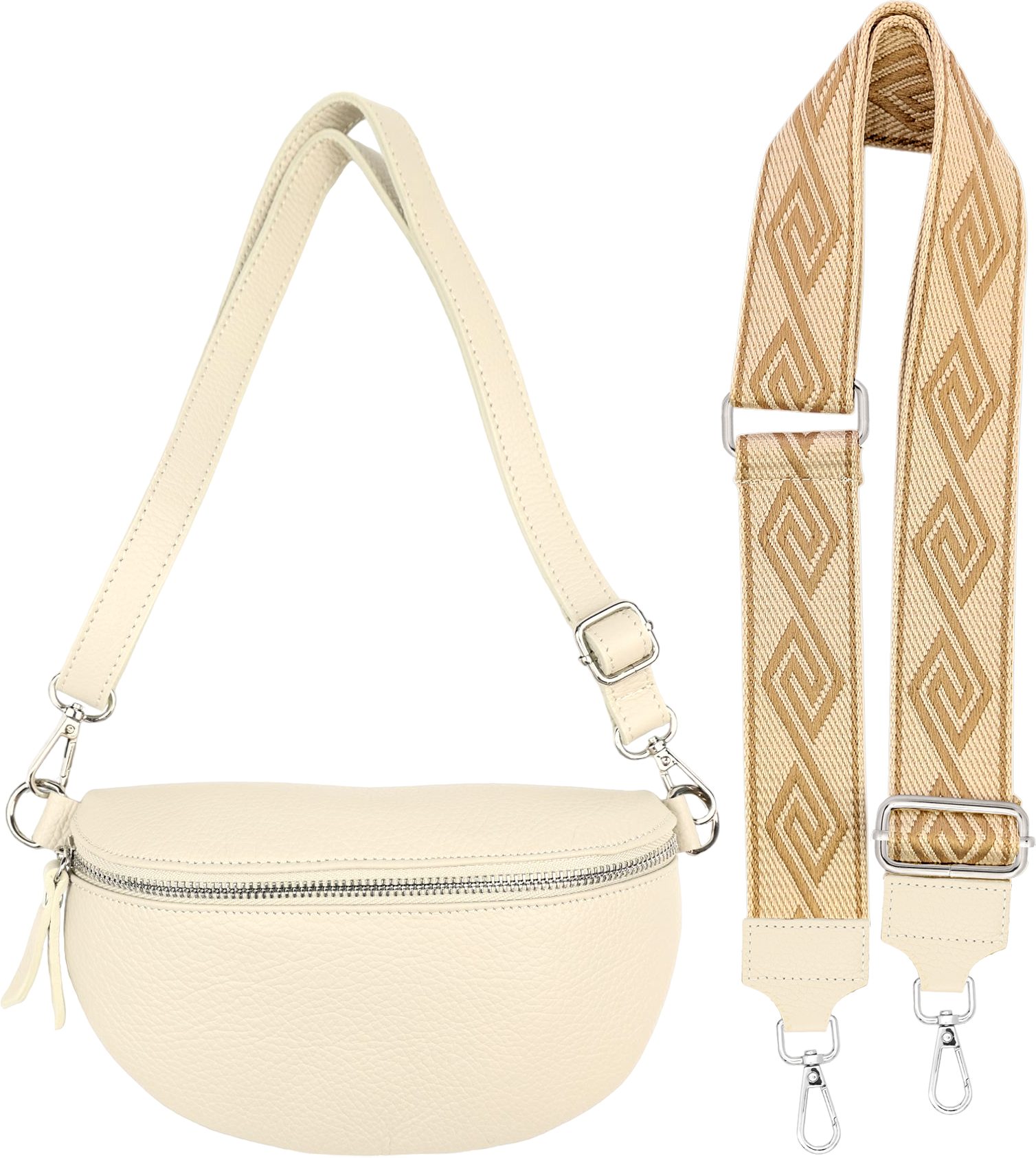 Hinweis Lieferumfang | 1 Bauchtasche mit einem verstellbaren Ledergurt. Farben und Größen können je nach Auswahl variieren. Optionaler gemusterter Schultergurt separat erhältlich. |