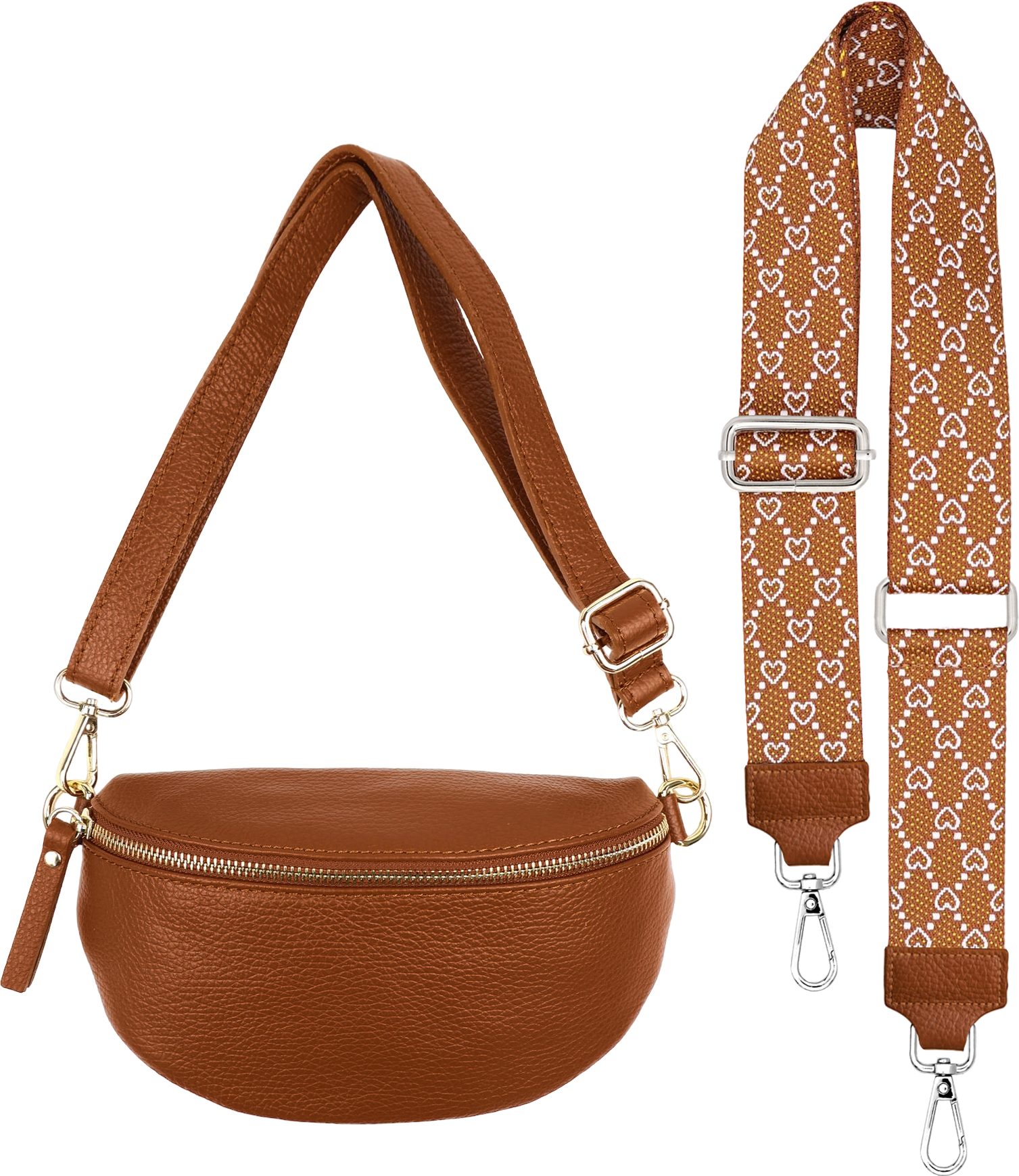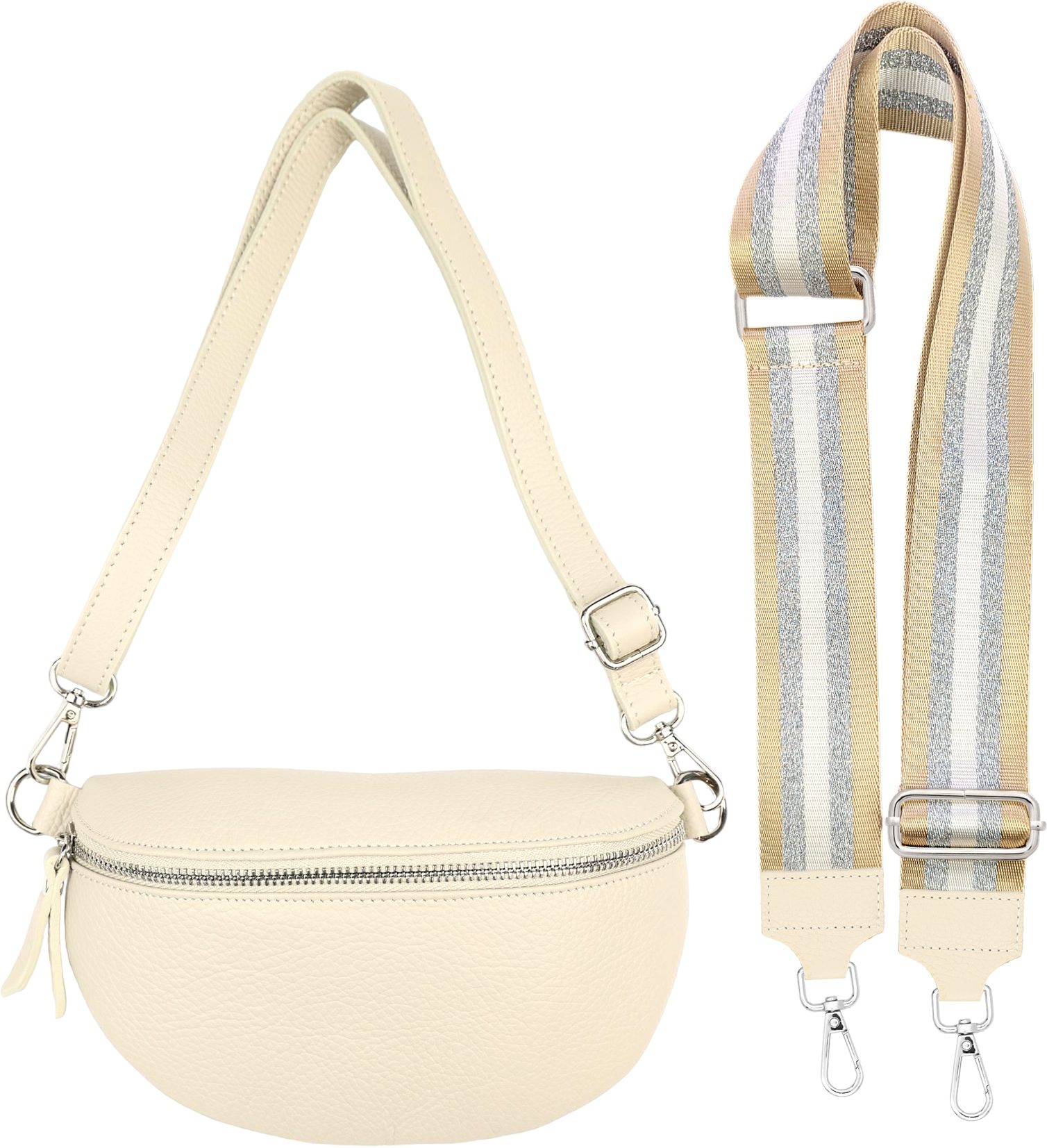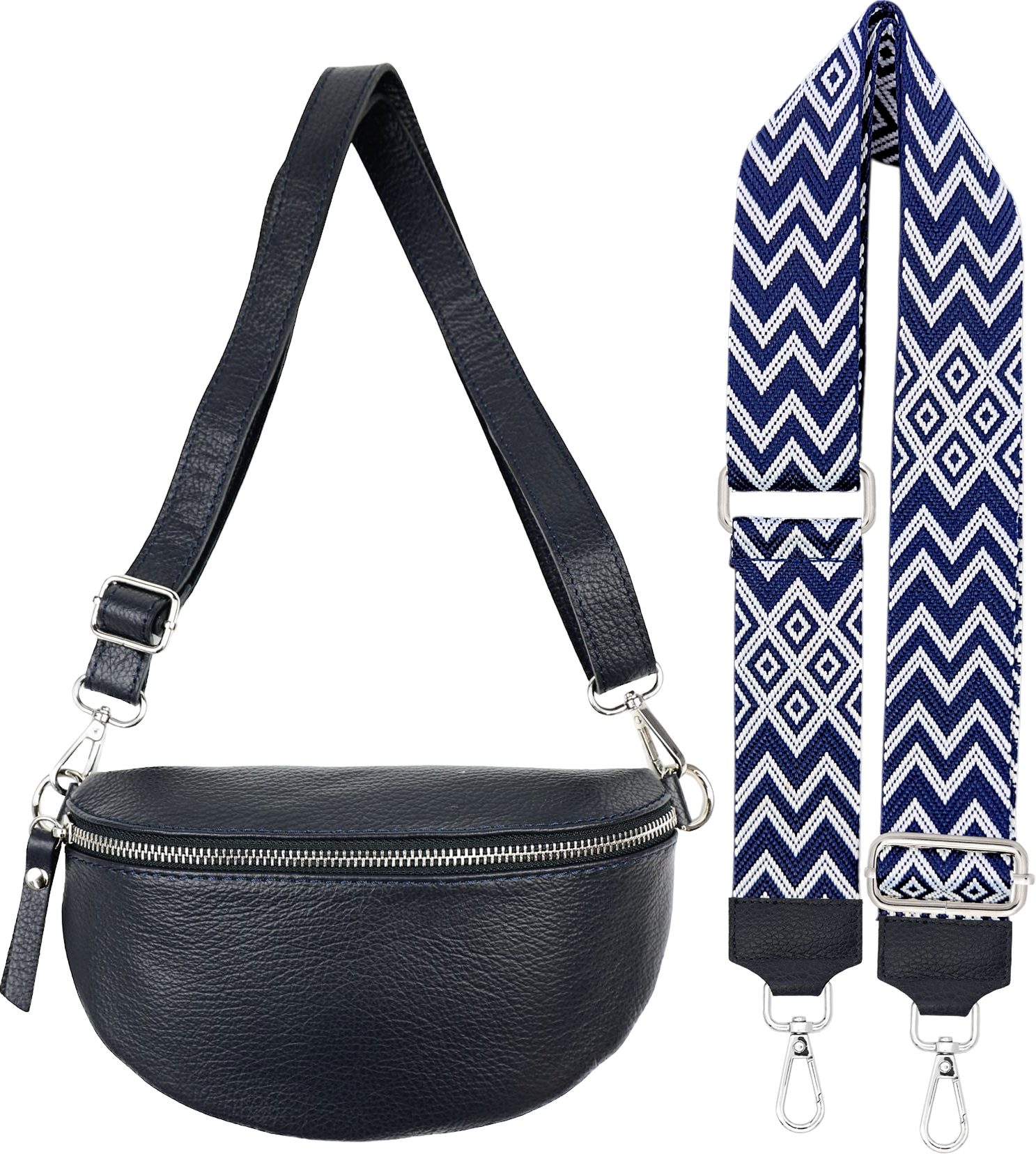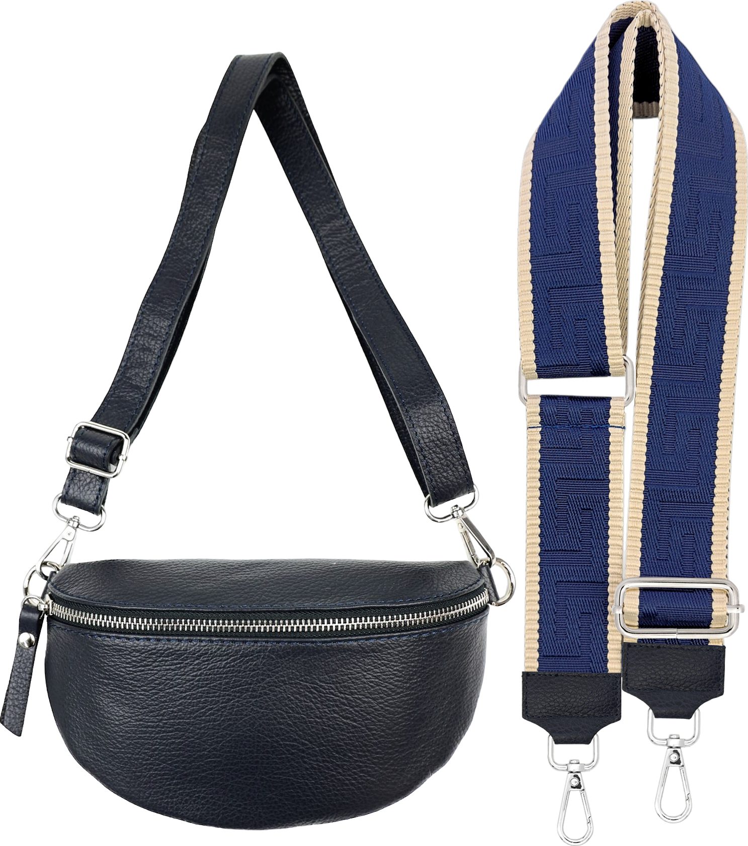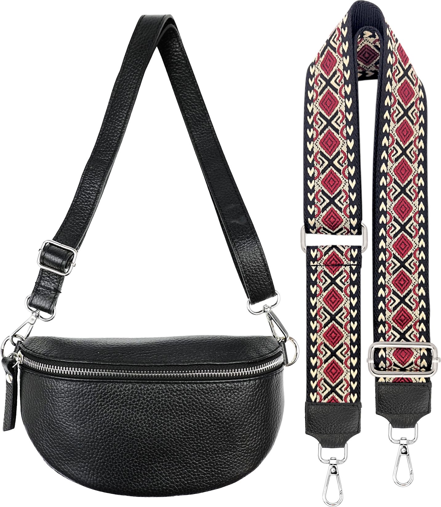 Hinweis Lieferumfang | 1 Bauchtasche mit einem verstellbaren Ledergurt. Farben und Größen können je nach Auswahl variieren. Optionaler gemusterter Schultergurt separat erhältlich. |