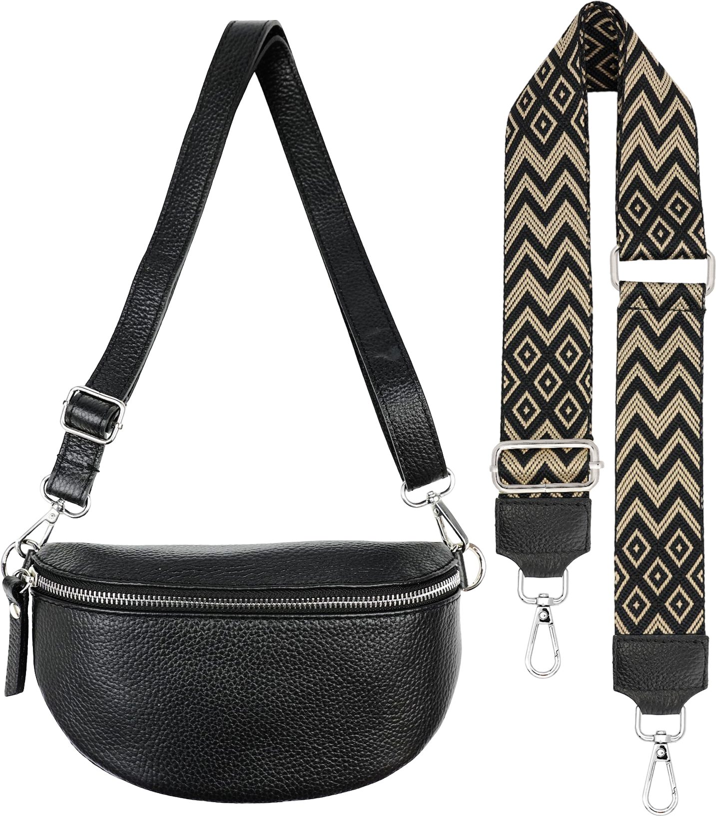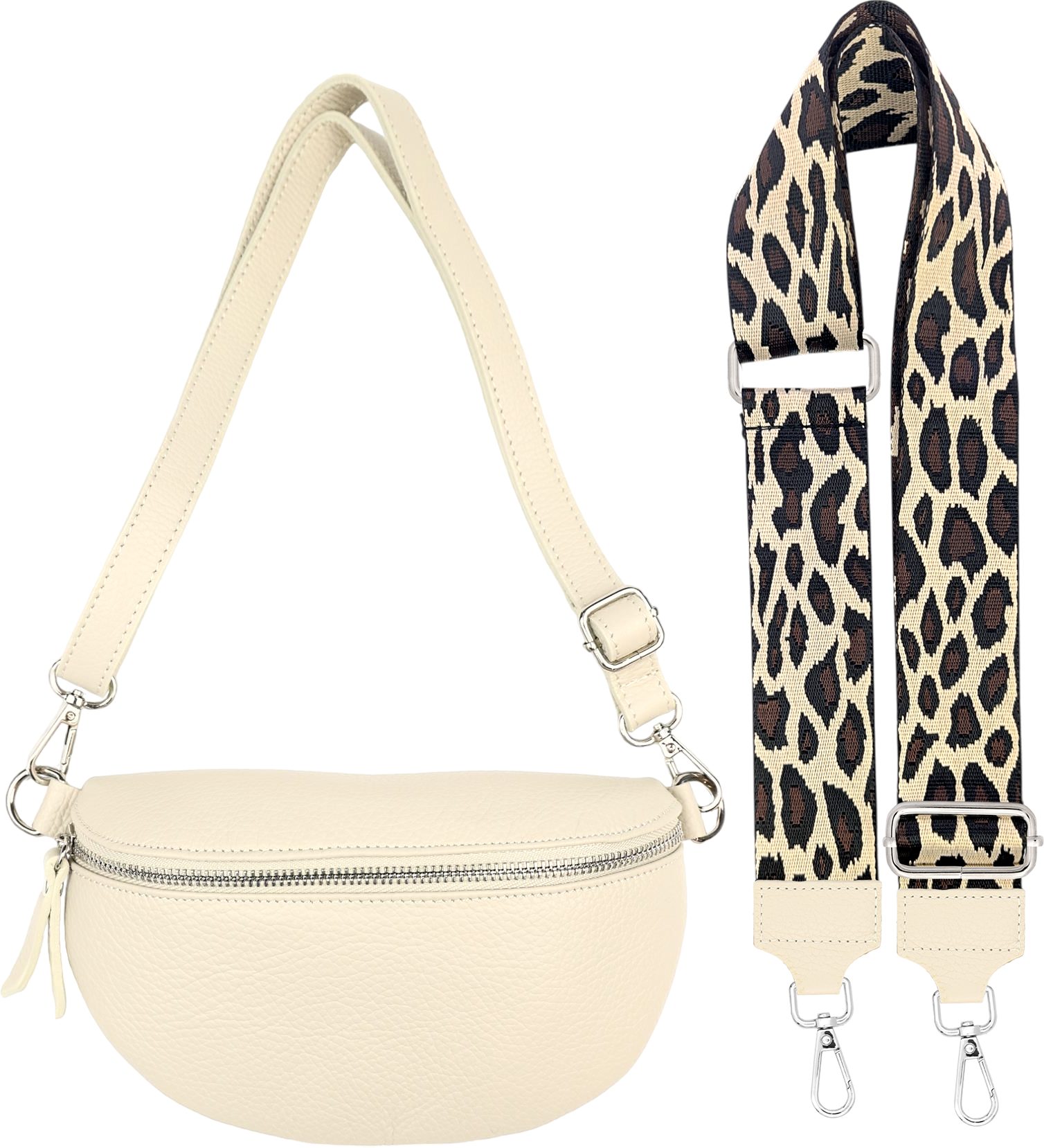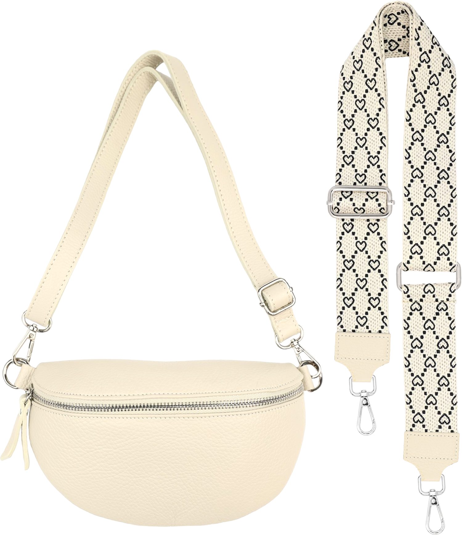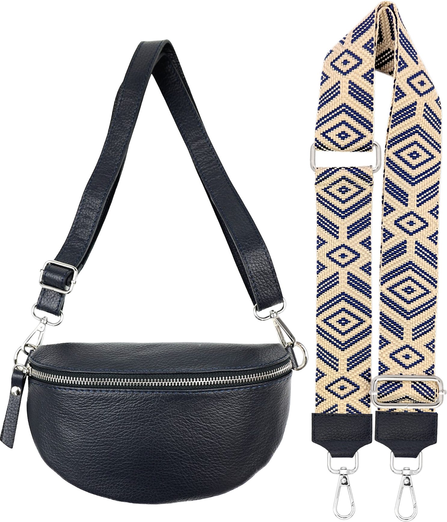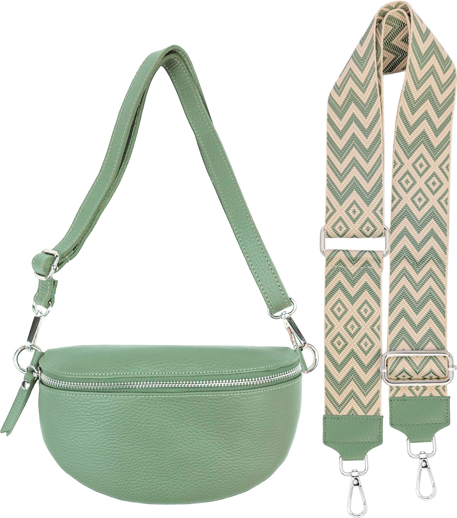 Hinweis Lieferumfang | 1 Bauchtasche mit einem verstellbaren Ledergurt. Farben und Größen können je nach Auswahl variieren. Optionaler gemusterter Schultergurt separat erhältlich. |