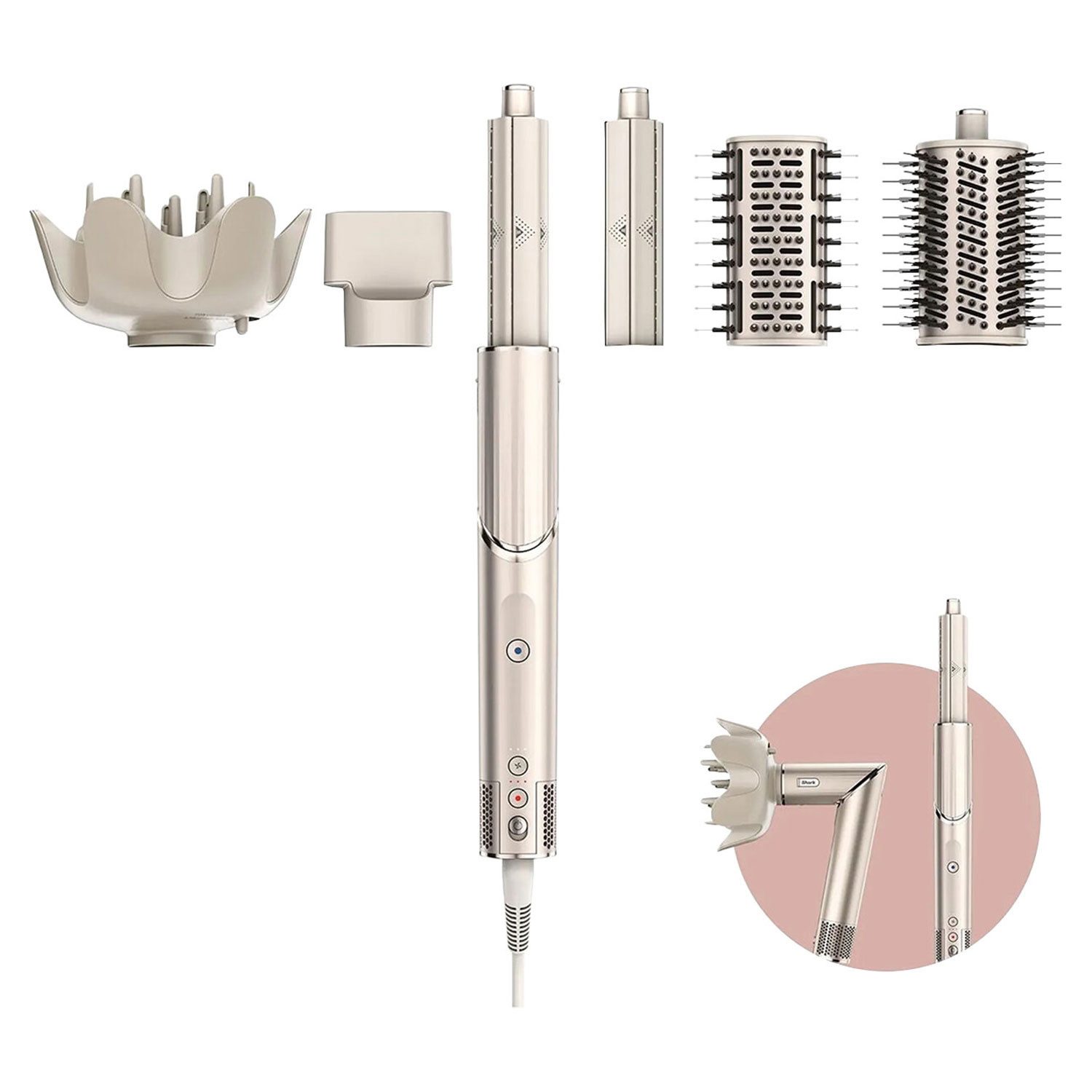 Der Shark FlexStyle 5-in-1 Luftstyler & Haartrockner vereint Styling und Trocknung in einem vielseitigen Gerät. Mit einer Leistung von 1400 W sorgt er für schnelles und effizientes Trocknen. Die fünf verschiedenen Aufsätze ermöglichen es, unterschiedlichste Frisuren zu kreieren – von glatten Looks bis hin zu voluminösen Locken. Dank der Hitzeschutztechnologie wird Ihr Haar beim Styling geschont, während die innovative Luftstromkontrolle präzise Ergebnisse liefert. Das elegante Design in edler Champagnerfarbe macht den FlexStyle nicht nur zu einem funktionalen, sondern auch zu einem stilvollen Accessoire in Ihrem Badezimmer. Er ist die perfekte Wahl für alle, die vielseitige Stylingmöglichkeiten und professionelle Ergebnisse zu Hause suchen.