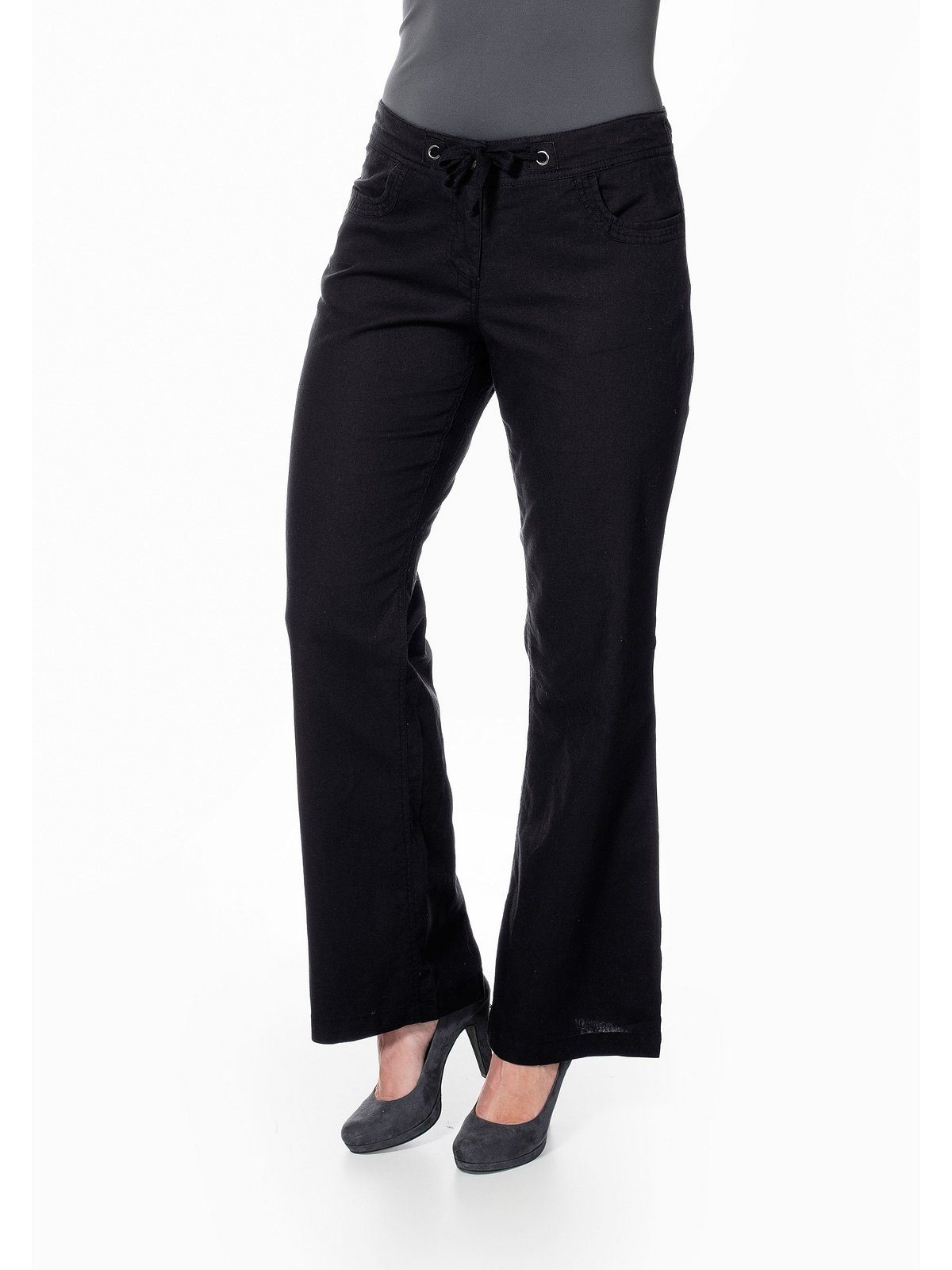 Normaleweise schwöre ich auf die L-Größen von sheego, da ich meistens Pobleme mit zu kurzen Hosenbeinen habe. Diese Hose ist auch lang, jedoch nicht ganz so lang, wie ich es üblicherweise von meiner sheego L-Göße kenne. Schade, 2-3 cm mehr wären nich schlecht gesesen. Habe sie dennoch behalten. Hätte mir noch Gütelschlaufen gewünscht, die hat die Hose leider nicht. Dafür hat sie hinten tatsächlich Taschen und nicht nur aufgesetzte Atrappen.
