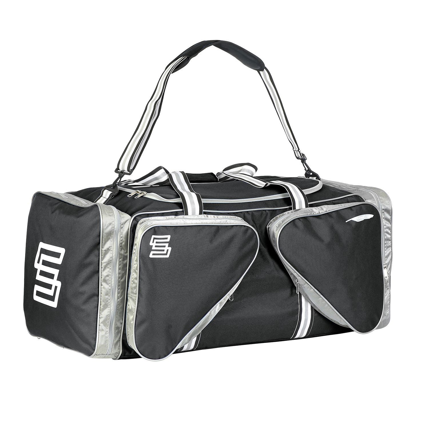 Ob Helm, Handschuhe, Schlittschuhe oder Pucks - in der Sherwood Tragetasche 9950 findet alles seinen Platz. Sie ist aus hochwertigem 600D Nylon gefertigt und verfügt über Reißverschlüsse mit praktischer U-Öffnung. So kann die Ausrüstung optimal ein- und ausgepackt werden, ohne lange suchen zu müssen. Die komfortablen und haltbaren Tragegurte machen den Transport der Ausrüstung zum Kinderspiel.