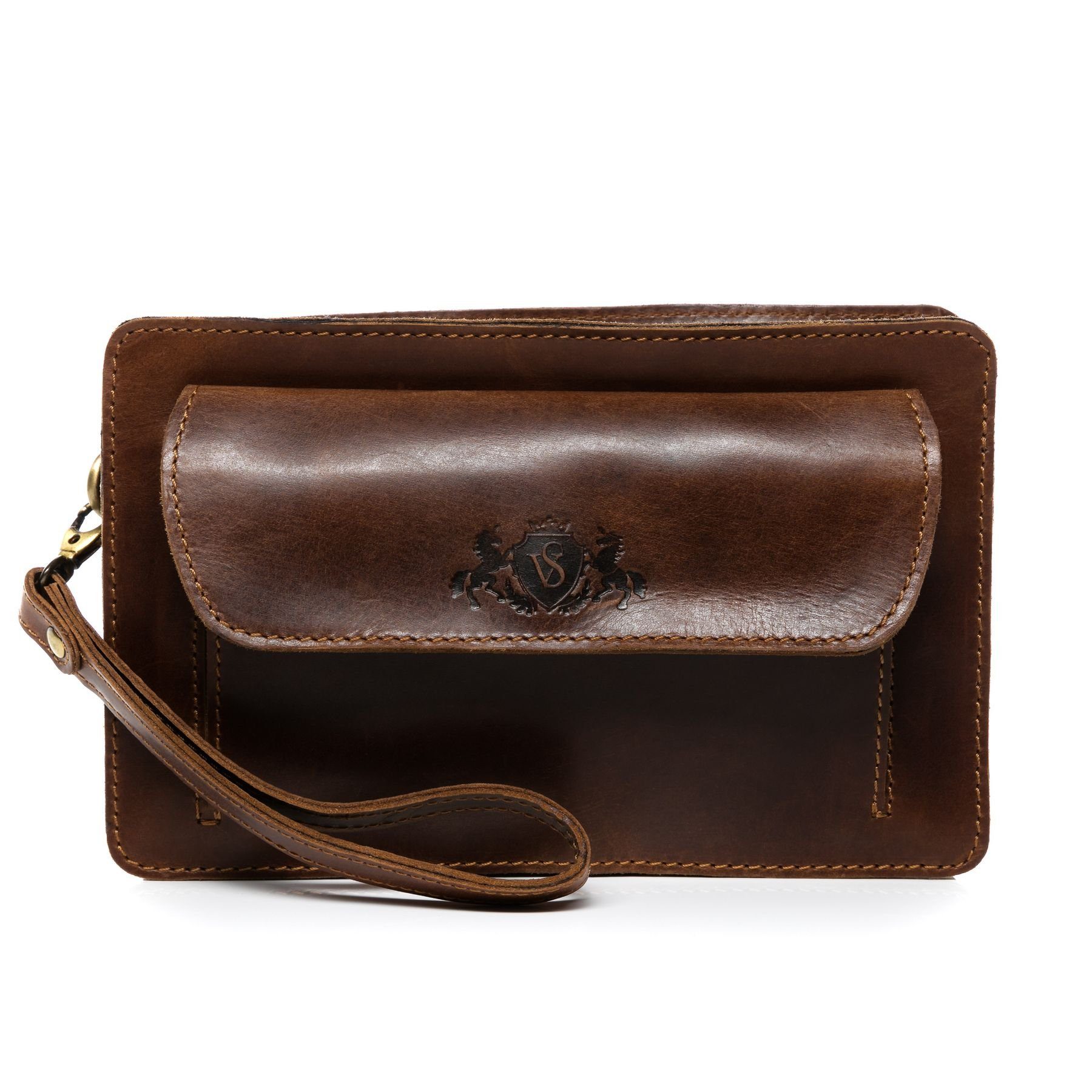 Henkeltasche echt Leder Herren, Handtaschenhalter braun-cognac