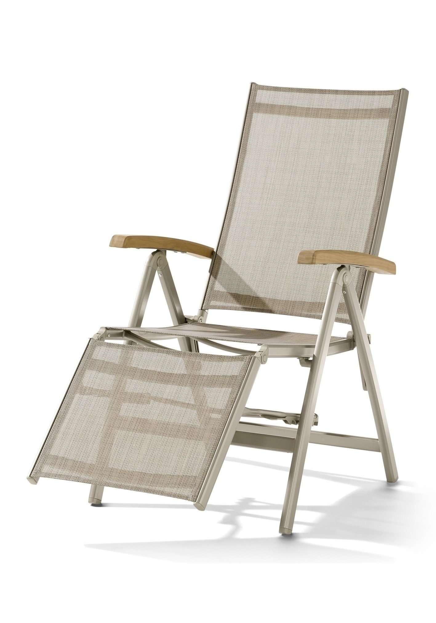 Der Cadiz Gartenstuhl ist ein vielseitiger Klappstuhl mit einzigartiger Funktionalität für den Garten- und Objektbereich. Seine großzügigen Abmessungen von 95 cm (Breite) x 62 cm (Tiefe) x 109 cm (Höhe) bieten optimalen Sitzkomfort. Das Gestell besteht aus robustem Aluminium in Champagnerfarbe, während der Bezug aus Kunstfasergewebe in eleganter Champagnerfarbe gefertigt ist. Die Armlehnen bestehen aus FSC-zertifiziertem Teakholz in natürlicher Farbe und verleihen dem Stuhl eine ansprechende Optik. Besonders herausragend sind die Funktionen des Cadiz Gartenstuhls: Die Rückenlehne und das Fußteil können jeweils unabhängig voneinander in 6 verschiedenen Positionen eingestellt werden, was eine individuelle Anpassung der Sitz- und Liegeposition ermöglicht. Der Cadiz Gartenstuhl wird im praktischen 'Klicksystem' geliefert und ist einfach zu montieren. Er ist ideal für den Einsatz im Garten und Outdoor-Bereich geeignet, da er witterungsbeständig und UV-beständig ist.