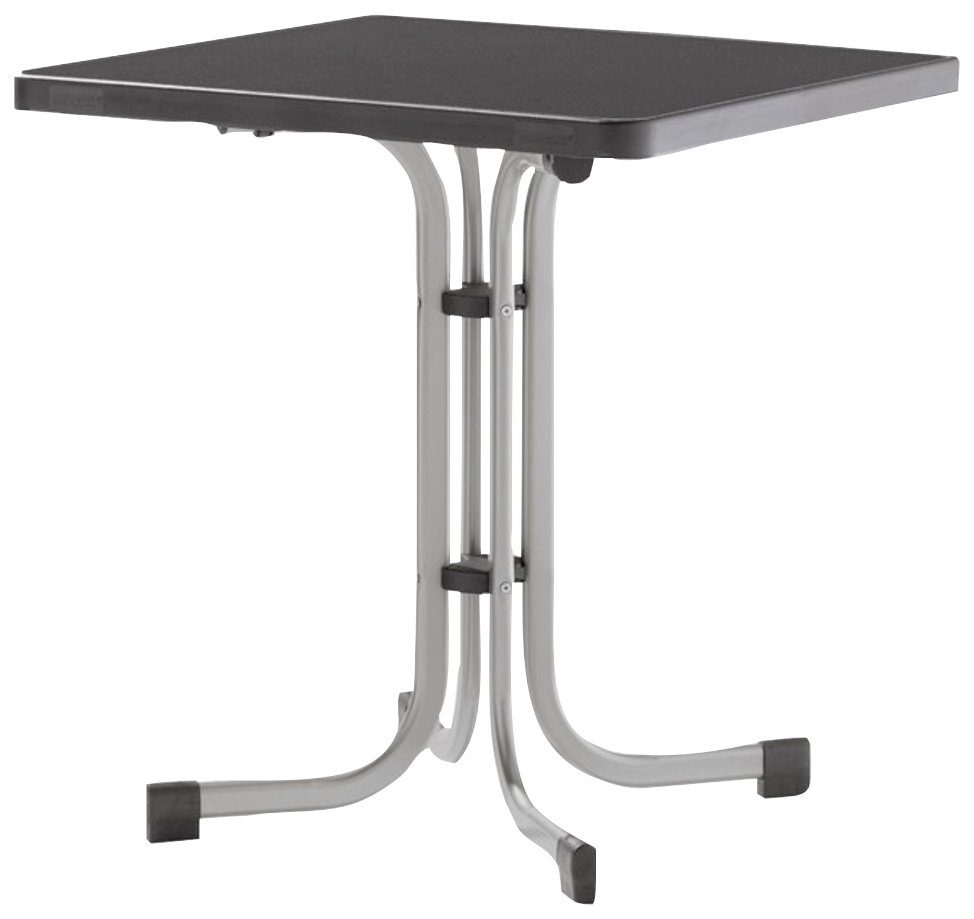 Sehr schöner Gartentisch, der durch seine vier Füße auch auf Rasen sehr stabil steht. Einfach klappbar und somit auch raumsparend zu verstauen.