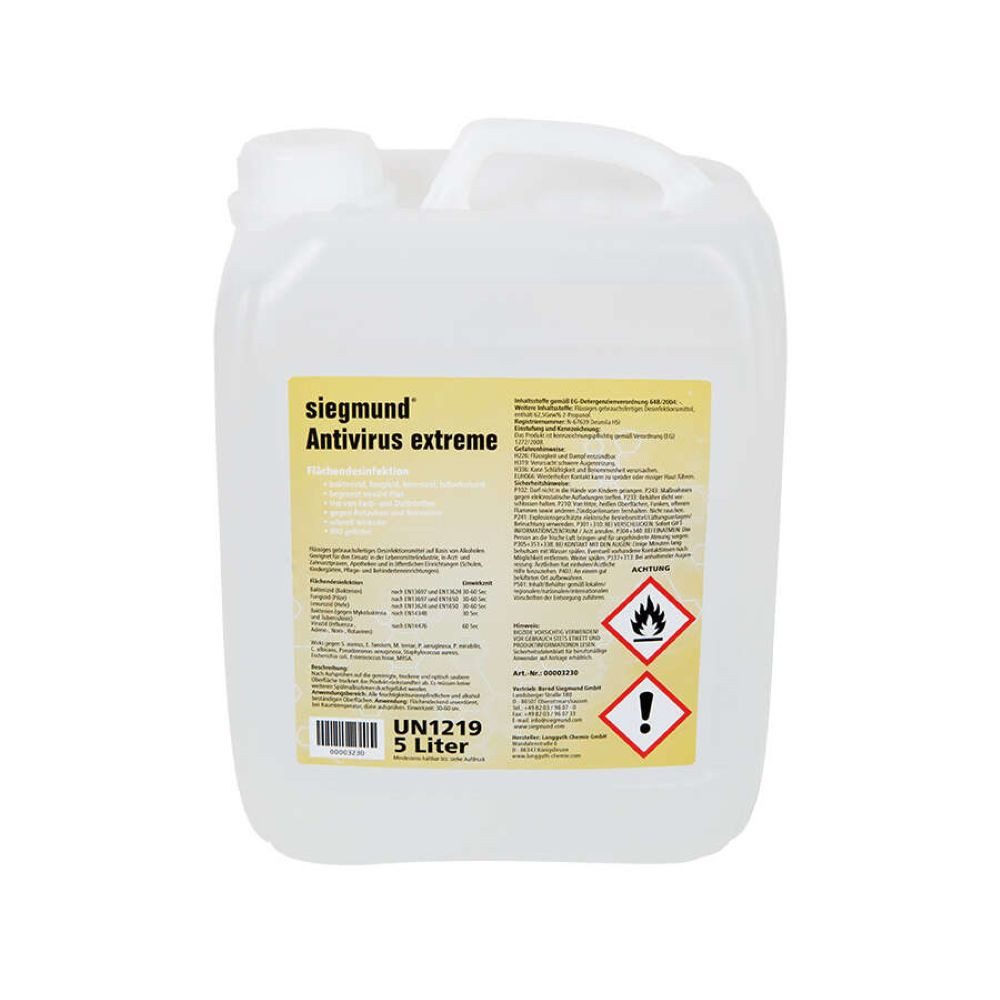 Flüssiges gebrauchsfertiges Desinfektionsmittel; enthält 63 Gew% 2-Propanol.