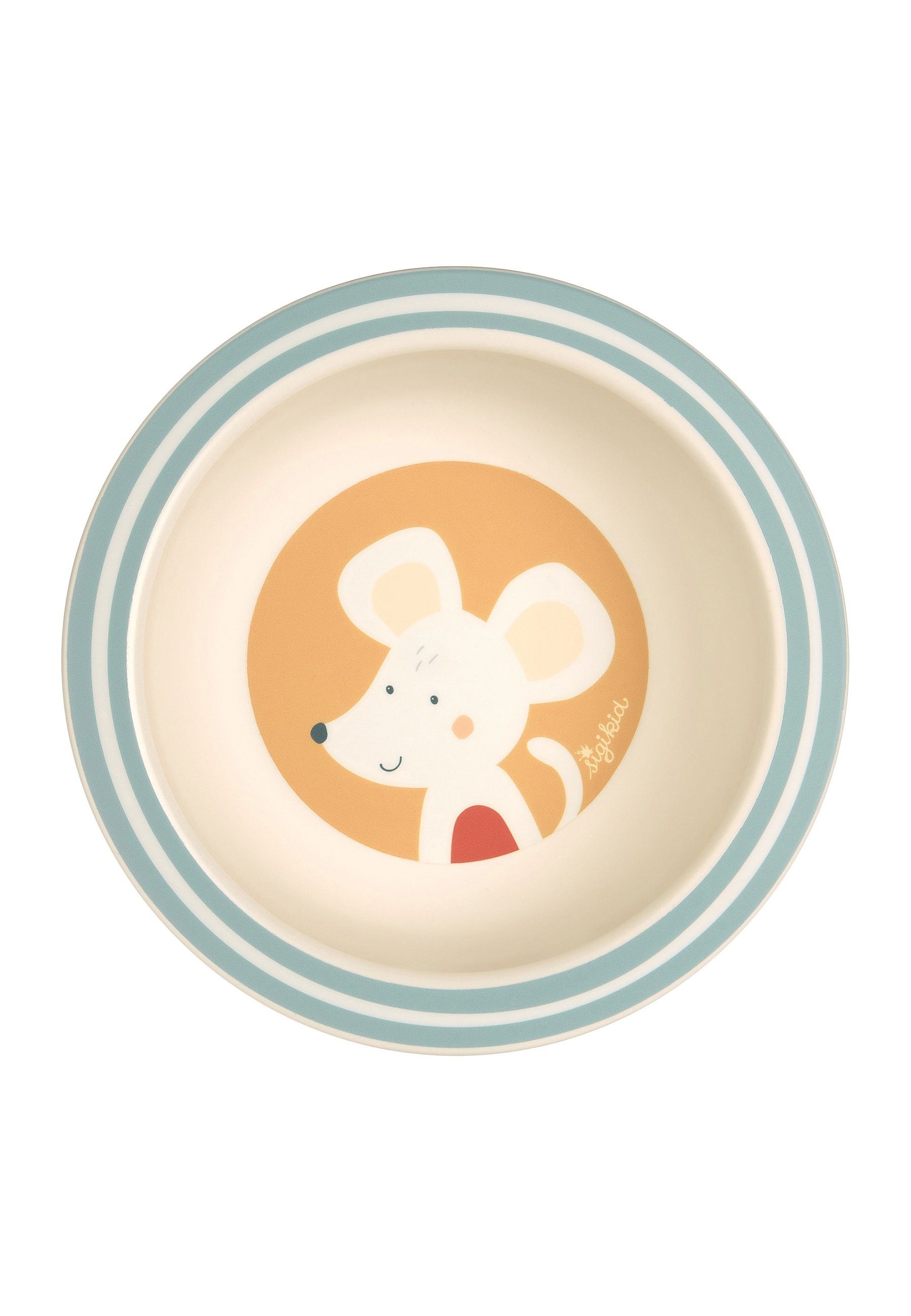Die Schüssel mit Maus-Dekor in ansprechenden Farben: Goldgelb und Blau wird für Kinder von 2 bis 8 Jahren empfohlen. Mit einem Durchmesser von 15,5 cm ist sie gut geeignet für das Müsli am Morgen, eine Suppe am Mittag, einen Snack am Nachmittag oder den Brei am Abend. Der Gummiring am Boden des Schälchens macht das Gefäß rutschfest und sorgt somit für guten Halt auf dem Tisch – perfekt für selbständige Mahlzeiten kleiner Kinder. Zu der Geschirr-Serie „4 Freunde“ gehören ebenso Tassen, Teller und Besteck im passenden Design. Die hübsche Kinderschüssel ist praktisch, sicher und langlebig. Sie bringt Farbe auf den Tisch und sorgt für Spaß beim Essen. Sie besteht zu 100% aus rPET. Dieses Material wird direkt aus Kunststoffen/PET recycelt, welche in der Industrie bei der Produktion anfallen. So möchten wir qualitativ hochwertiges Recycling und Kreislaufwirtschaft fördern. Das Material ist sehr robust, aber nicht komplett unzerbrechlich. Die Tasse ist für die Reinigung in der Spülmaschine und für die Verwendung in der Mikrowelle geeignet – bitte hierzu unsere Gebrauchsanleitung beachten. Der Silikonring im Boden kann zur gründlichen Reinigung entnommen werden. Das Geschirr ist selbstverständlich frei von Weichmachern und nach dem Lebensmittel- und Bedarfsgegenständegesetz (kurz: LFGB) und nach DIN EN 14350 geprüft. sigikid legt besonderen Wert auf ausgesuchte Materialien und durchdachtes Design. Um die Sicherheit unserer Produkte zu gewährleisten, werden von akkreditierten Prüfinstituten regelmäßig Prüfungen gemäß dem aktuell geltenden (europäischen) Recht durchgeführt. Die Marke sigikid steht für kindgerechte Produkte, die Emotionen wecken und Eltern und Kindern gleichermaßen ein gutes Gefühl vermitteln. Seit über 55 Jahren folgt sigikid einem klaren Leitsatz: FIRST CLASS FOR KIDS! Wir machen die Welt von Familien von Anfang an kuscheliger und bunter.