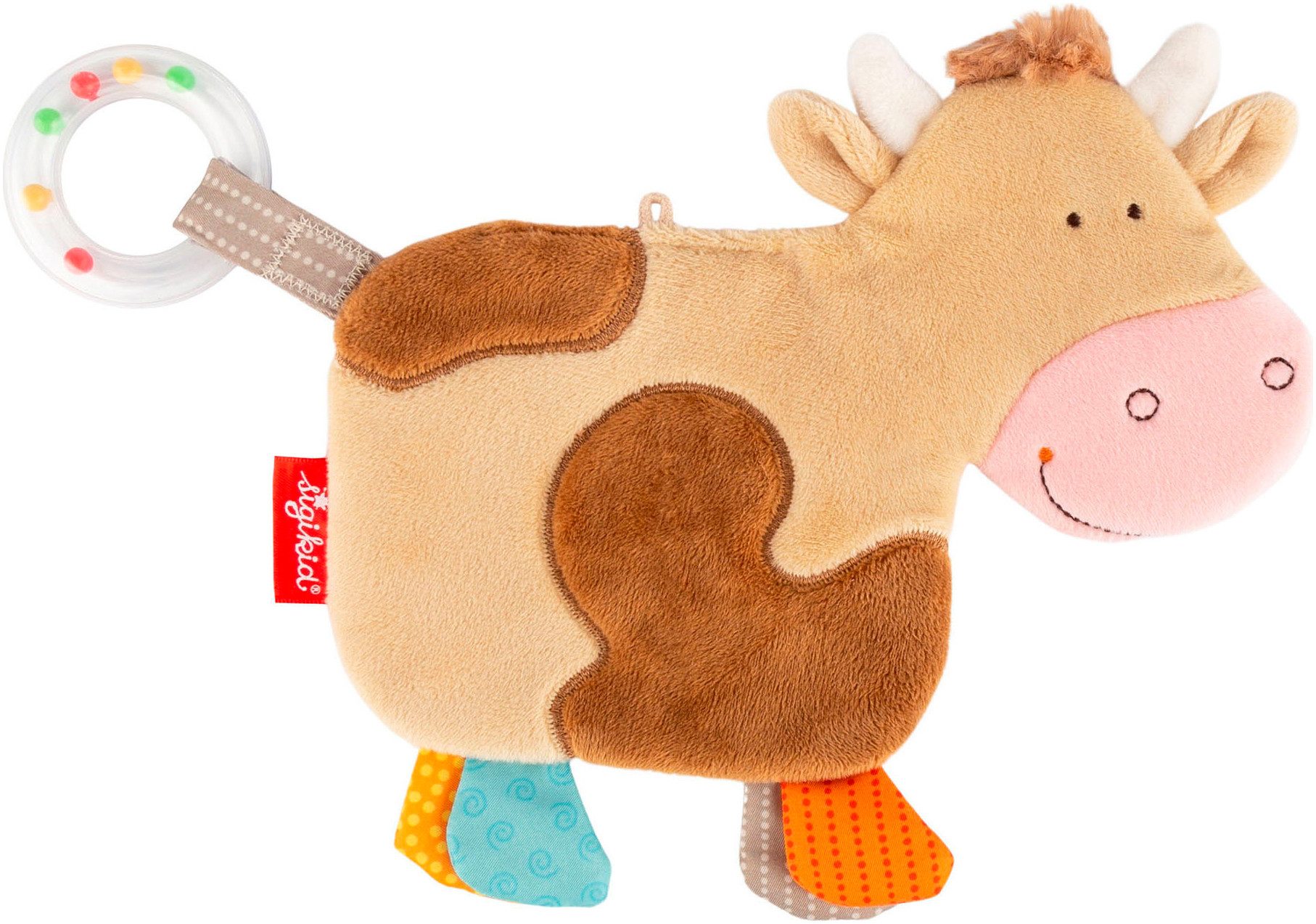 Farben sind für Kinder wie die Sonne für die Welt. Das Neugeborene hat noch kein Farbempfinden und erkennt nur Hell-Dunkel-Kontraste. Dennoch entwickelt sich schon in den ersten Tagen der Farbsinn und Kinder beginnen von da an von unterschiedlichen Farben begeistert zu sein. Dabei kommen den Primärfarben wichtige Rollen zu, denn sie unterscheiden sich deutlich von allen Nicht-Farben. Auch wir bekennen uns zur kindlichen Farbe. Unsere Produkte sind kinderbunt und entsprechen damit dem Farbempfinden in der kindlichen Entwicklung. Spielen, Entdecken, Kuscheln und Träumen - das Kuh-Knistertuch macht Babys im Alltag rundum glücklich. Die softe Stoffmix und die spannenden Geräusche (Rasseln und Knistern) machen es schnell zum liebsten Begleiter durch dick und dünn. Empfohlen wird das Knistertuch für Kinder von 0 bis 36 Monate. Sollte es beim Einsatz schmutzig werden, so kann man es in der Waschmaschine bei 30 °C waschen. sigikid legt besonderen Wert auf ausgesuchte Materialien und durchdachtes Design. Um die Sicherheit unserer Produkte zu gewährleisten, werden von akkreditierten Prüfinstituten regelmäßig Prüfungen gemäß dem aktuell geltenden (europäischen) Recht durchgeführt. Die Marke sigikid steht für kuschelige Produkte, die Emotionen wecken und Eltern und Kindern gleichermaßen ein gutes Gefühl vermitteln. Seit über 55 Jahren folgt sigikid einem klaren Leitsatz: FIRST CLASS FOR KIDS! Wir machen die Welt für Familien von Anfang an kuscheliger und bunter.