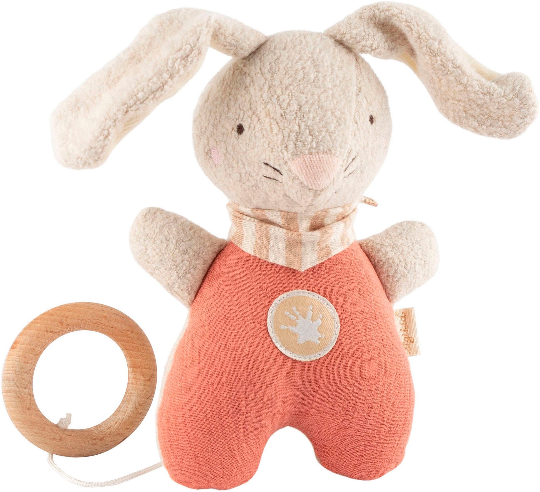 Warnhinweise | ACHTUNG! Das Spielwerk darf nicht in die Hände von Babys und Kleinkindern gelangen und muss nach dem Waschen wieder in die Spieluhr hinein gelegt werden! Bedienungsanleitung: Sicherheits-Reißverschluss mit aufgebogener Büroklammer öffnen durch Anheben des Riegels. Sicherheits- Reißverschluss verschließen durch Niederdrücken des Riegels. |