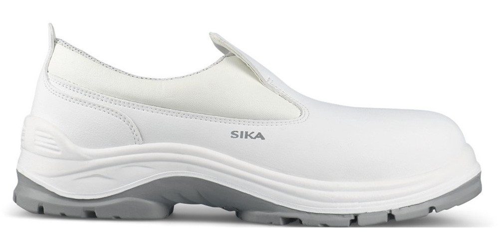 Leichter und robuster Slipper mit breiter Passform. Aus wasserabweisender Mikrofaser, durch die sich die Schuhe vor allem für feuchte Umgebungen eignet. Rutschhemmende und stoßabsorbierende Laufsohle aus PU/PU. Mit atmungsaktiver Einlegesohle aus strapazierfähigem Material. Metallfrei und mit Komposit-Zehenschutzkappe. Erhältlich in schwarz und weiß