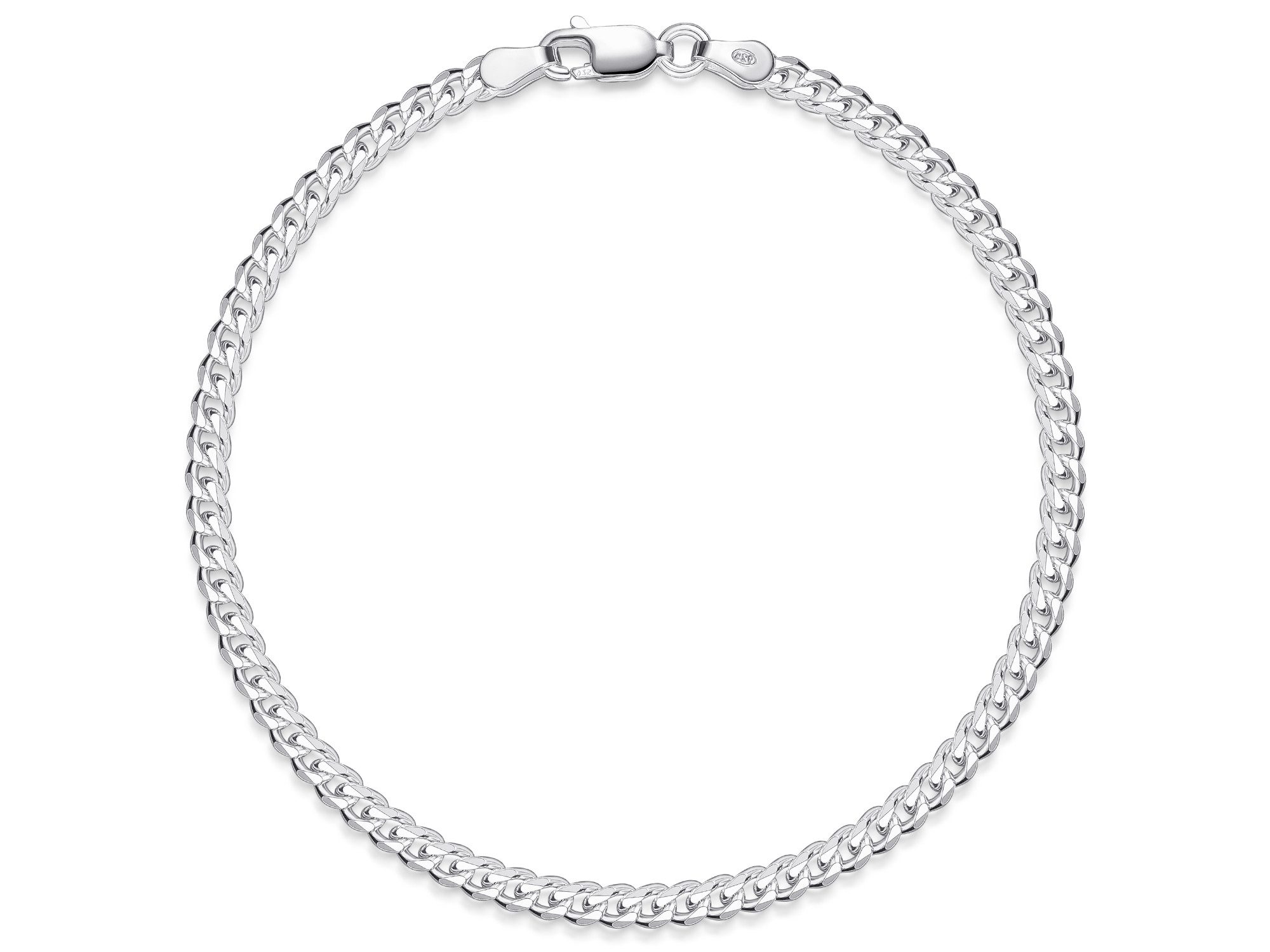 Klassisches Panzerkette Armband mit einer Breite von 3,5mm, hergestellt aus massiv 925 Silber mit hochglanzpolierter Oberfläche und diamantierten Kanten. Mit einer Stärke von 1,7mm ist das Armband stabil und langlebig. Eine hochwertige Verarbeitung sowie ein stabiler Karabiner sorgen für einen angenehmen Tragekomfort.