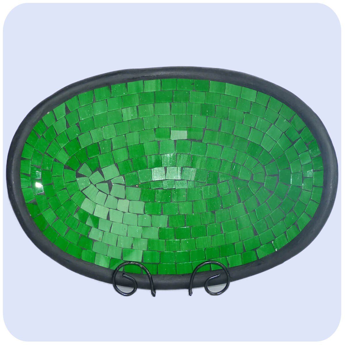 Unsere Mosaikschale Tonschale Glasschale stammt aus Indonesien die Dekoschale Mosaik Kunsthandwerk Glassteine Deko oval ist handgefertigt.