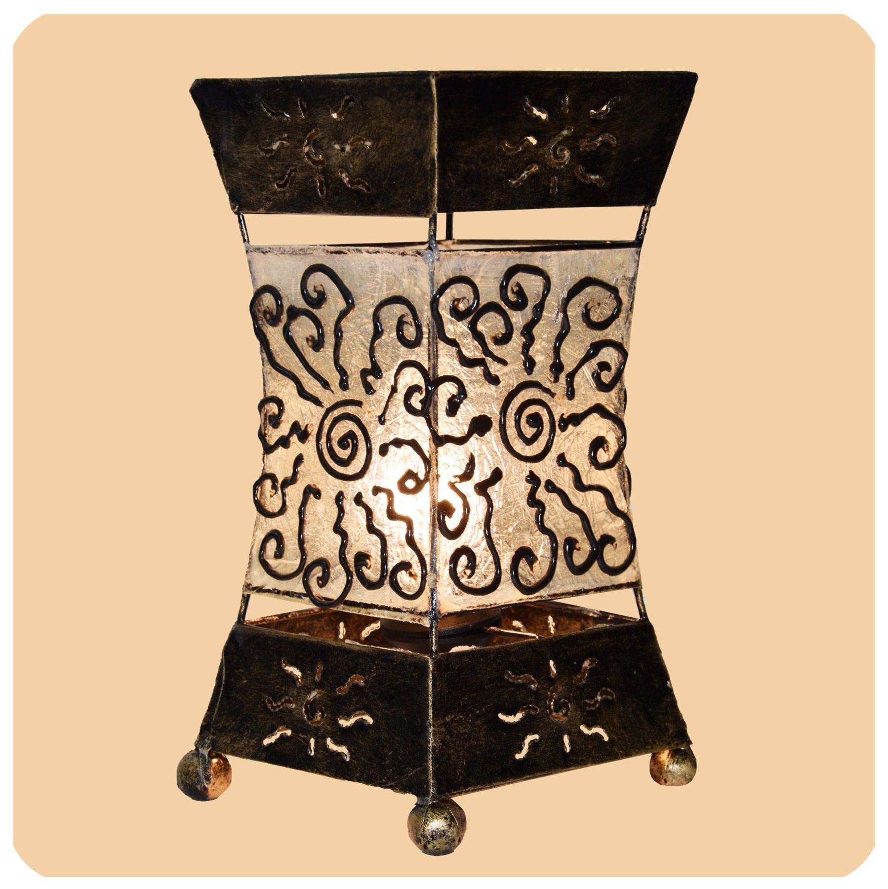 Die Lampe verzaubert uns durch die interessante Kombination der verschiedenen Materialien und verleiht jedem Raum ein exotisches Flair.