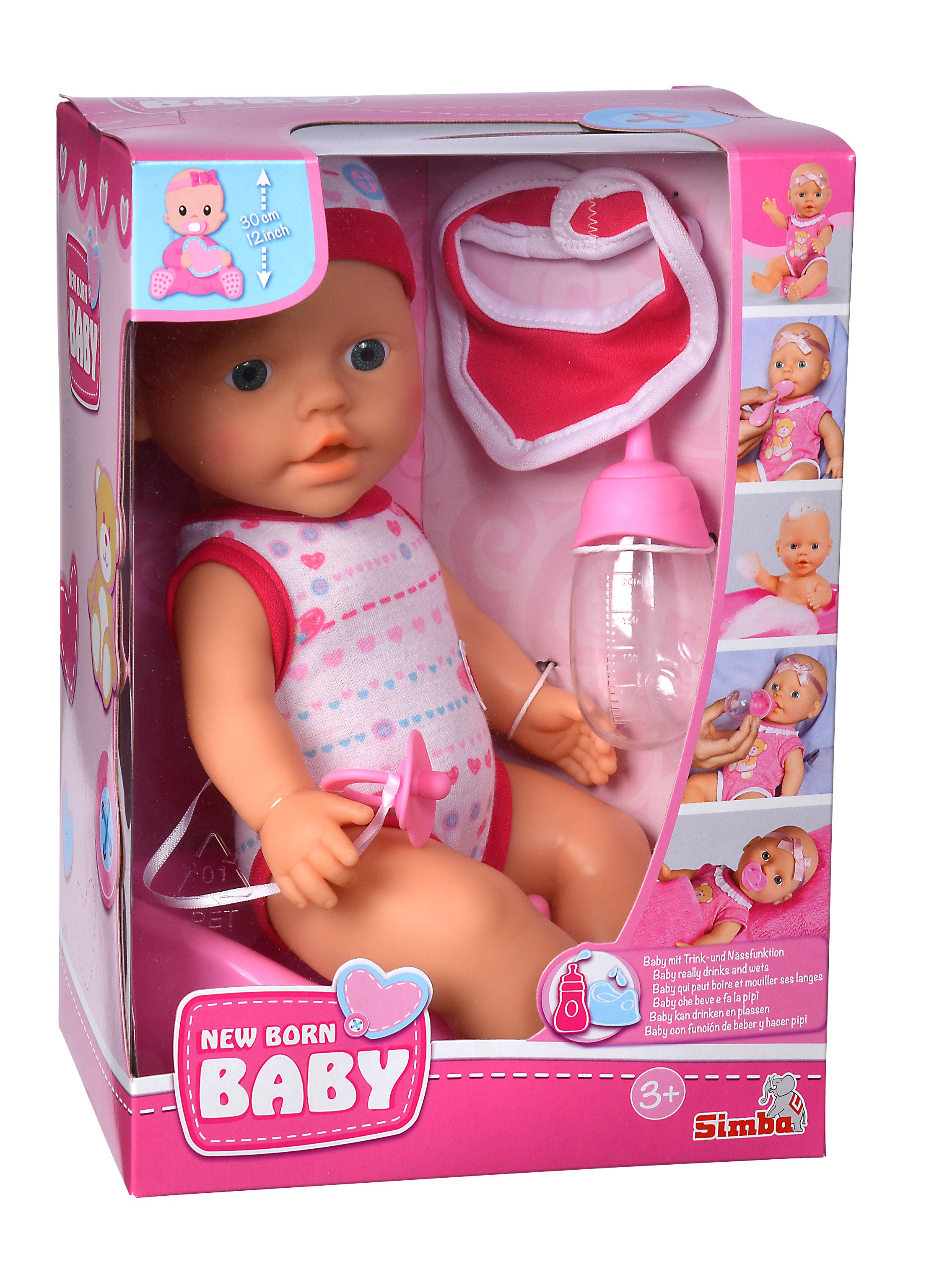 Simba Dickie Anziehpuppe Puppe New Baby Born Trink und Nässfunktion 30cm