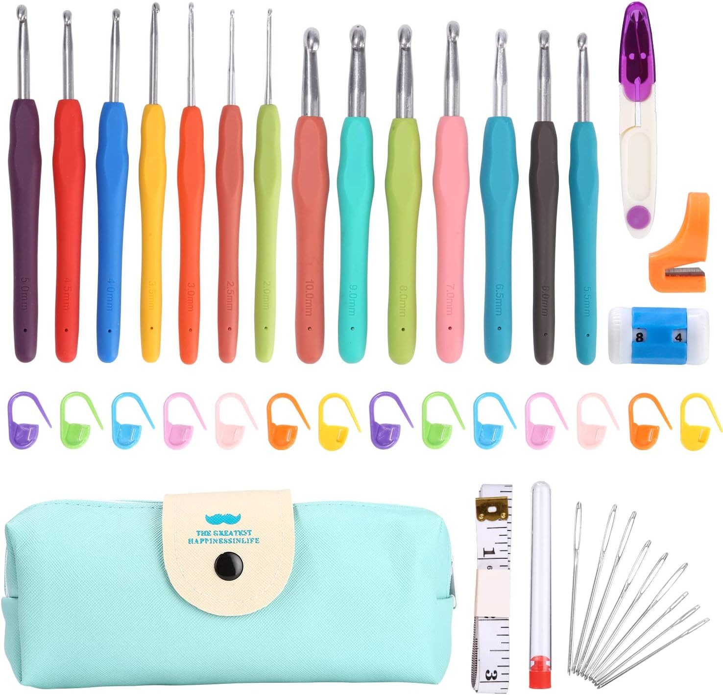 Enthält 14 Häkelnadeln in verschiedenen Farben und Standardgrößen (2,0 mm, 2,5 mm, 3,0 mm, 3,5 mm, 4,0 mm, 4,5 mm, 5,0 mm, 5,5 mm, 6,0 mm, 6,5 mm, 7,0 mm, 8,0 mm, 9,0 mm, 10,00 mm). 18 Stricknadelmarkierer, 9 stumpfe Handnähnadeln mit großem Öhr, 1 Maßband, 1 Schere, 1 Häkelnadeltasche, 1 Zählwerk, 1 Fingermesser, 1 Aufbewahrungstasche. 1 Maßband, 1 Schere, 1 Etui für Häkelnadeln, 1 Zähler, 1 Ringschneider, 1 Aufbewahrungstasche. Erfüllt alle Ihre Häkelbedürfnisse, ideal für Anfänger und professionelle Häkler.
