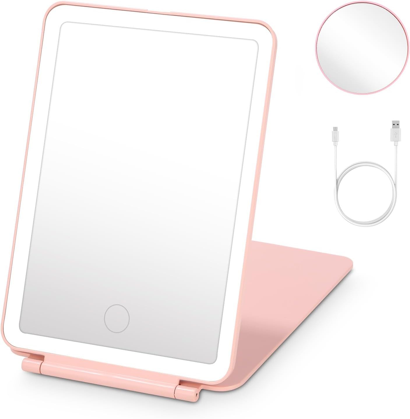 [10-facher Vergrößerungsspiegel]: Der kleine 10-fach vergrößernde Spiegel ermöglicht präzise Detail- und Nahaufnahmen. Vom Eyeliner-Auftragen bis zum Augenbrauenzupfen – mit diesem kleinen Vergrößerungsspiegel entgeht Ihnen kein Detail. Es ist, als hätten Sie die Werkzeuge eines professionellen Make-up-Artists in der Hand. Hinweis: 10-fach vergrößernder Spiegel ohne Beleuchtung. [Mehrzweck]: Dieser klappbare Kosmetikspiegel mit Beleuchtung eignet sich nicht nur hervorragend zum Schminken, sondern auch für die Hautpflege, Körperpflege und andere Schönheitsanwendungen. Dank seiner kompakten Розмір und des verstellbaren Ständers ist der Schreibtisch-Kosmetikspiegel vielseitig einsetzbar – egal ob auf Reisen, zu Hause oder im Büro. Das stilvolle Design des beleuchteten Schminkspiegels macht ihn zum idealen Geschenk für Frauen und Mädchen.