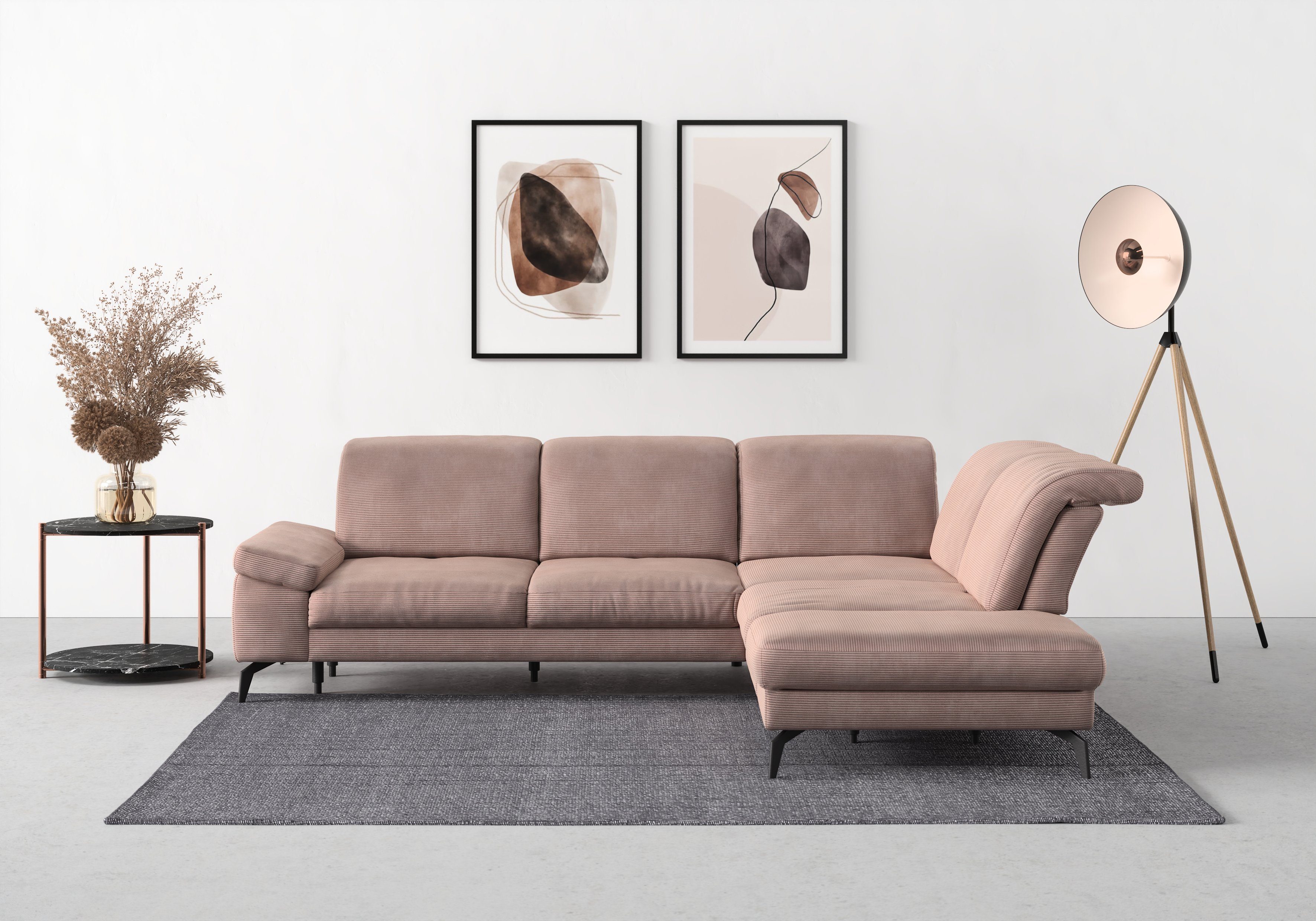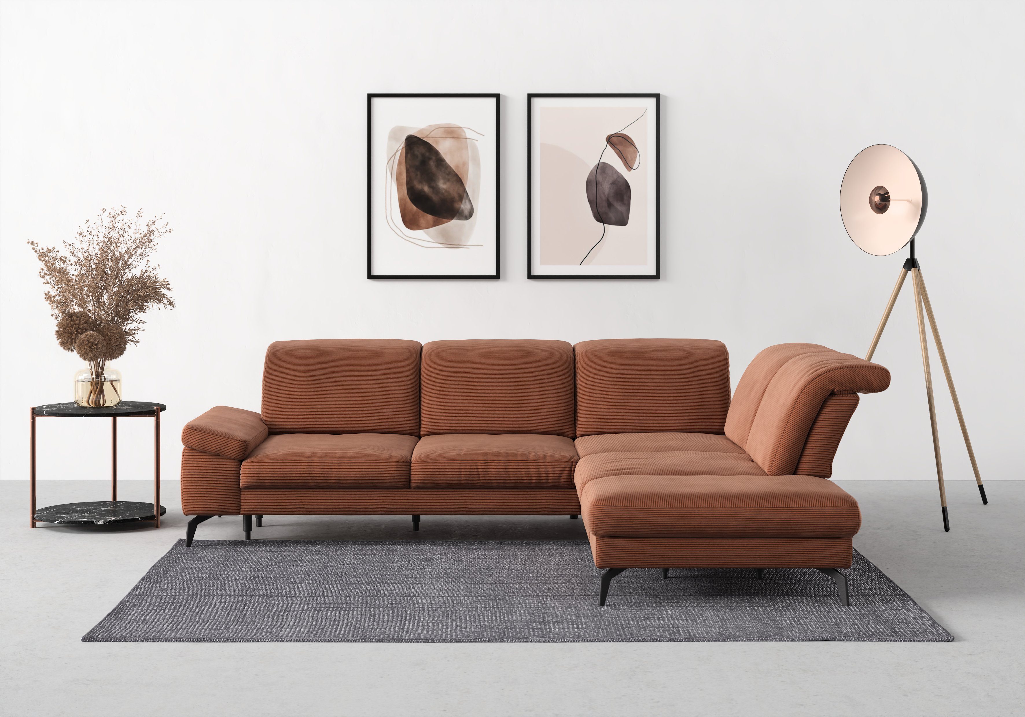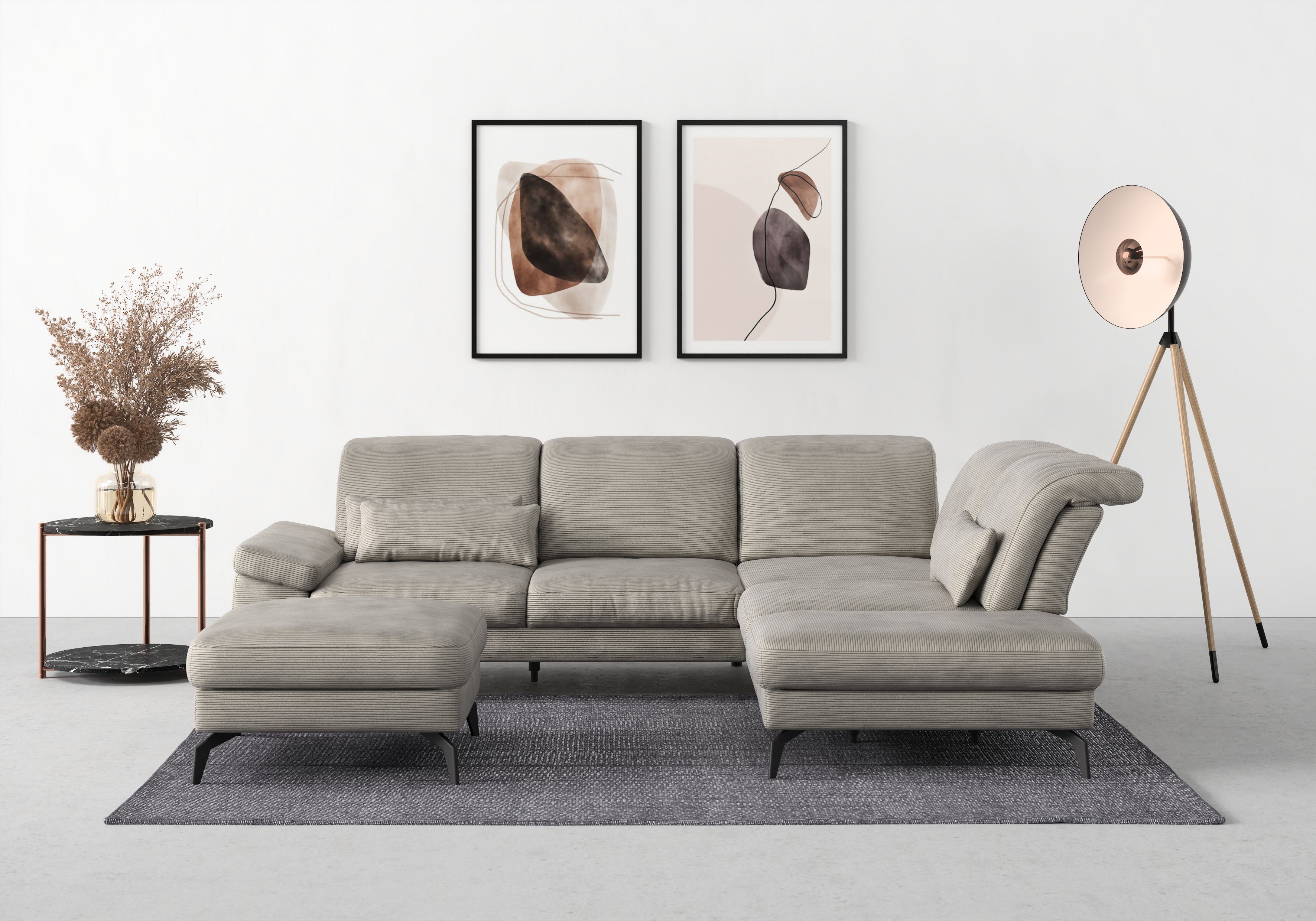 Eine dauerhaft elastische und komfortable Sitzfläche — das bekommst du bei diesem Ecksofa »Cabana L-Form« von sit&more, das mit einer hochwertigen Wellenunterfederung ausgestattet ist. Beim Ecksofa befindet sich die Ottomane, von vorne betrachtet, auf der rechten Seite. Die maximale Belastbarkeit pro Sitzplatz liegt bei einem Gewicht von 110 Kilogramm. Die schwarzen Füße aus Metall sind korrosionsbeständig und besonders langlebig. Aus Liebe zum Detail wurde dieses Modell von Hand angefertigt.