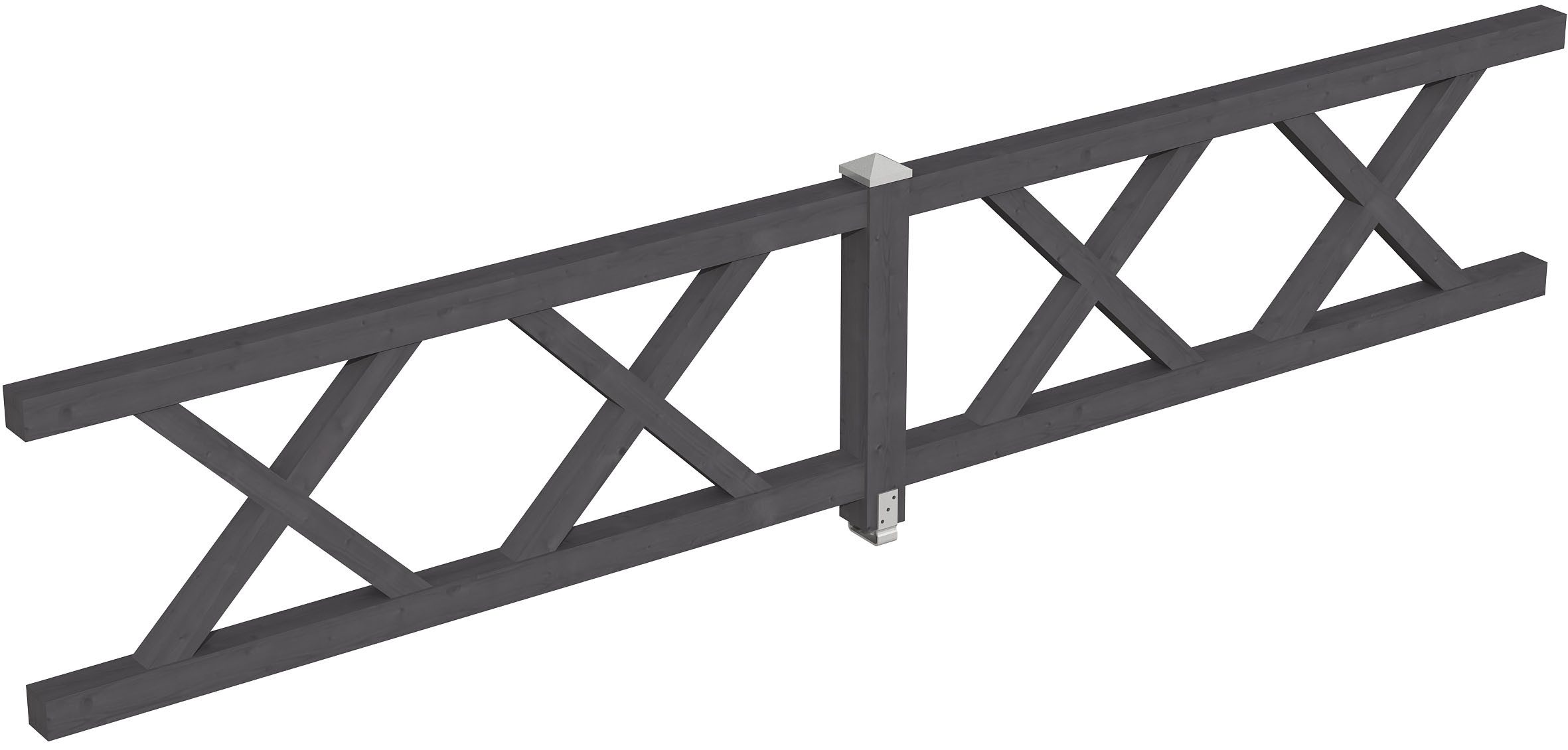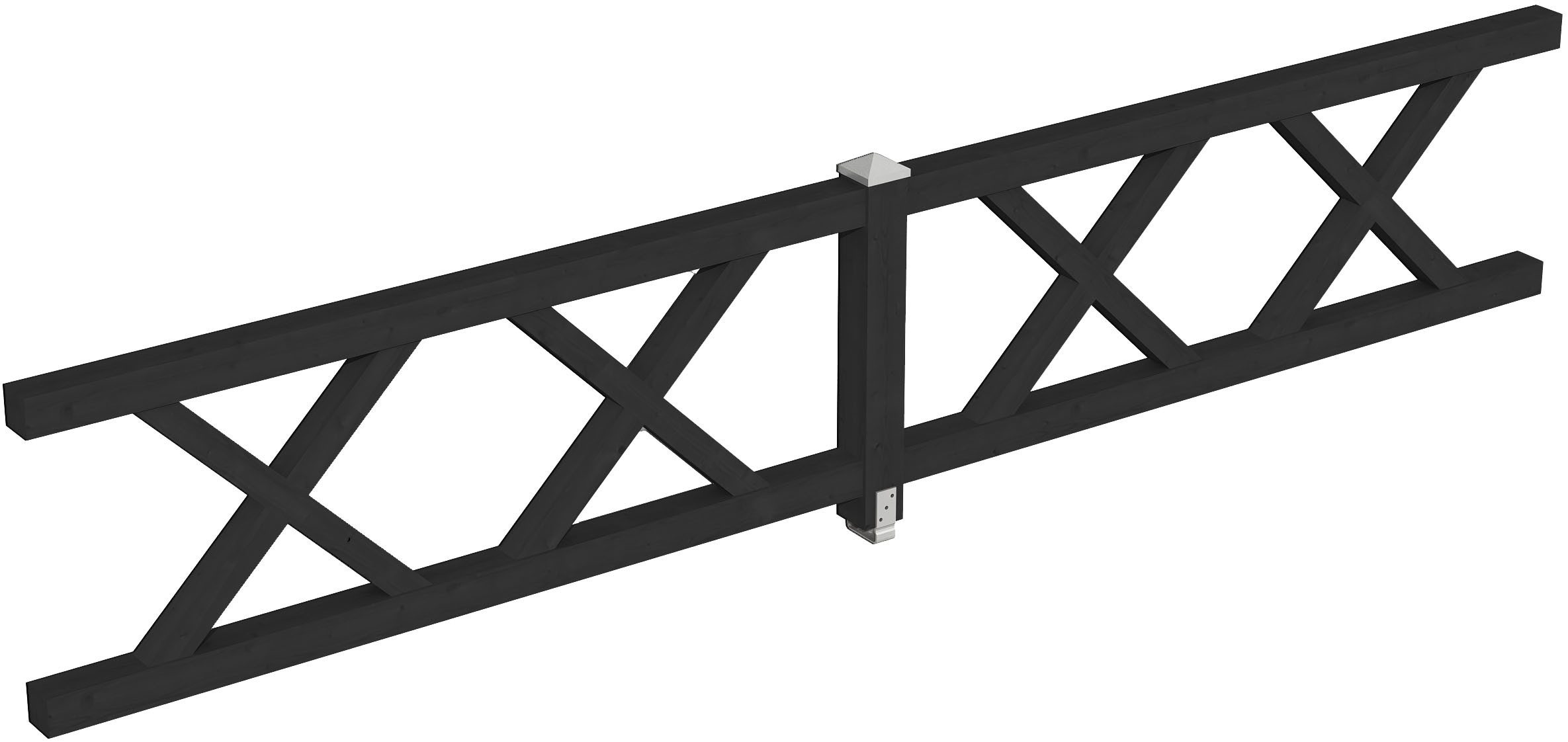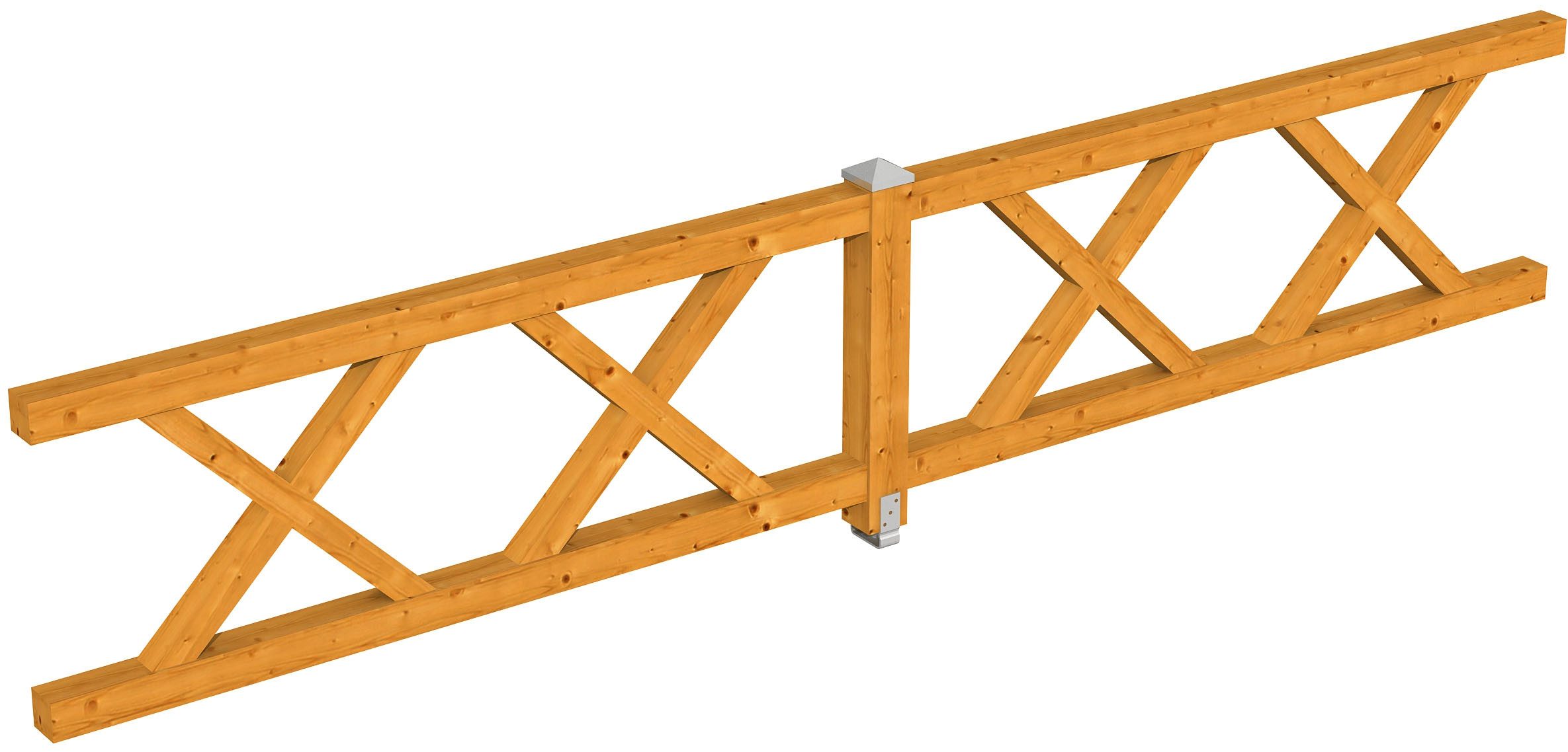 Die dekorative SKAN HOLZ Brüstung mit massiven Andreaskreuzen aus Konstruktionsvollholz eignet sich für SKAN HOLZ Pavillons aus Leimholz mit einem Pfostenabstand von 465 cm.