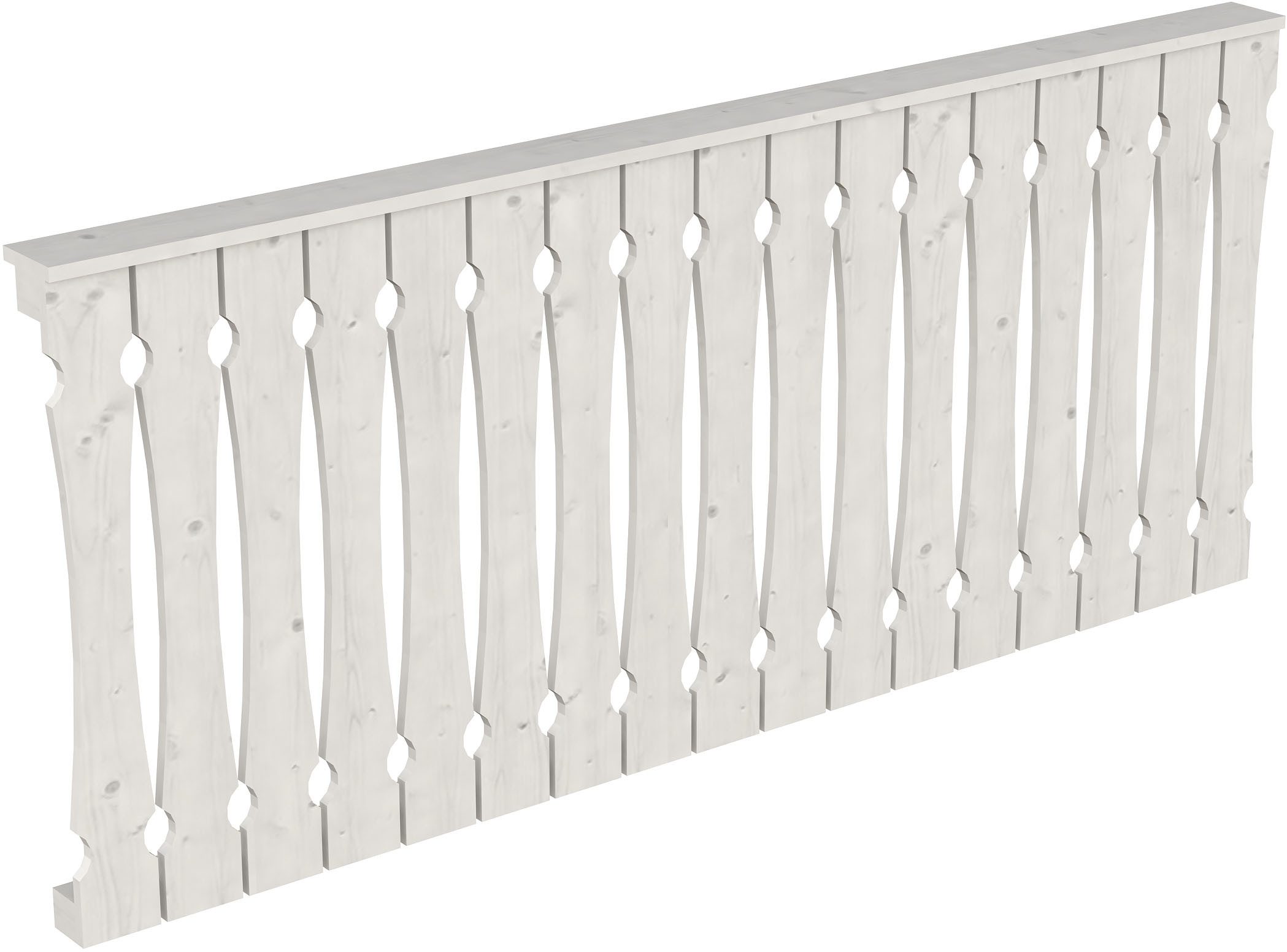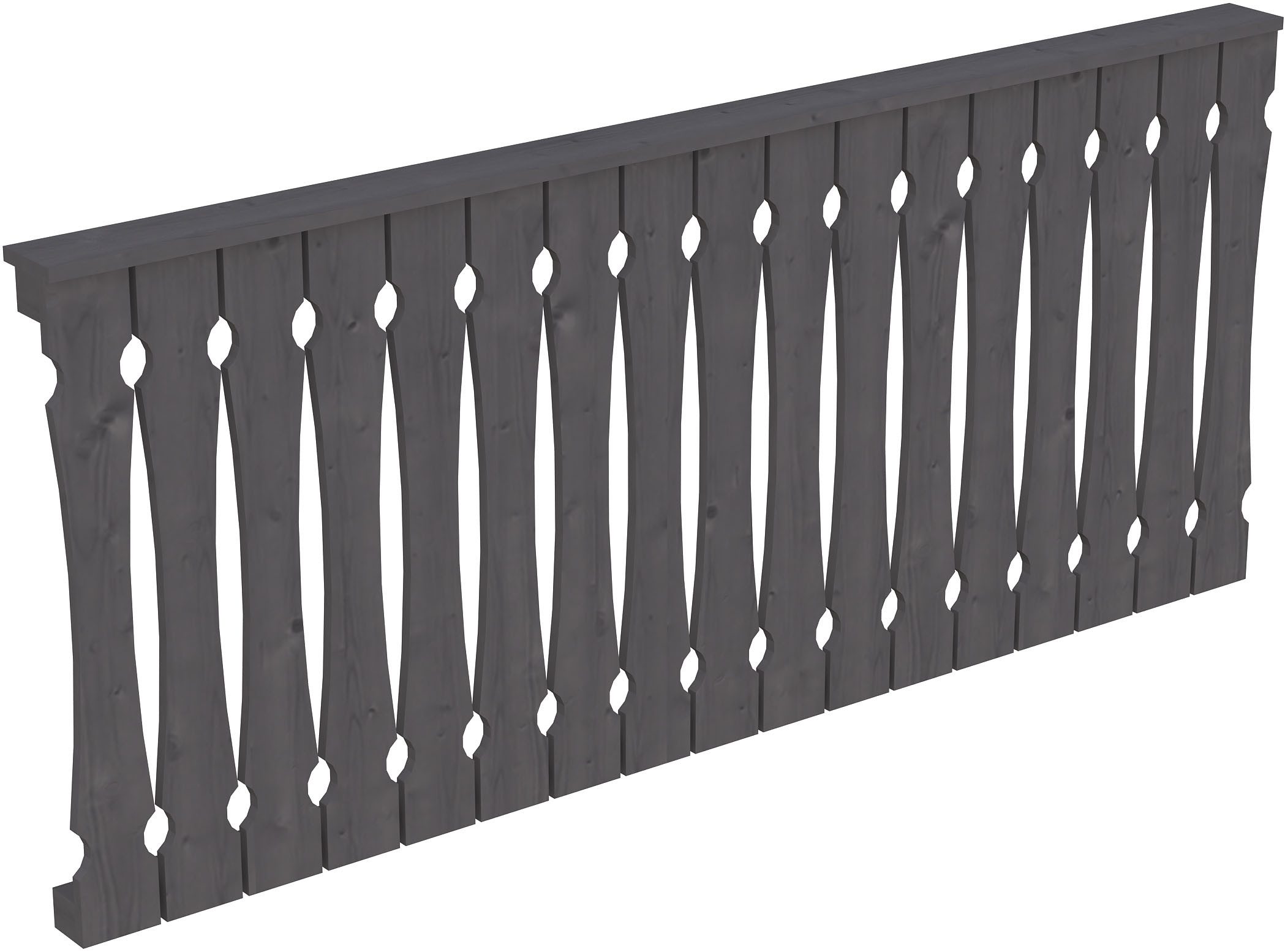 Die dekorative SKAN HOLZ Brüstung aus Balkonschalung eignet sich für SKAN HOLZ Terrassenüberdachungen aus Leimholz mit einem Pfostenabstand von 220 cm.