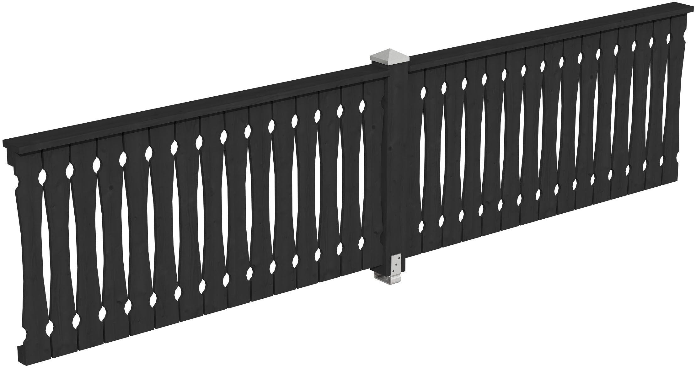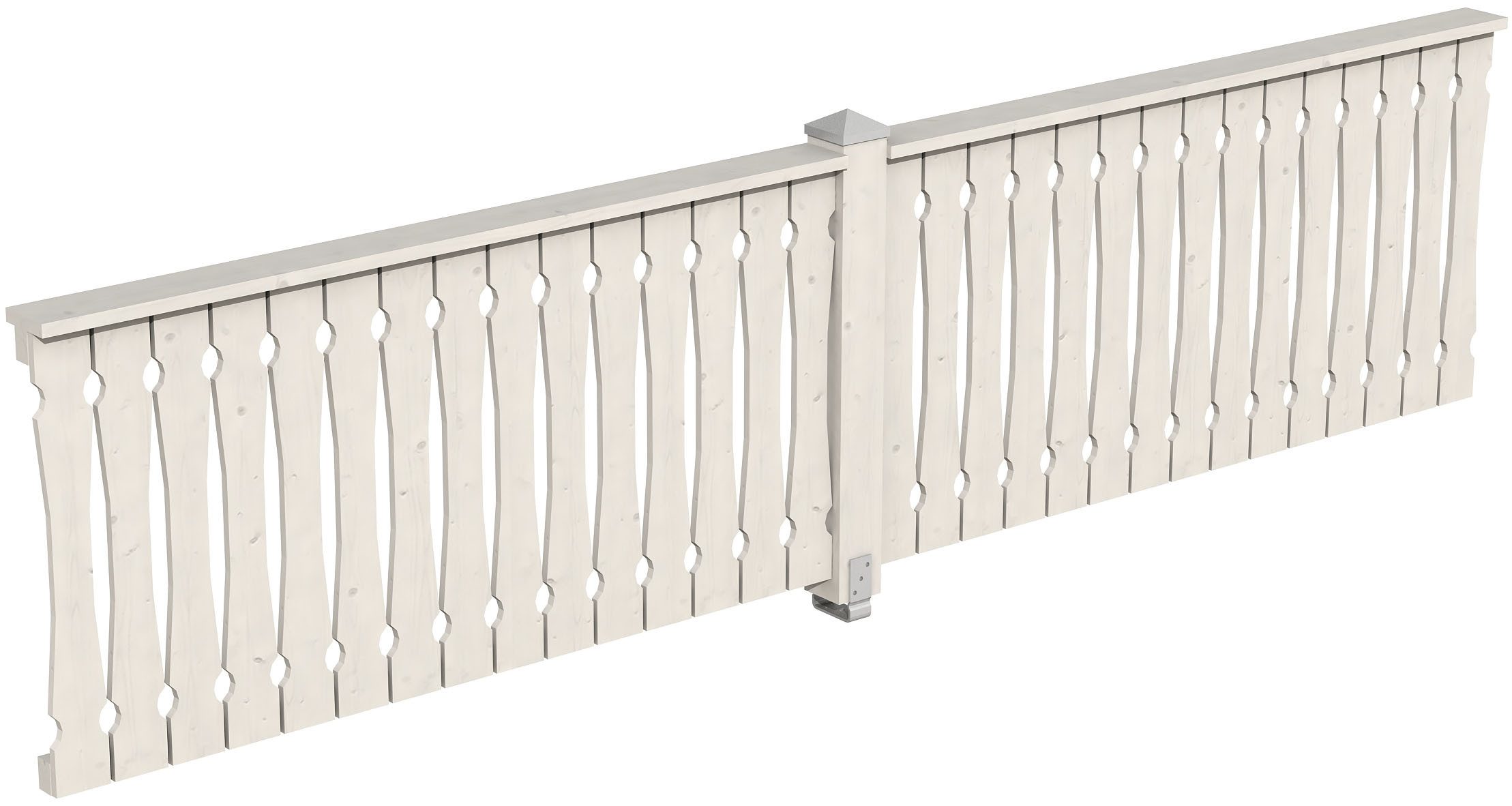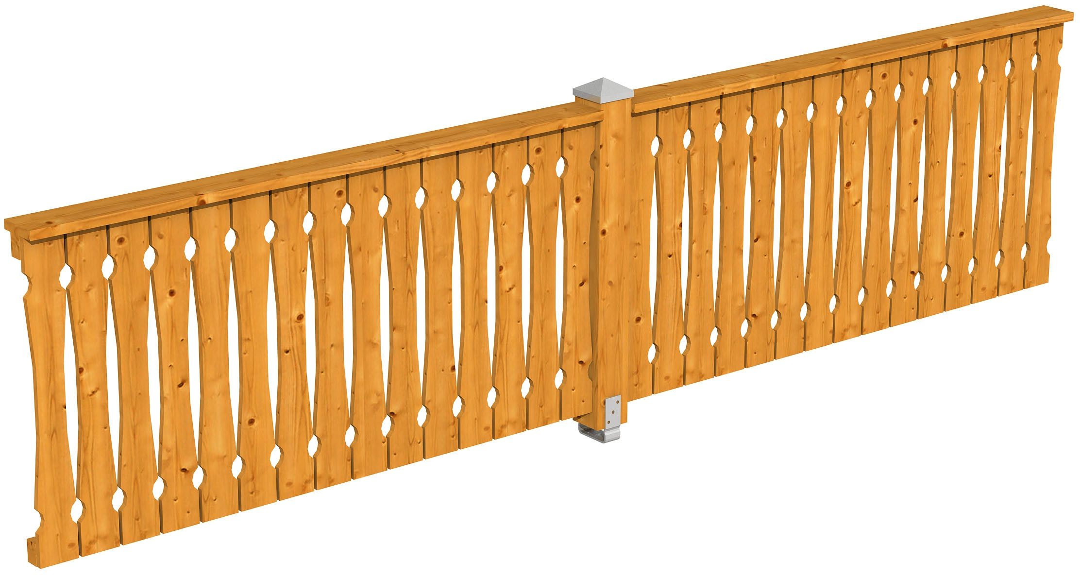 Die dekorative SKAN HOLZ Brüstung aus Balkonschalung eignet sich für SKAN HOLZ Terrassenüberdachungen und Pavillons aus Leimholz mit einem Pfostenabstand von 400 cm.