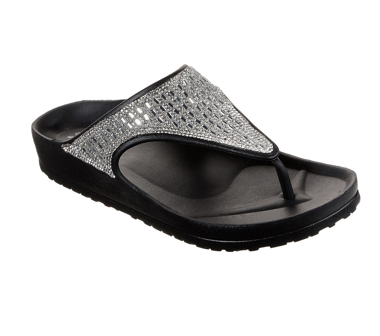 Glitzerlook zum Auffallen gibt´s in der SKECHERS Cali Breeze 2.0 Sandale. Leger-bequeme Zehentrennersandale mit einem Obermaterial aus EVA mit glitzernden Strasssteinakzenten und Luxe Foam Fußbett.