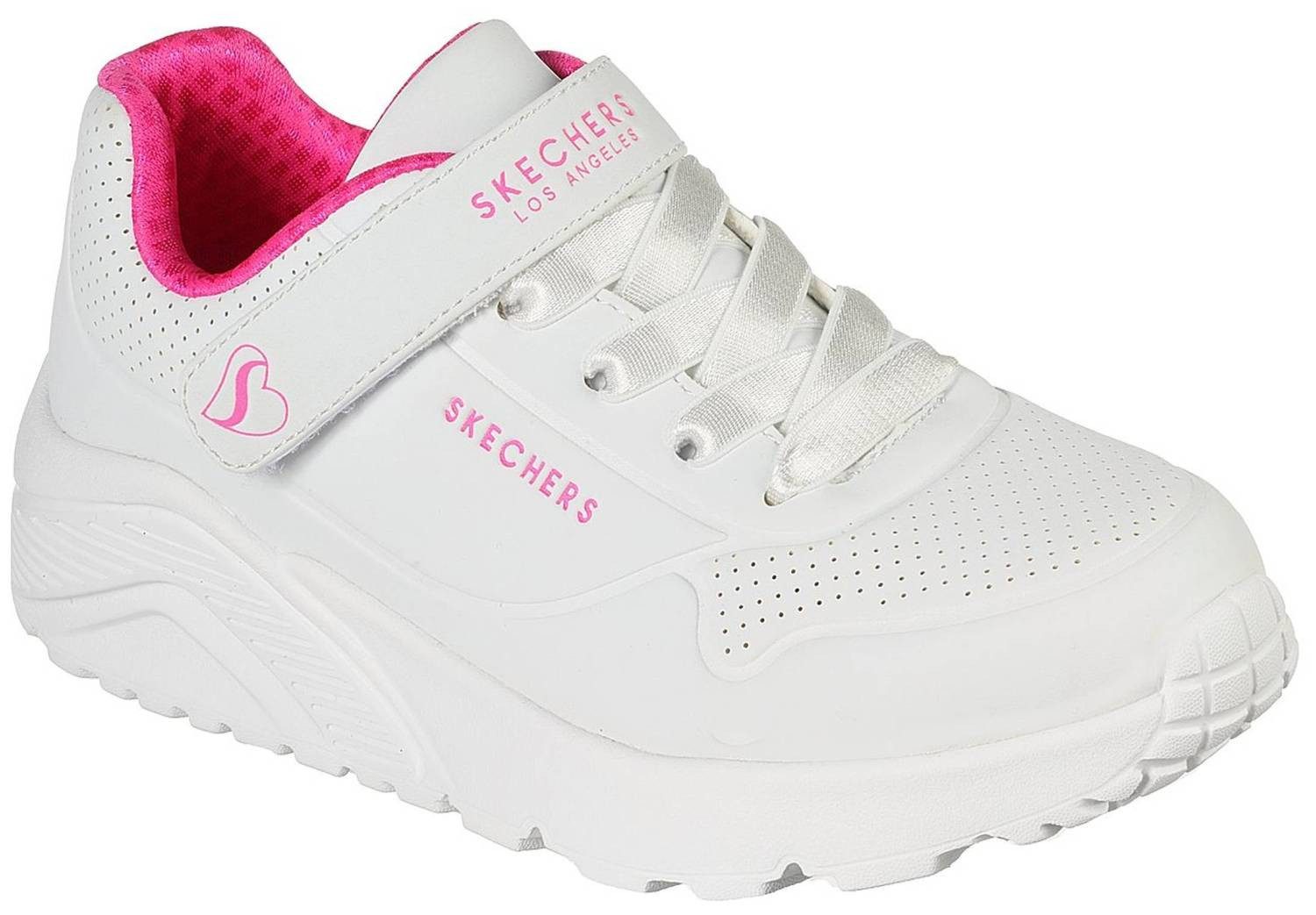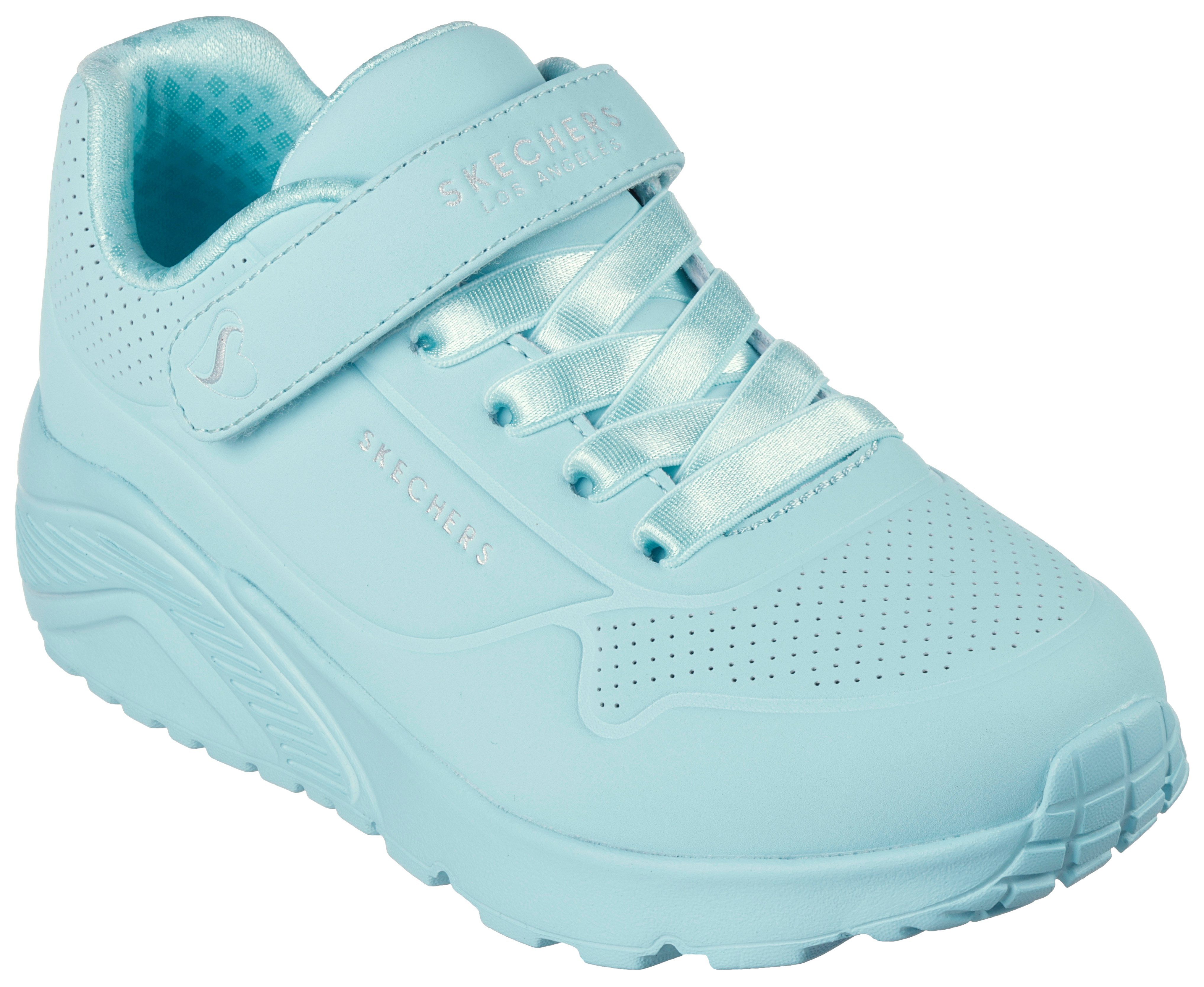 Klassischer sportlicher Stil trifft auf Komfort im Skechers Street Uno Lite. Dieser maschienenwaschbare modische Sneaker verfügt über ein glattes Synthetik-Obermaterial mit Stretch-Schnürsenkeln, einen verstellbaren Ristriemen, eine Air-Cooled Memory Foam-Einlegesohle und eine Plateau-Keilzwischensohle.